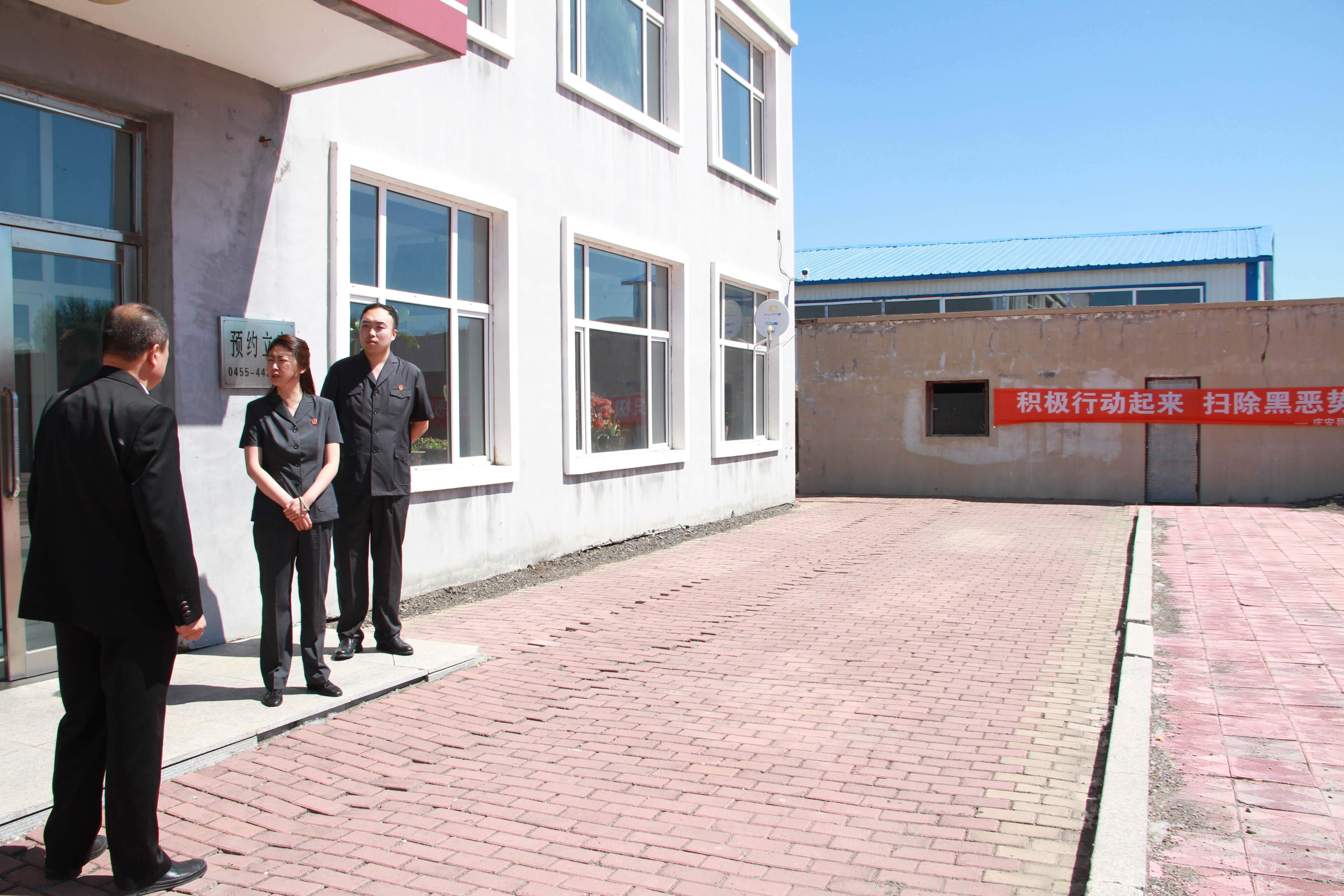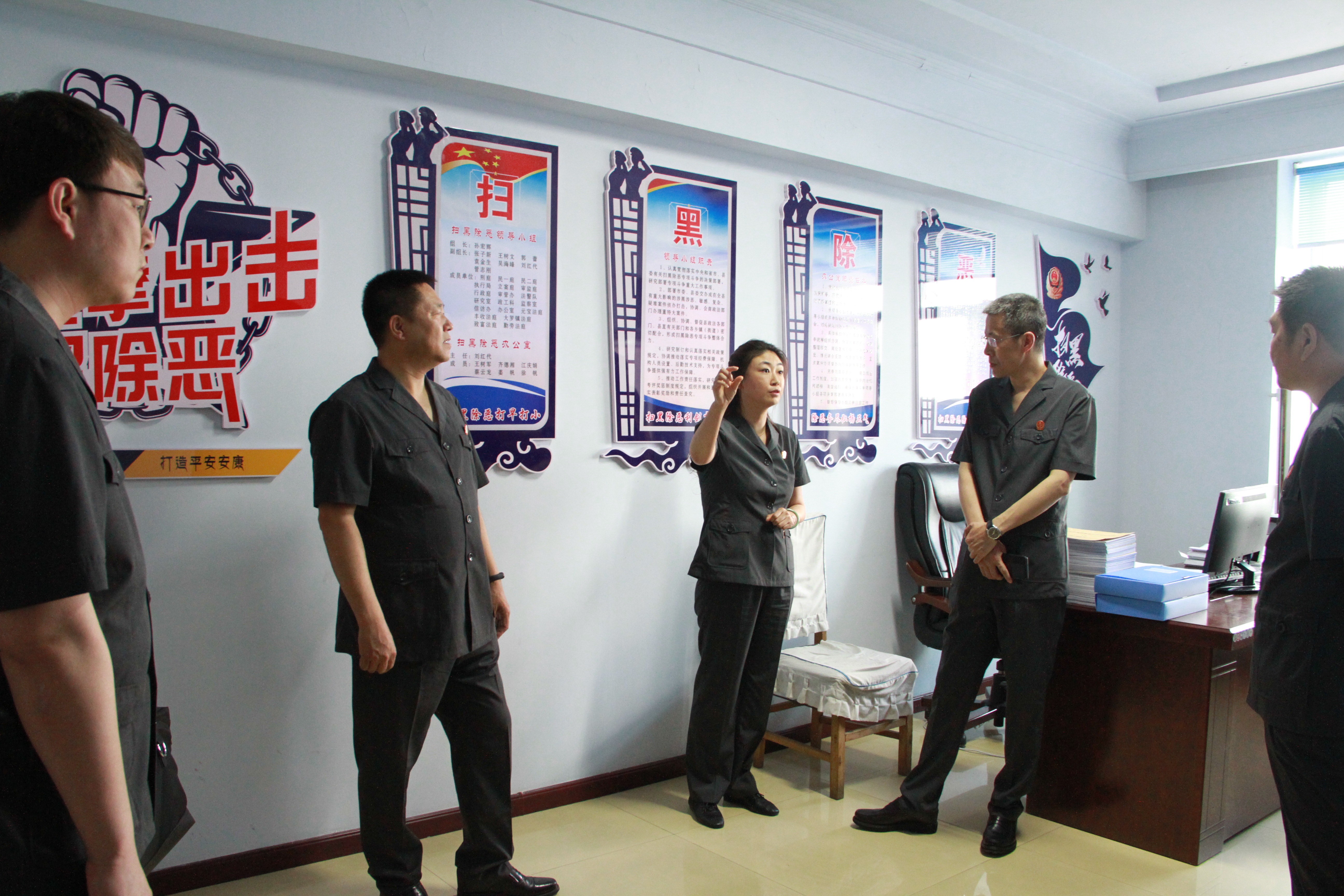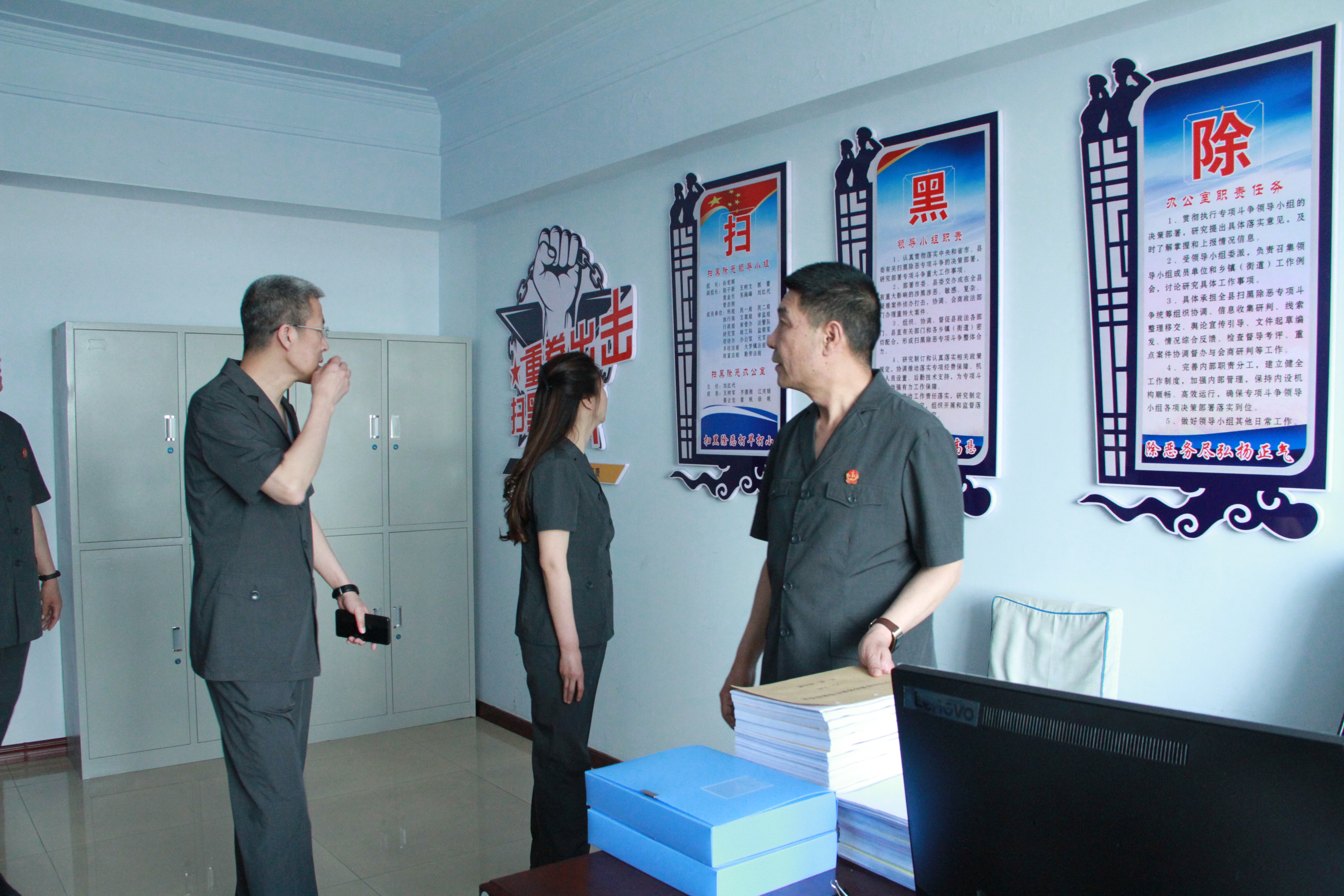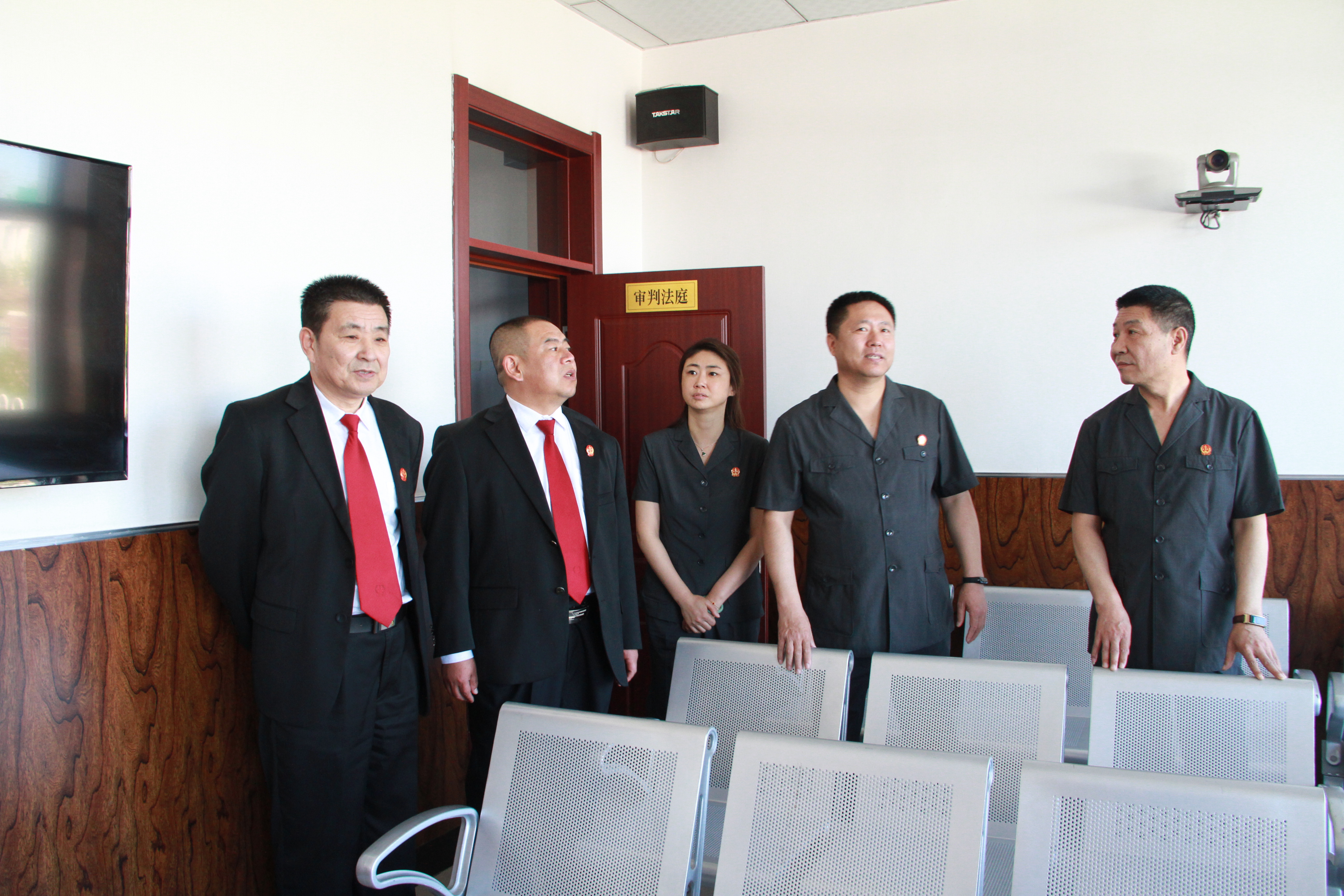 调研组实地走访了人民法庭、诉讼服务中心、扫黑除恶办公室等场所,询问了人民法庭相关工作情况,检查了“四零服务”“打官司不求人”工作方法措施和扫黑除恶二十二项背景清单、六项重点内容,与“说和人老李”亲切交谈,了解诉调对接工作。