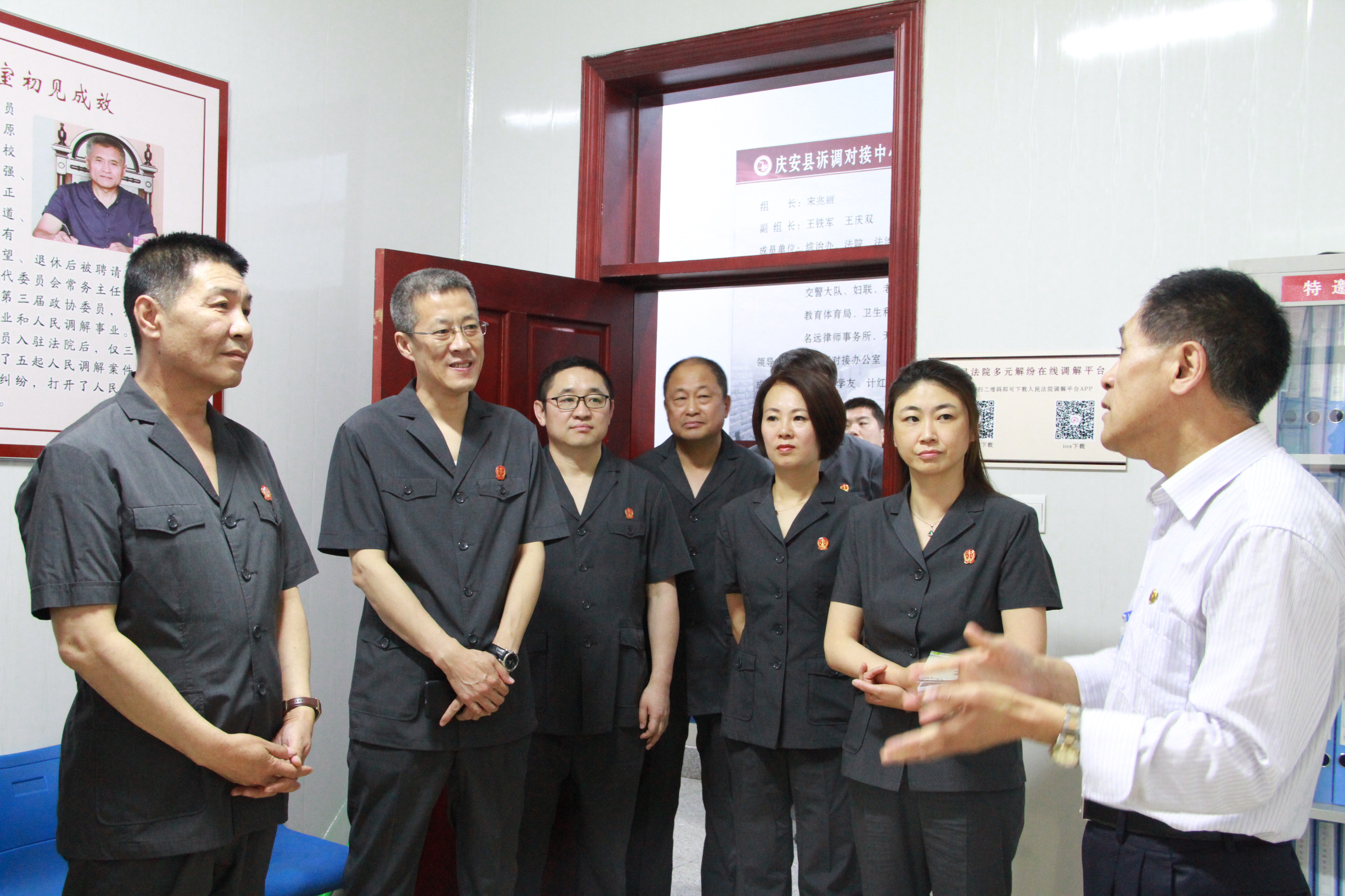 6月4日,绥化中院重点工作调研组在中院党组成员、政治部主任吴刚、政治部基层科科长赵淑丽带领下,对庆安法院党建、队伍建设、文化建设、评先选优、内网微信平台建设和“打官司不求人”“解放思想推动高质量发展大讨论”、深化作风整顿优化营商环境、扫黑除恶专项斗争等多项重点工作进行了全面调研。