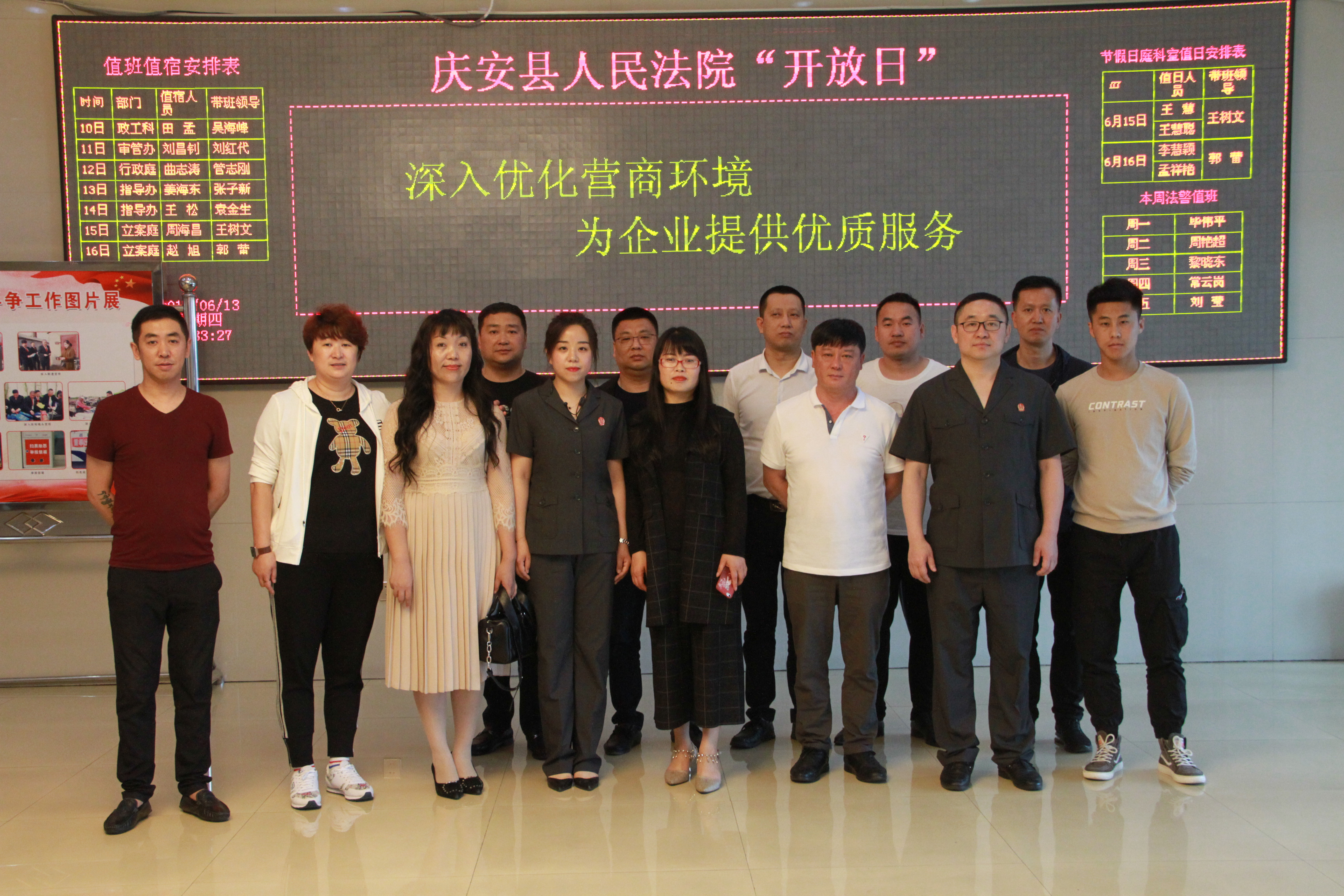 为深入贯彻落实省市县委深化作风整顿优化营商环境工作部署,努力实现“打官司不求人”工作目标,不断提升民营企业的发展能力和水平,6月13日庆安法院举办“开放日”活动,邀请县工商联和企业家代表走进法院,了解法院职能以及进一步服务非公经济发展的措施,零距离感受法治正能量。