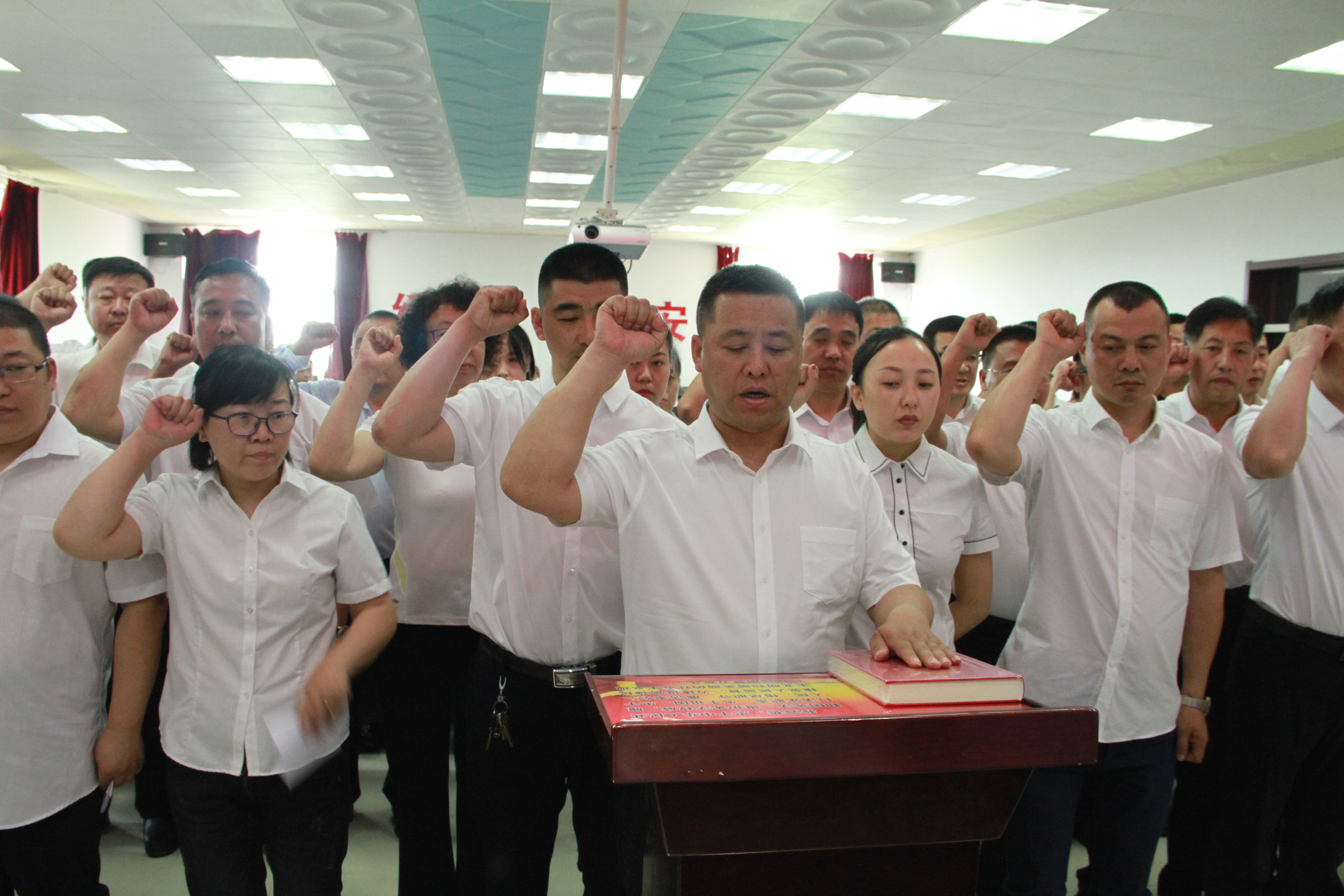 铮铮誓言响彻绿乡大地,庄严承诺映照赤胆忠心。宣誓仪式既有利于培养新任职人民陪审员对宪法和法律的敬畏,又能增强他们内心的认同和良心上的约束,增强依法履职、公正司法的自觉性,增进维护社会公平正义的责任感。