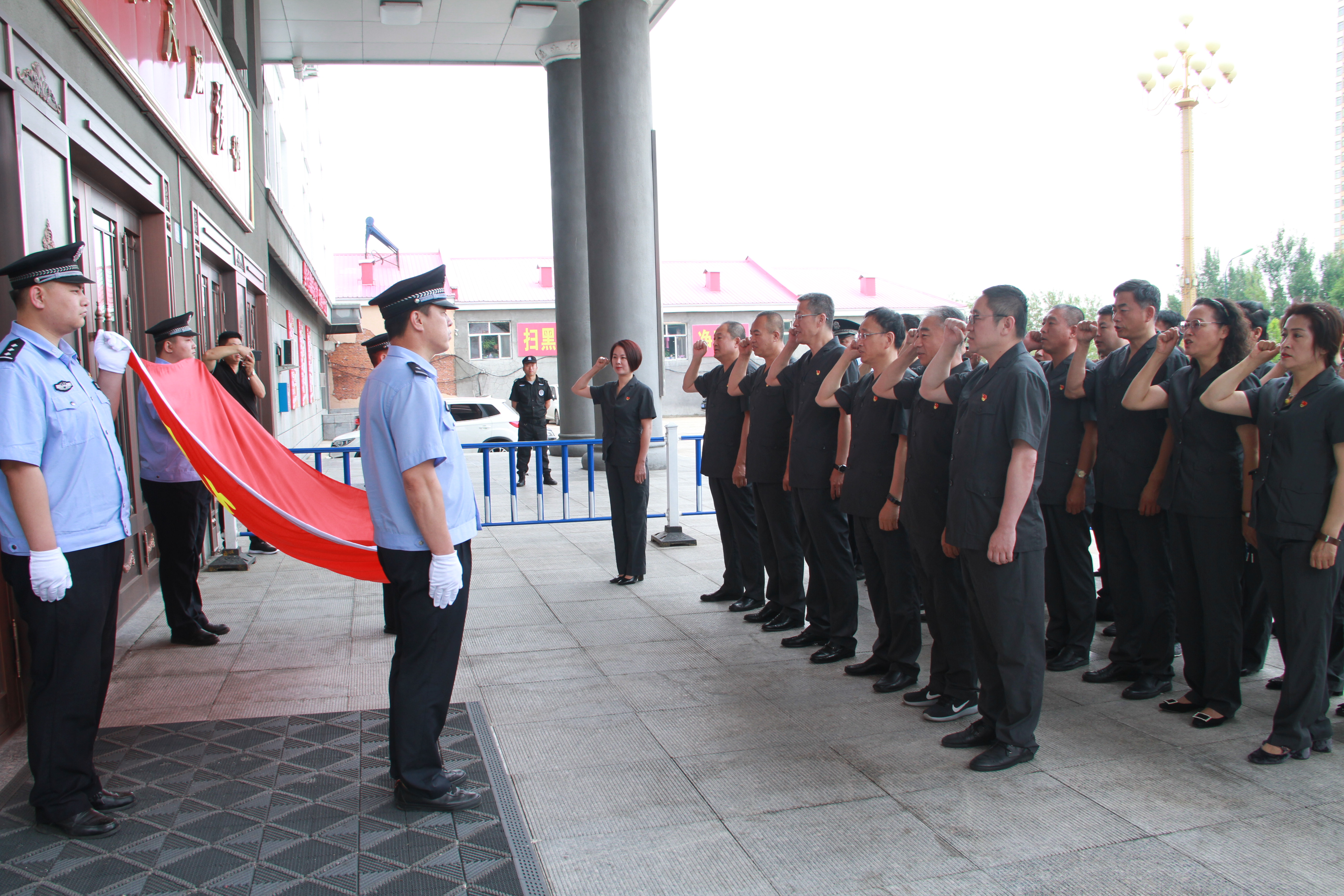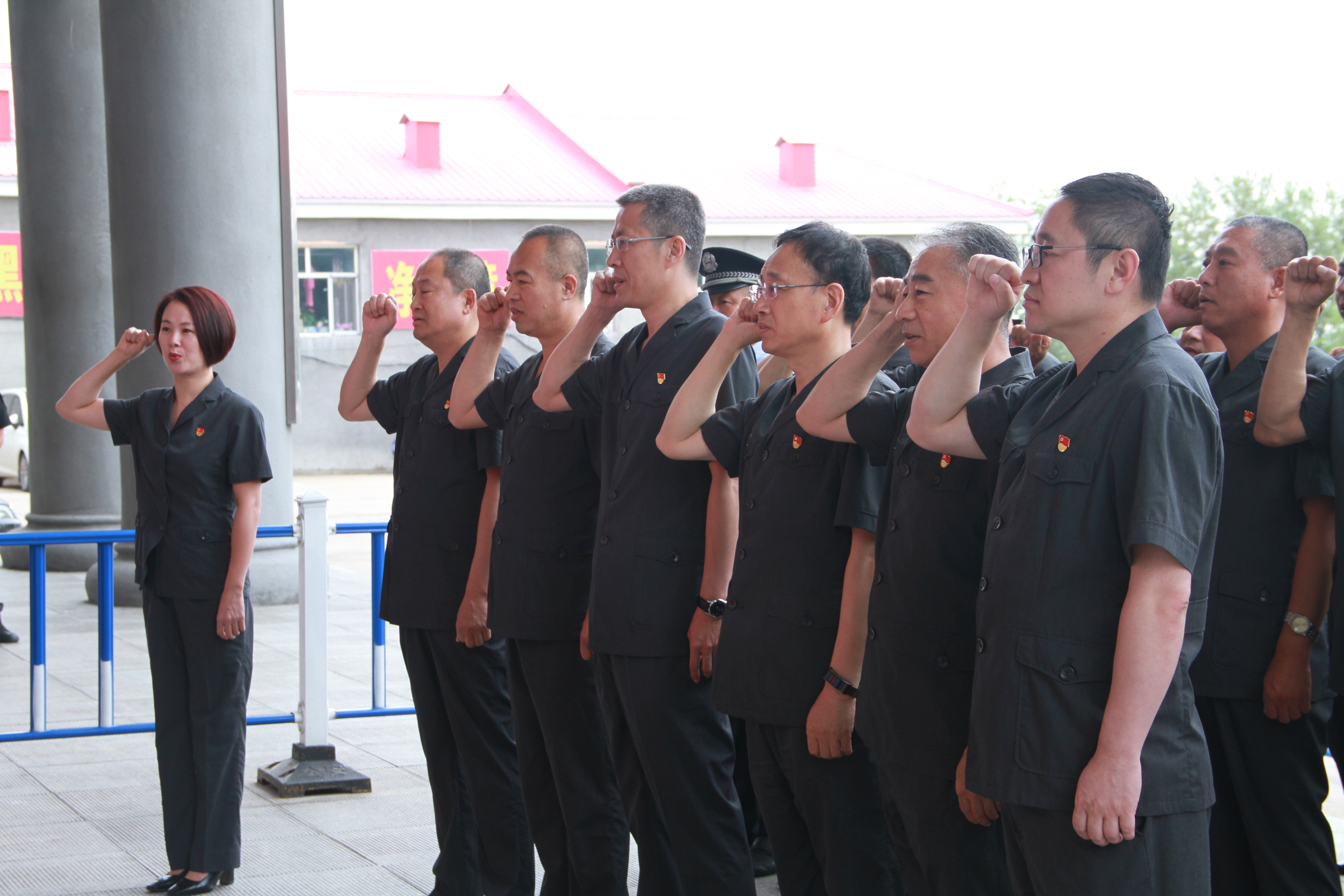 在党组书记、院长孙宏辉的带领下,由党组成员、副院长郭蕾领誓,全体党员干警举起右手,面向党旗庄严宣誓。一句句铿锵有力的神圣誓言涤荡灵魂,干警们的心灵再次受到震撼和洗礼。