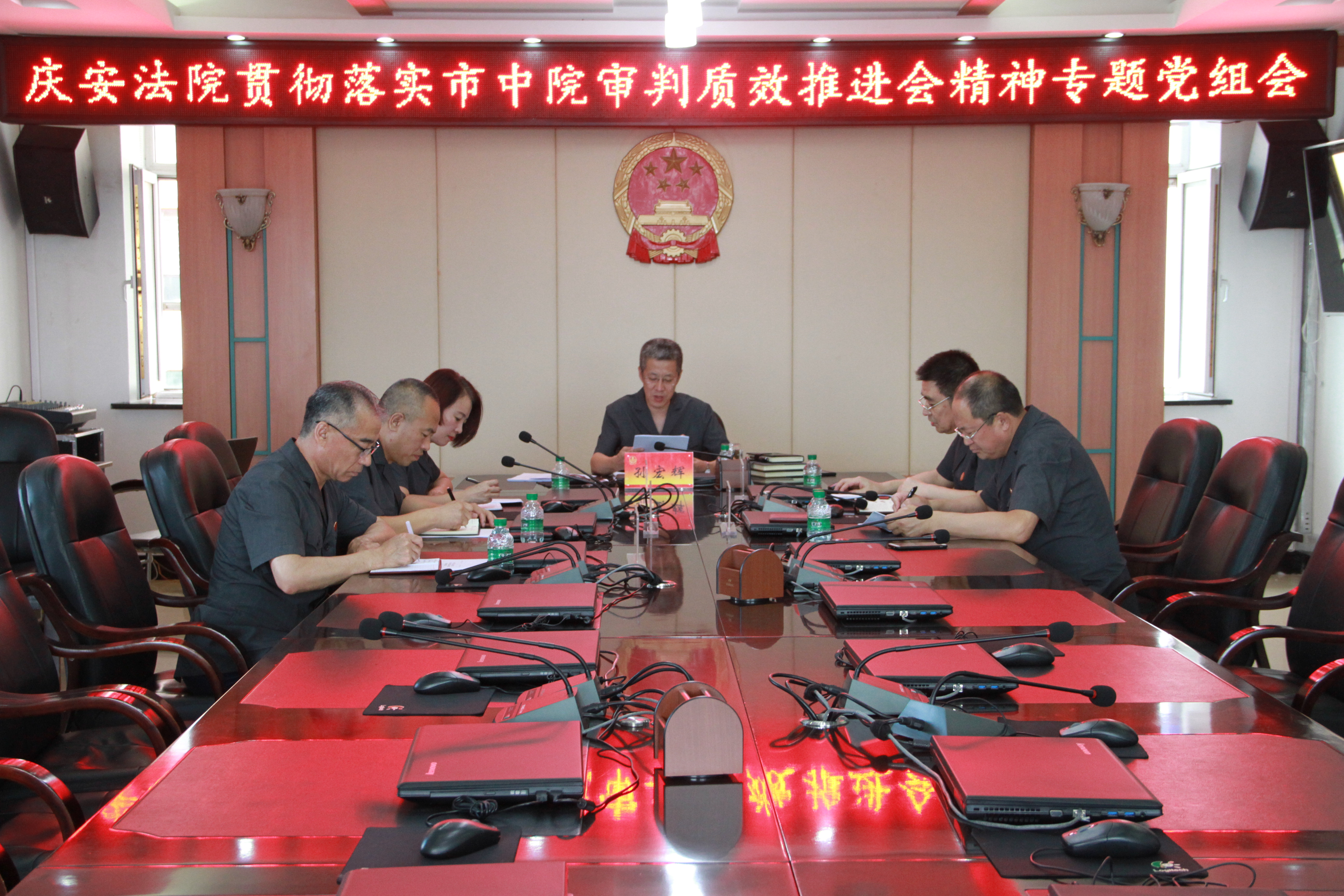 7月25日下午,庆安县人民法院党组书记、院长孙宏辉主持召开专题党组会议,传达贯彻马国院长在全市法院重点工作推进会上的讲话精神,通报全市基层法院审判执行质效情况。孙宏辉就如何贯彻落实好马国院长讲话精神,提出了六点要求。