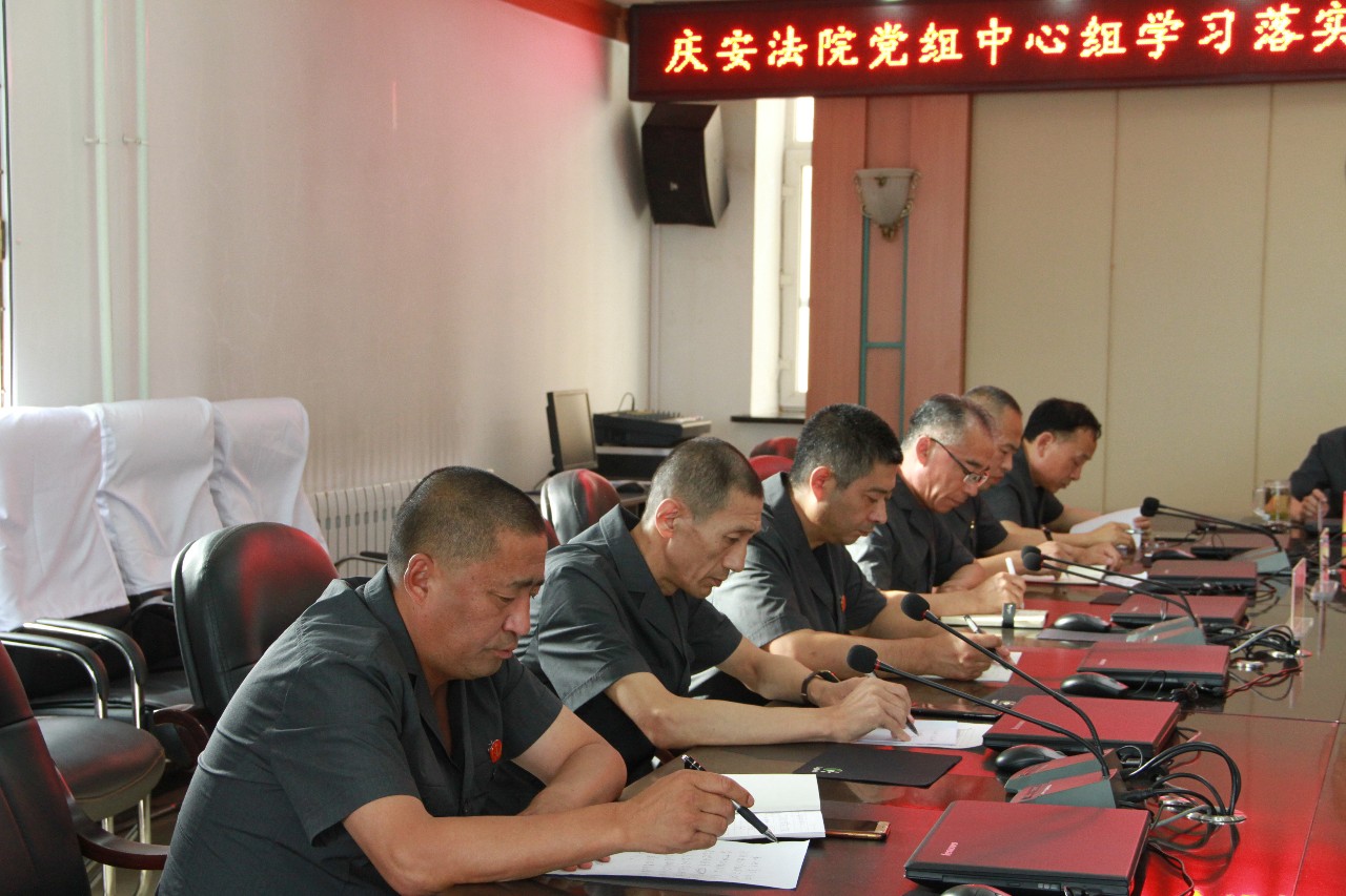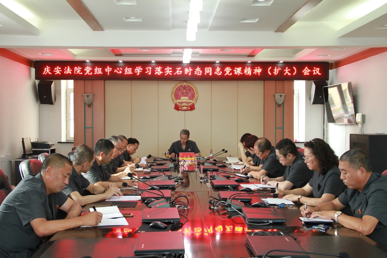 8月9日下午,庆安法院召开党组中心组学习(扩大)会议,对省高院石时态院长《牢记初心使命