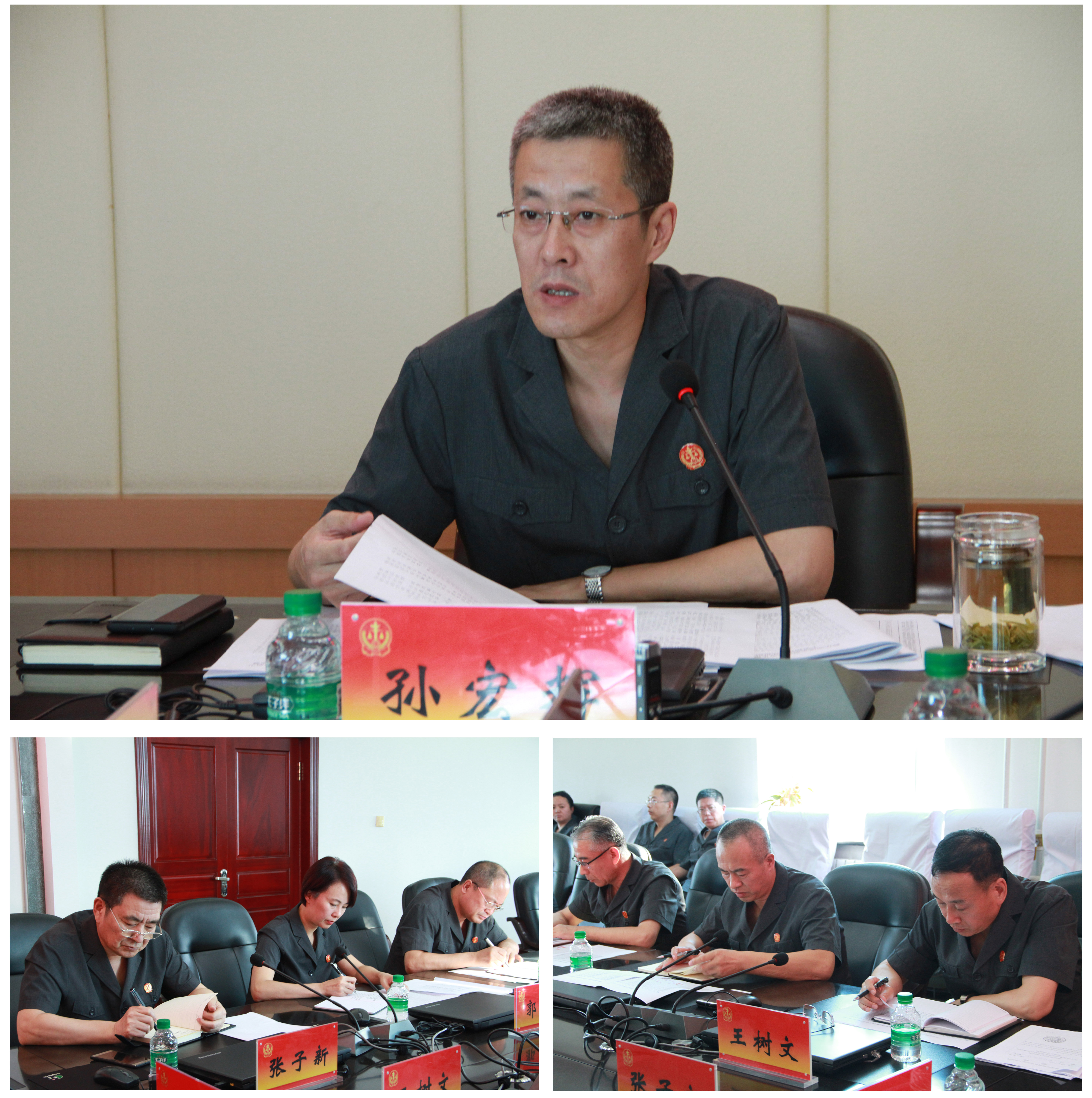 会上,传达了全市政法领域全面深化改革推进会精神及贯彻意见、扫黑除恶工作贯彻落实意见、省法院关于做好迎接新中国成立70周年安保维稳工作有关精神及贯彻意见、通报省法院直属机关党委来绥化中院调研指导党建工作情况及贯彻落实意见。传达了黑龙江省高级人民法院关于2019年上半年全省法官主要工作情况通报。