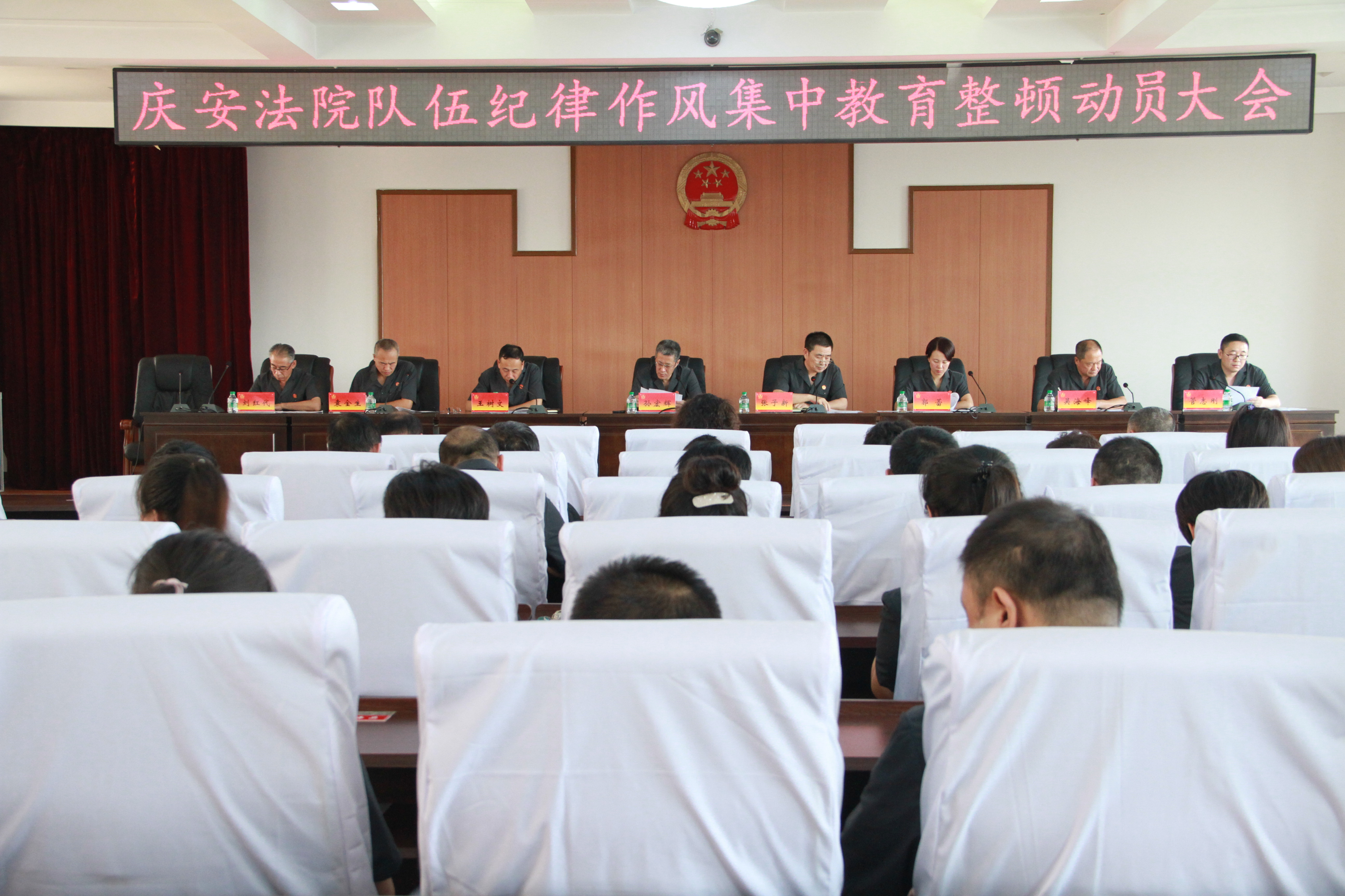 为深入学习贯彻党的十九大精神和习近平总书记关于政法队伍建设的重要指示精神,从严整肃队伍,改进纪律作风,提升能力素质,强化履职尽责,庆安法院决定结合“不忘初心、牢记使命”主题教育开展纪律作风集中教育整顿活动,于9月5日下午,组织全体干警召开了动员大会,动员启动。