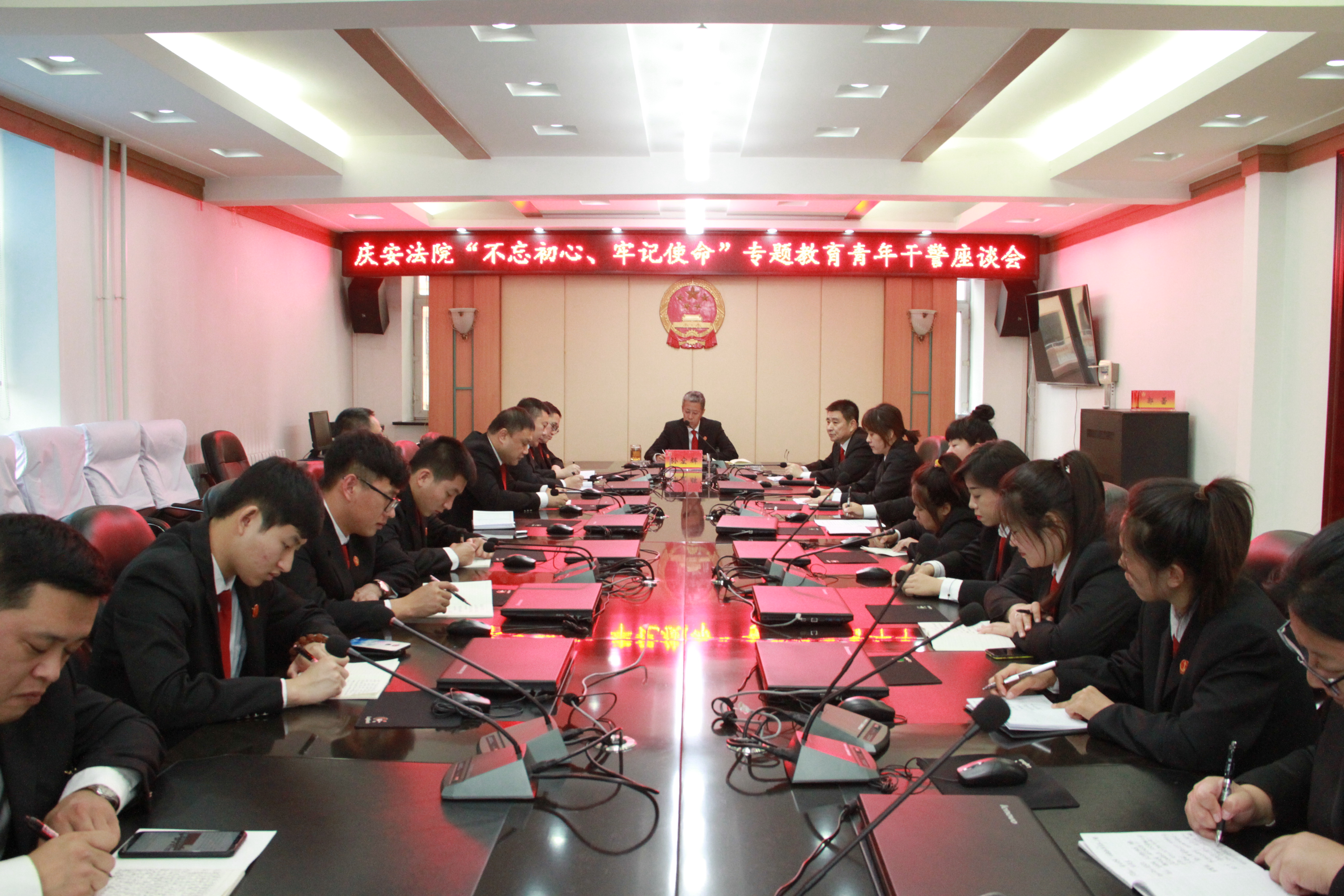 为进一步激发青年干警工作积极性,促进法院队伍建设又好又快发展,9月20日下午,庆安法院利用周五学习日时间组织召开了“不忘初心、牢记使命”主题教育青年干警座谈会。党组书记、院长孙宏辉出席会议并讲话,党组成员、副院长张子新主持会议,全体青年干警参加了座谈会。