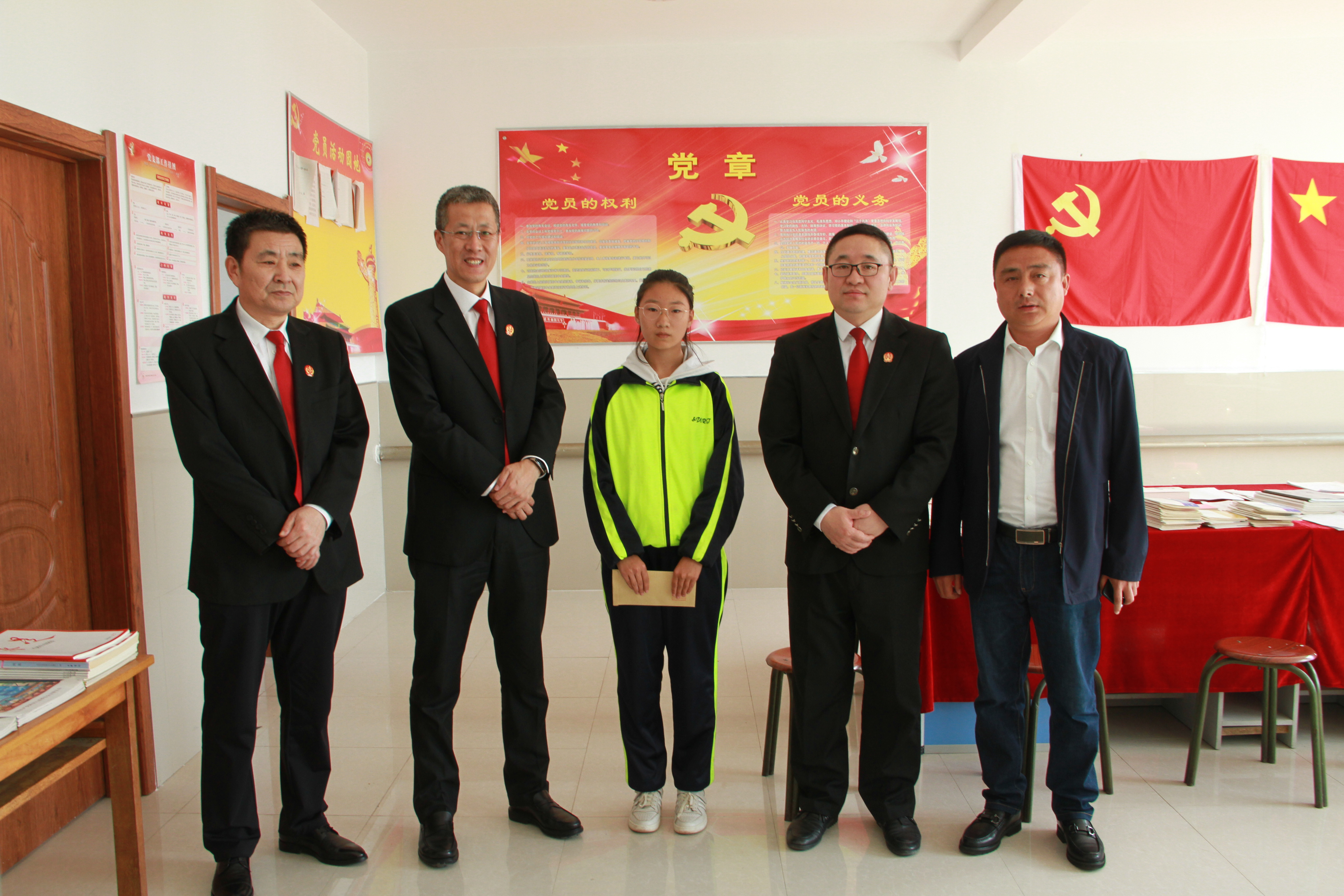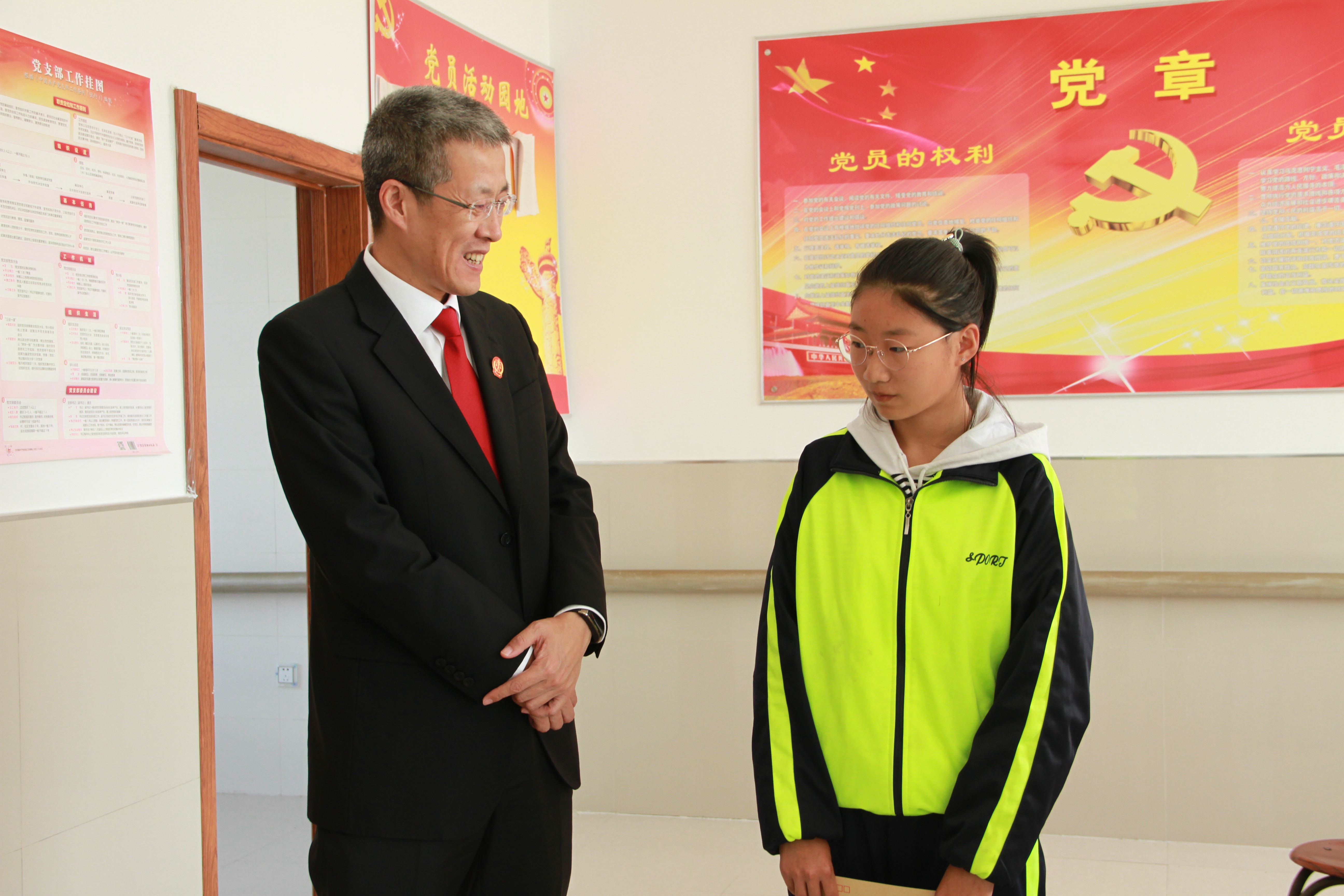 9月30日,秋光绚丽,金风送爽,孙宏辉一行来到新胜中学认真了解了这名贫困学生的生活学习情况,并叮嘱她一定要好好学习,不要辜负法院干警的关心和深切期望,未来的幸福生活要靠自已去努力创造,希望她能用优异的成绩回报社会,长大后成为对社会有用的人。该生对法院的关怀和帮助表示衷心的感谢,并表示一定要把法院叔叔阿姨的关怀转化为奋发学习的动力,立志成才,以优异的成绩回报社会,报效国家。