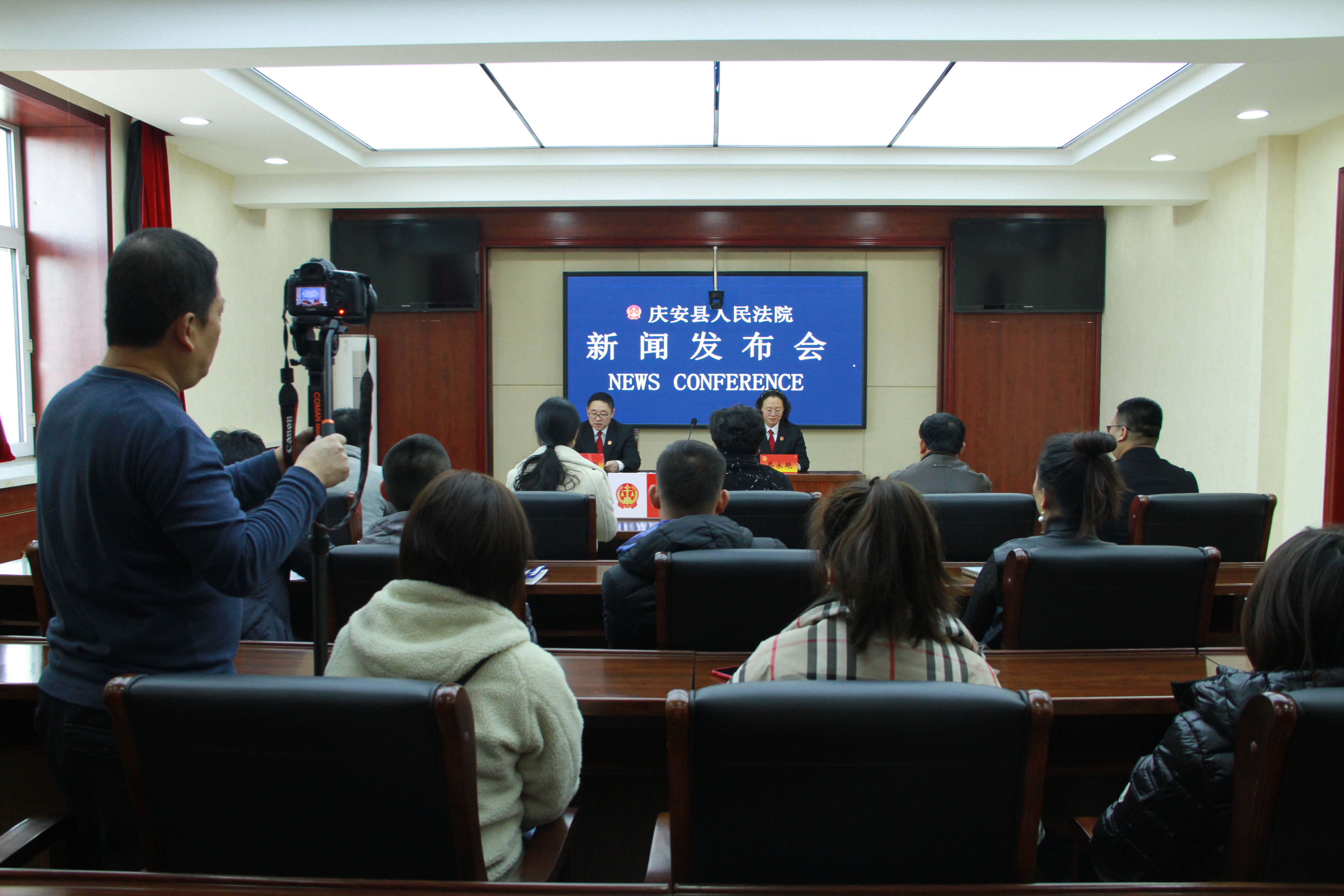 11月14日,庆安法院邀请县委政法委领导干部、媒体记者、企业家代表召开了新闻发布会,对一起涉企案件的审理、执行情况进行了发布。党组成员、政治部负责人、新闻发言人管志刚主持会议,民事审判庭庭长乔永艳做主旨发布并回答了记者问。