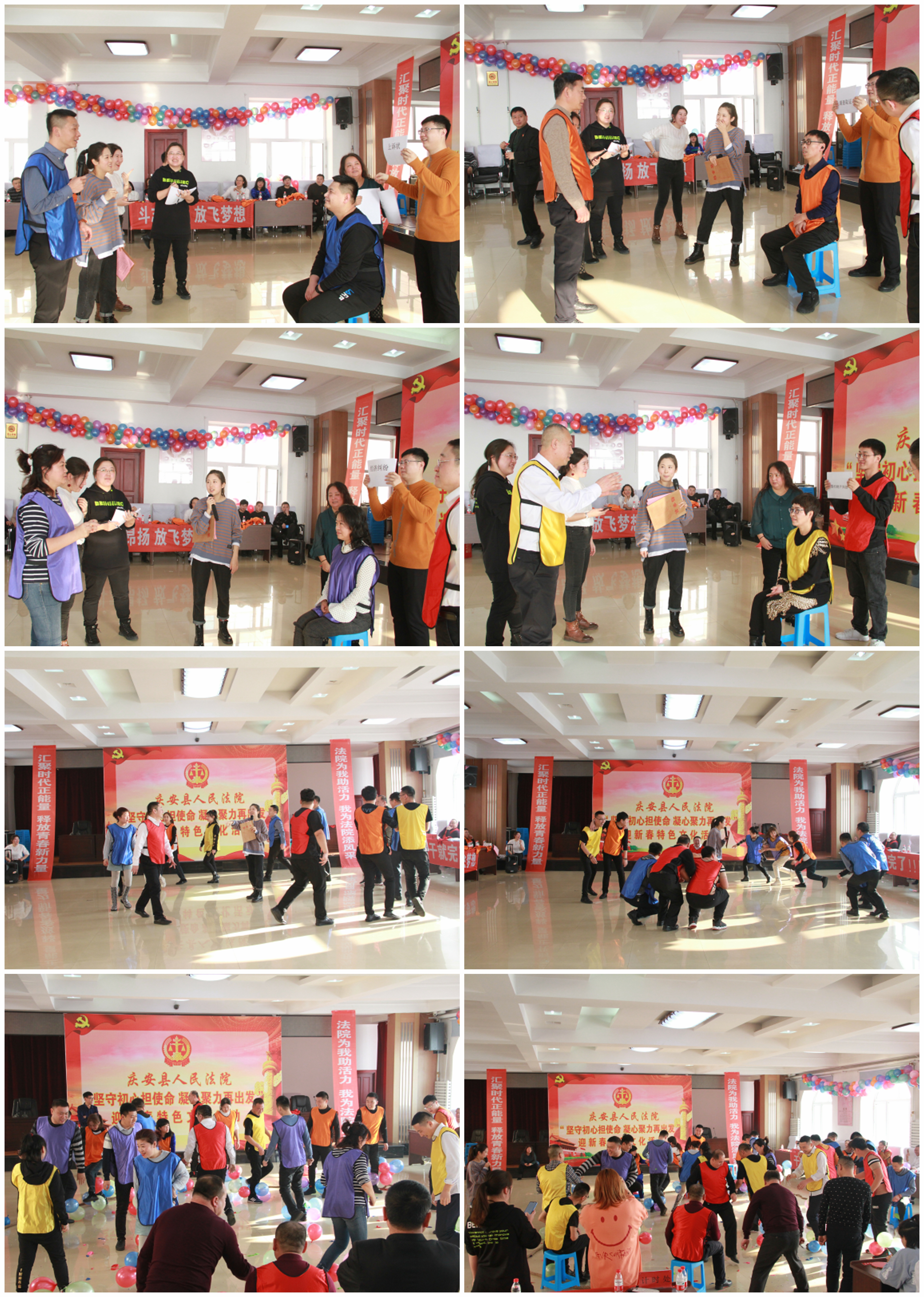 为推进法院文化建设,丰富干警文化生活,缓解干警工作压力,感受快乐,喜迎春节,1月22日,庆安法院举办了一场“迎新春特色文化活动”,努力营造凝心聚力、争先创优的文化氛围,全力展示“不忘初心、牢记使命”主题教育成果,进一步激发全体干警奋发有为、努力拼搏的工作热情,为新年度的审判执行工作开好局、起好步,提供强大的精神支撑。