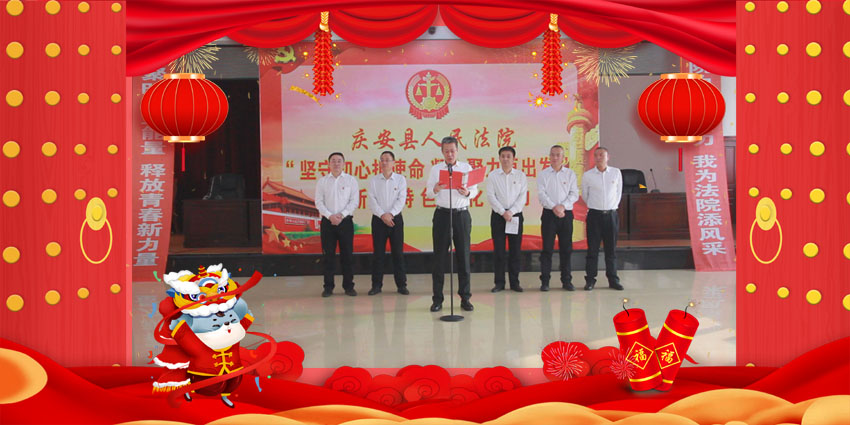 在活动前,党组书记、院长孙宏辉致辞。他指出,刚刚过去的2019年,全体干警上下一心,聚力聚焦办案质效,全力服务社会发展大局,充分发挥审判职能作用,圆满完成了年度工作任务,主要工作指标综合排名居全省142个基层法院第6位,取得喜人成果;2020年的集结号已然吹响,新年要有新气象、新面貌、新作为,坚持“笃行、做实、规范、创新”的理念,不忘初心、牢记使命,只争朝夕、不负韶华,不断提升审判体系和审判能力现代化水平,推动全院工作再上新台阶,为全力推进县委“13431”发展实践向更高质量迈进,奋力开创庆安全面振兴全方位振兴新局面做出新的更大贡献,续写新的辉煌!