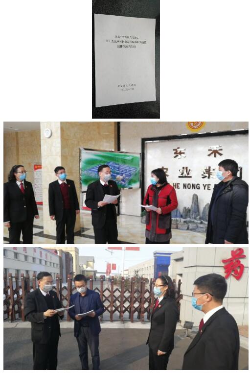 庆安法院党组高度重视,迅速组织民事审判人员深入学习研讨50项相关法律依据,并号召全体干警利用微信、微博等载体向社会广泛宣传发布,并积极开展送法入企活动。3月2日,党组成员、副院长王树文带领民事审判法官走访复工企业宣传发放《告知书》,现场释法答疑,为企业复工复产出计献策,帮助企业解决涉及法律方面的实际问题,得到企业的好评。