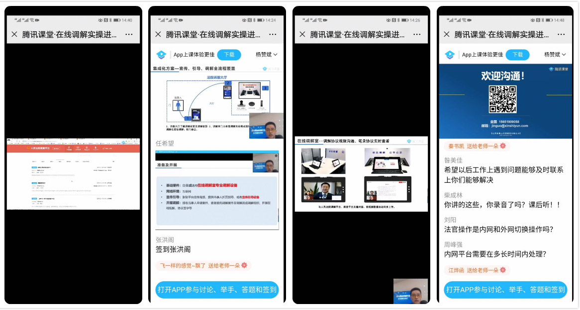 3月24日,庆安法院组织从事诉调对接工作的相关人员通过手机收听收看了腾讯课堂关于人民法院调解平台操作流程培训的直播讲座。10名法官、11名人民调解员、2名律师参加了培训。