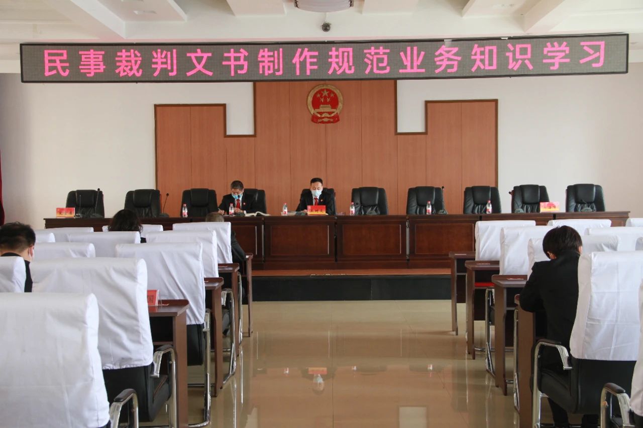4月3日,庆安法院组织民事审判法官、书记员等相关人员就民事裁判文书制作规范业务知识以讲座交流的方式进行了集中学习。党组成员、副院长王树文主持,审管办主任隋长玉主讲。