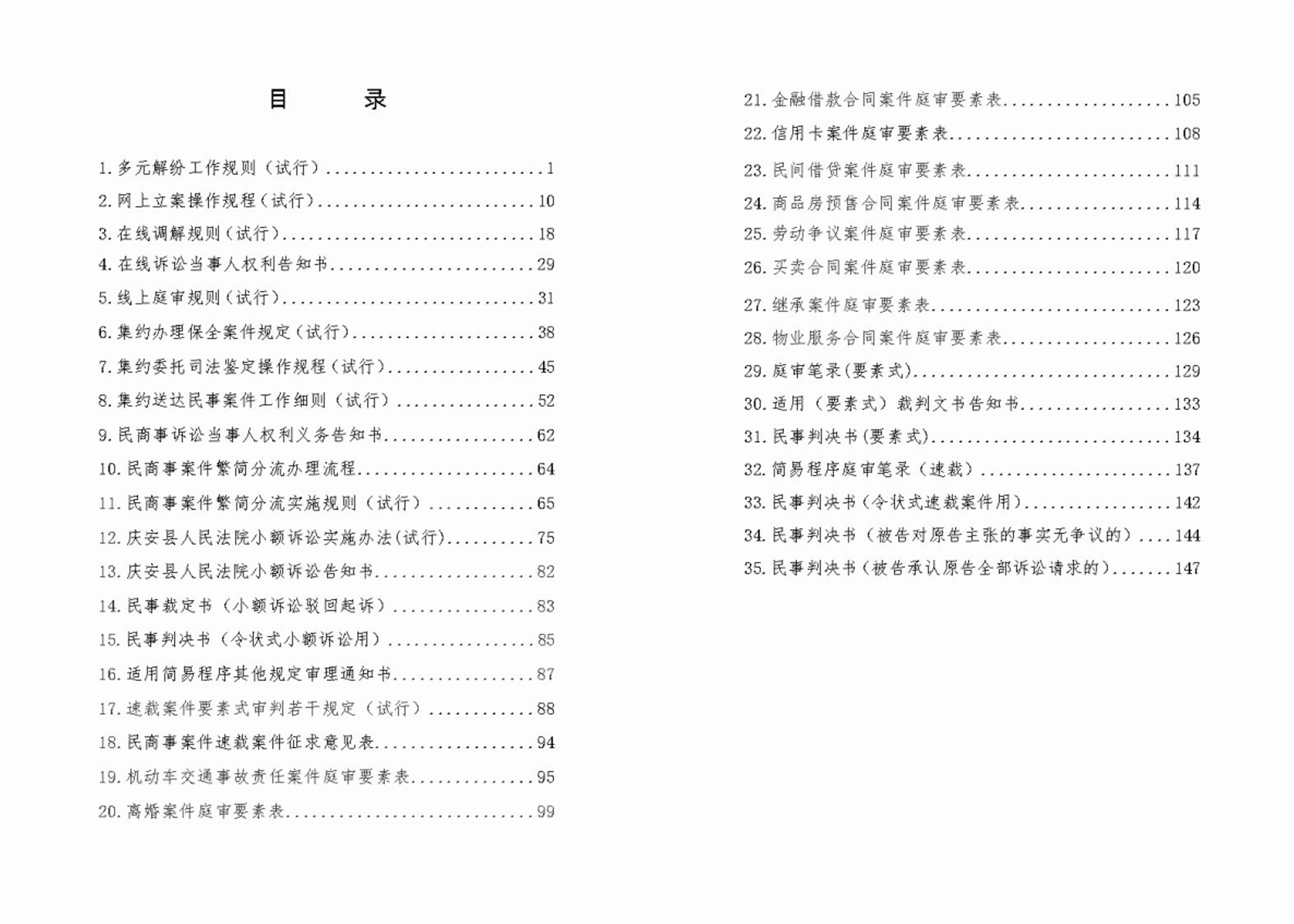 近年来,庆安法院不断创新思维,大胆实践,努力推进庆安法院诉讼服务工作,积极探索践行“四联九建”矛盾纠纷解决机制,推出了“老李调解工作室”人民调解品牌,诉讼服务工作亮点纷呈得到了上级法院和辖区群众的认可。在此基础上,根据上级法院制定下发的关于现代化诉讼服务体系的相关意见、规定,结合庆安法院审判实际,制定出台了适合自己操作的现代化诉讼服务体系配套规定合订本。合订本精准把握人民法院现代化诉讼服务体系总体要求,以司法为民为宗旨,从多元解纷、繁简分流、集约服务到庭审和裁判文书的规范等,共计汇集了35个流程、规定、规则,并下发到每个法官、法官助理、书记员手中。