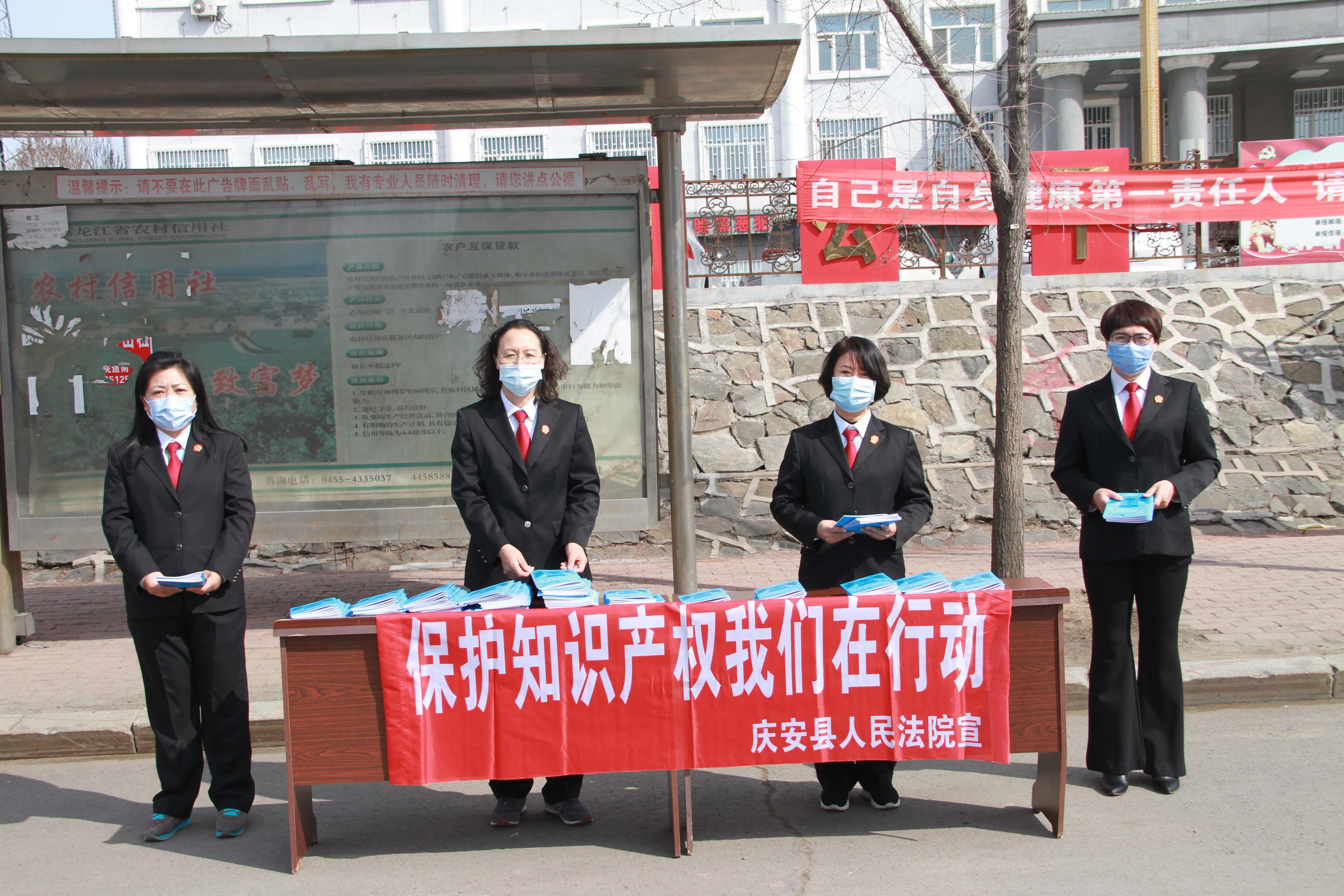 4月24日,在第20个世界知识产权日即将来临之际,庆安法院民事审判庭干警组织开展了知识产权普法宣传活动。