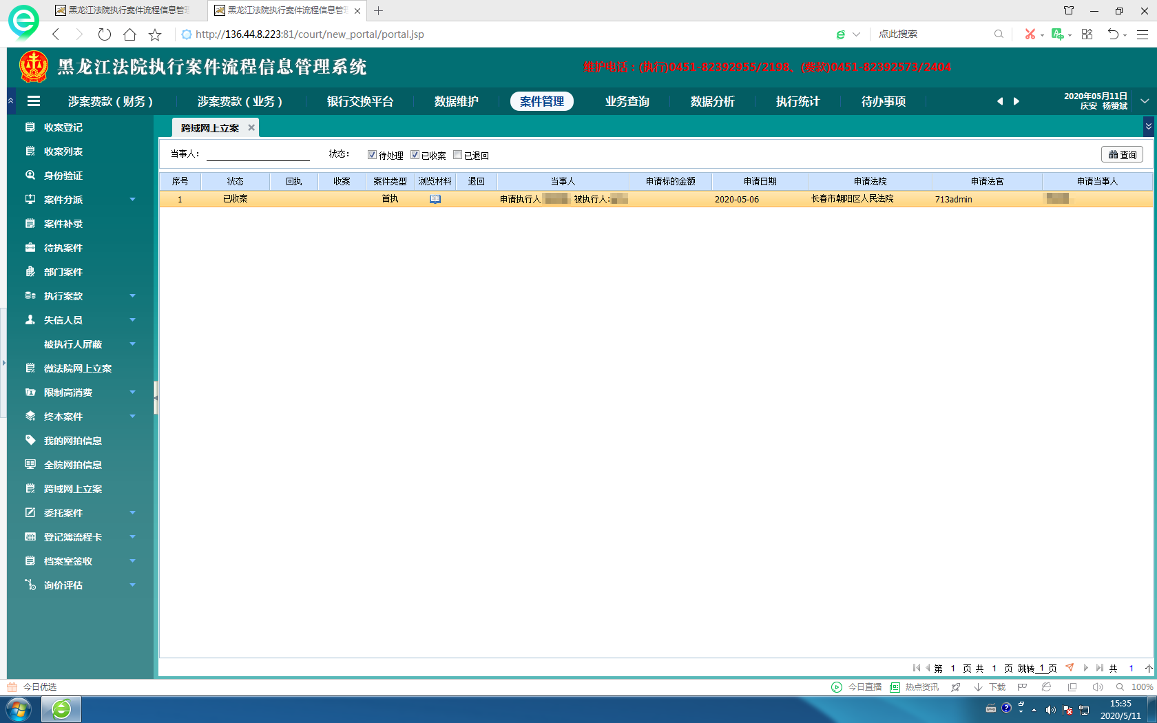 5月6日,庆安法院作为管辖法院与作为协作法院的长春市朝阳区法院协作,成功完成一件民间借贷纠纷案件的跨域立案。