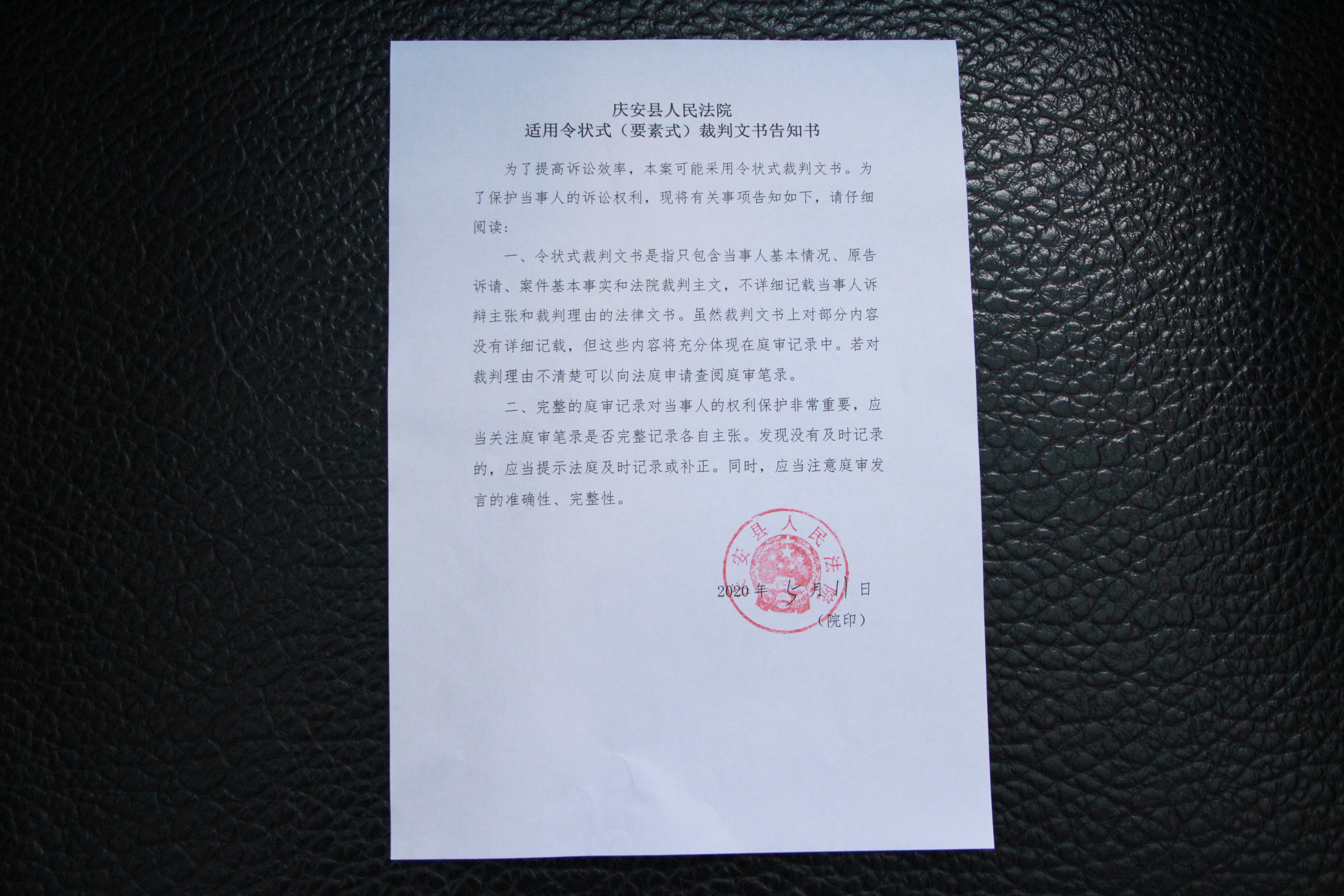 5月12日,庆安法院速裁团队采用“要素式”审判模式对一起离婚案进行快速审理,半个小时审理结案,赢得双方当事人的好评。