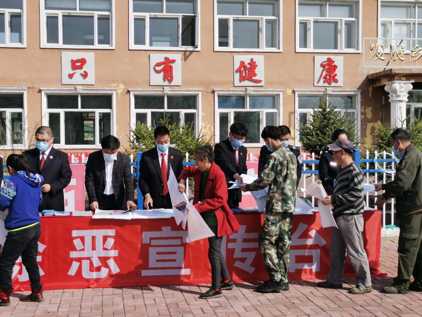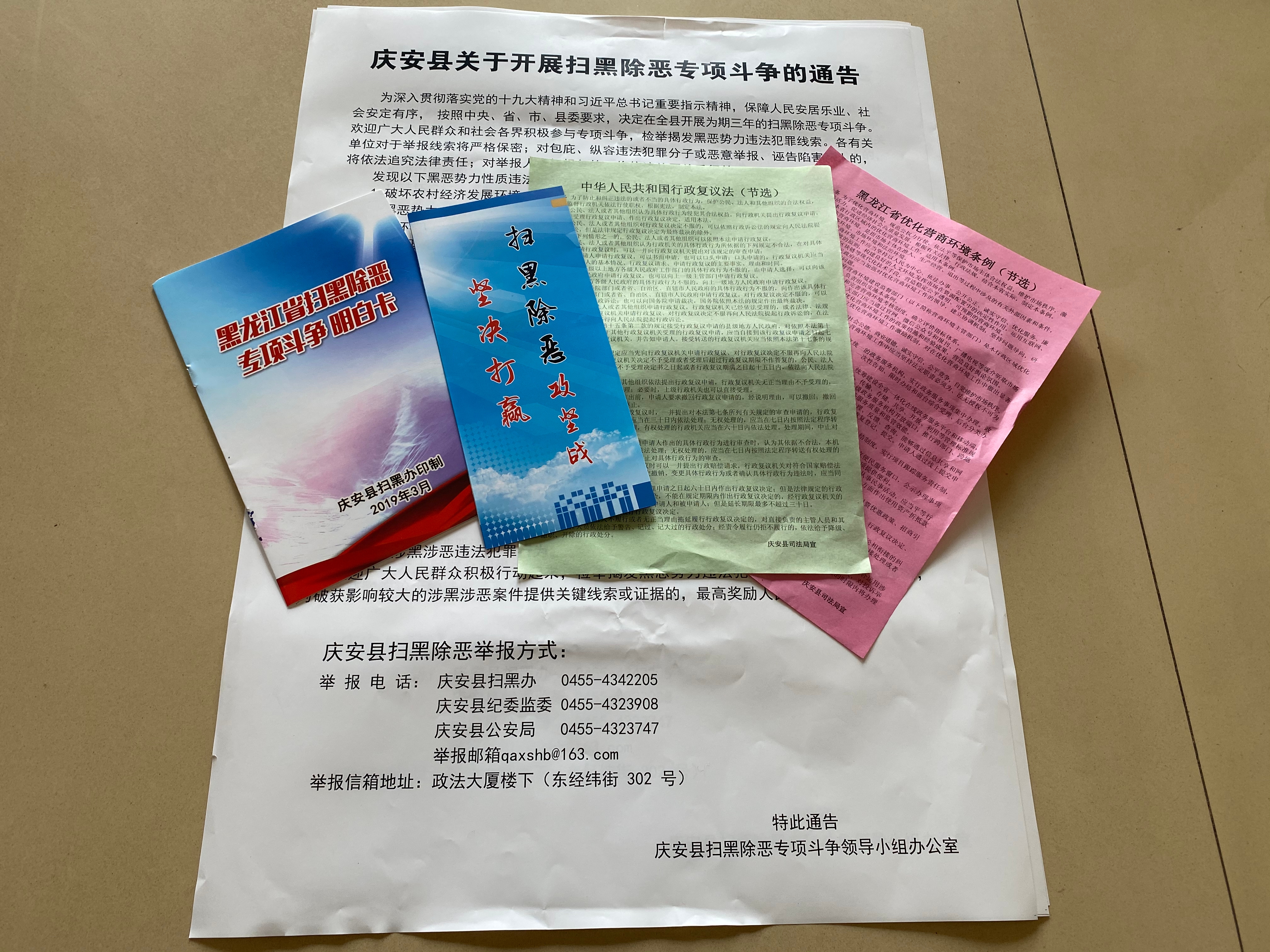 5月16日,庆安法院组织干警分别到发展乡、平安镇开展了“扫黑除恶”专项斗争集中宣传活动。