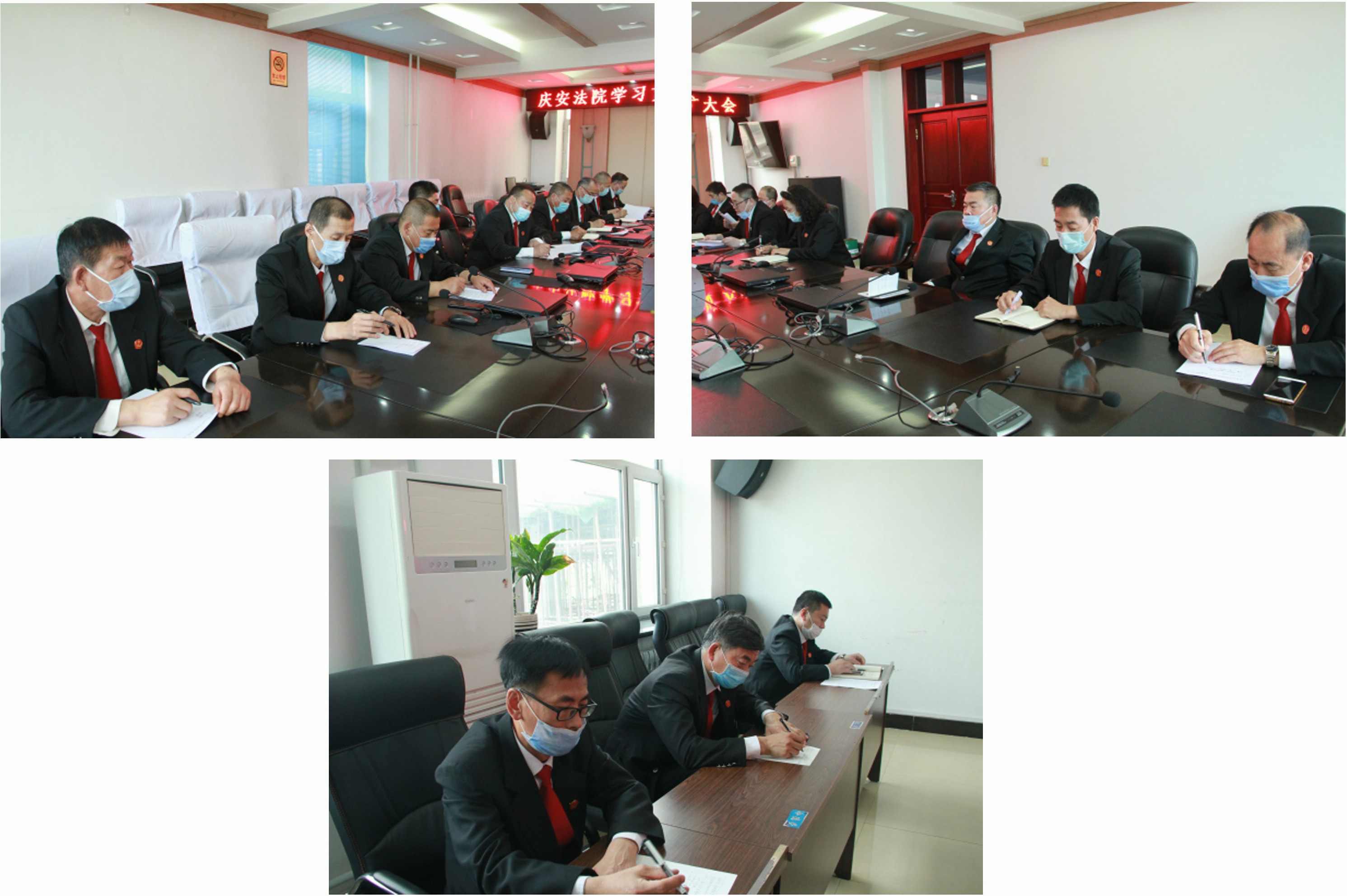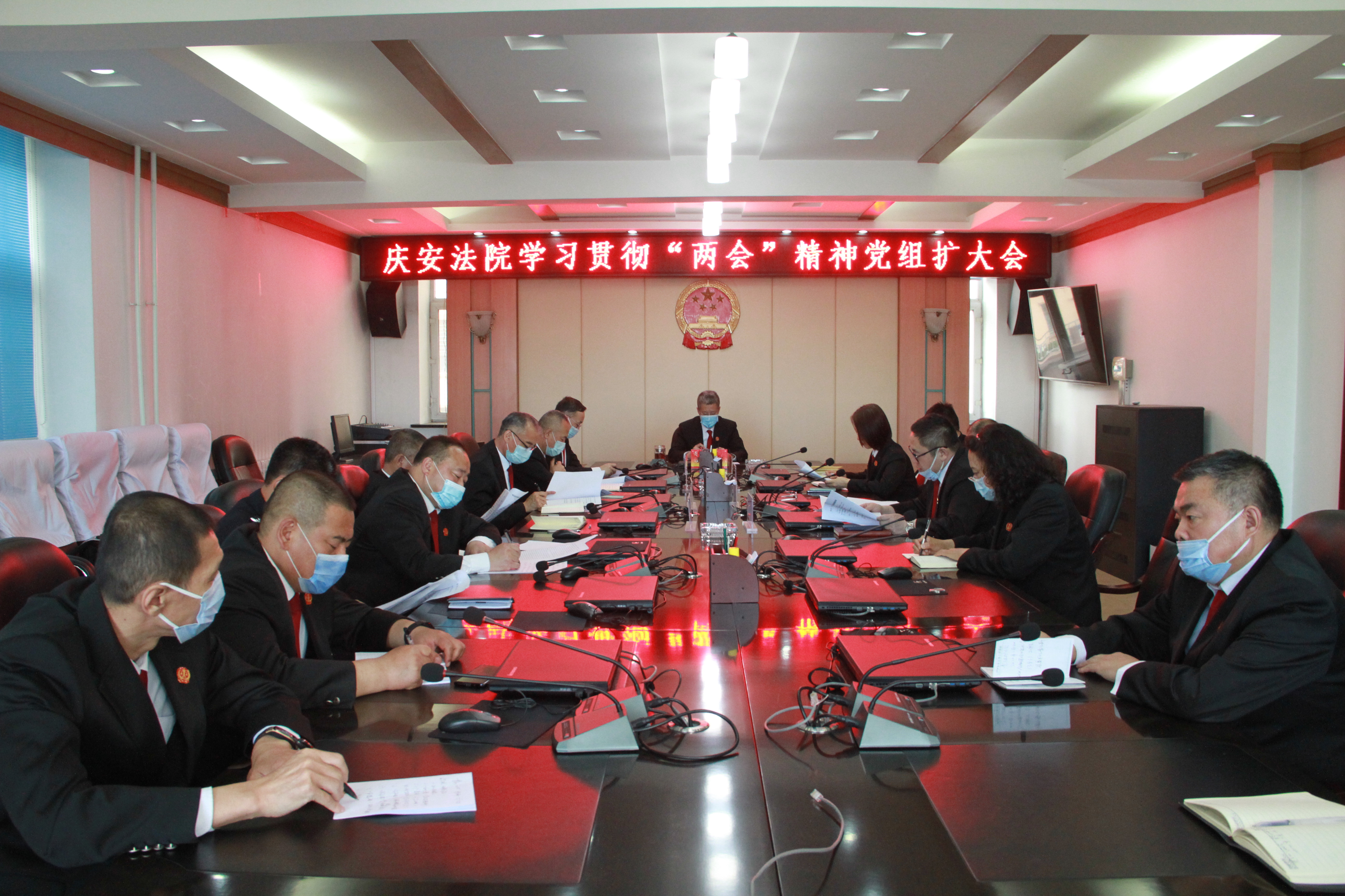 6月2日下午,庆安法院召开党组(扩大)会议,认真学习贯彻全国“两会”精神,学习习近平总书记在“两会”期间的重要讲话精神,特别是习近平总书记在中央政治局第20次集体学习时就关于“切实实施民法典”的重要讲话精神,学习贯彻郭声琨同志在中央政法委员会全体会议上的重要讲话精神,学习贯彻周强院长在全国法院学习贯彻“两会”精神视频会议的讲话精神,并就深入学习贯彻相关精神提出了五点要求: