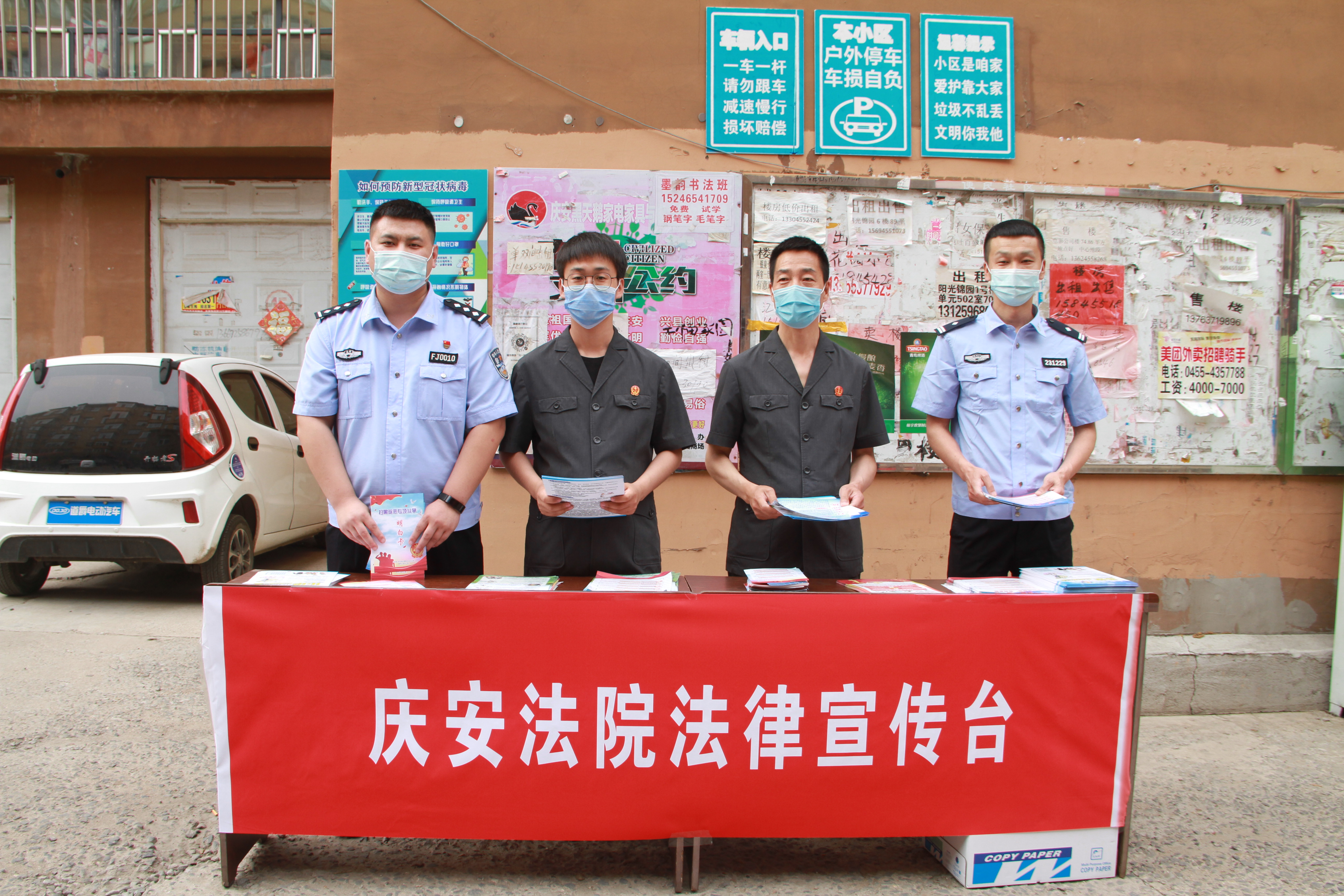 6月22日,庆安法院刑事审判庭干警来到安泰街道庆和社区,开展防范和打击非法集资宣传活动,各个法庭也同步开展了宣传活动。