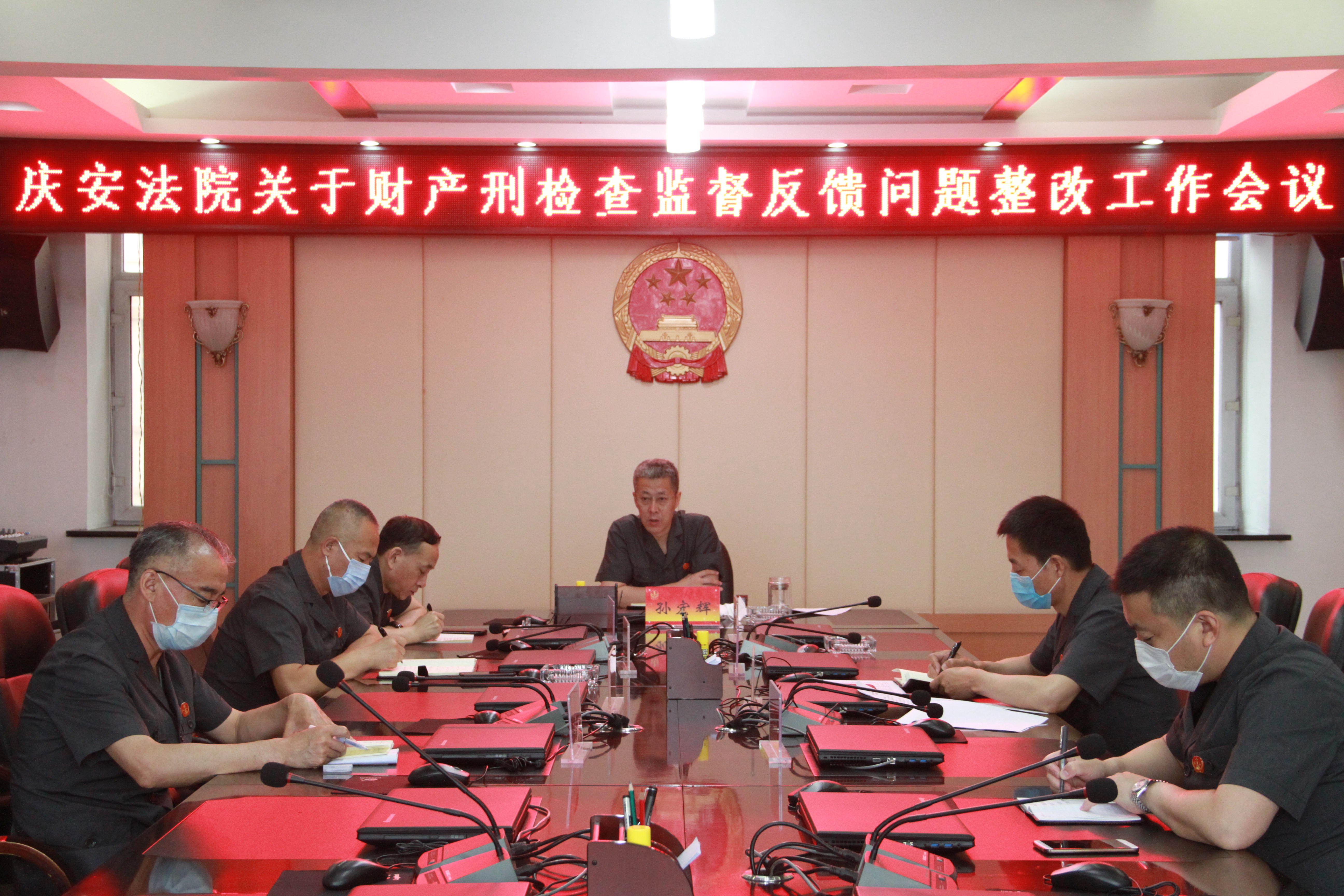 6月23日上午,绥化中院关于对财产刑检查监督反馈问题整改情况专题督导视频会议结束后,庆安法院立即召开由刑事、立案、执行、审管、办公室等部门主管领导和部门负责人参加的工作推进会议,贯彻落实中院会议精神和中院党组副书记、常务副院长赵辉同志提出的四点要求,对财产刑检查监督反馈问题整改工作进行再部署。