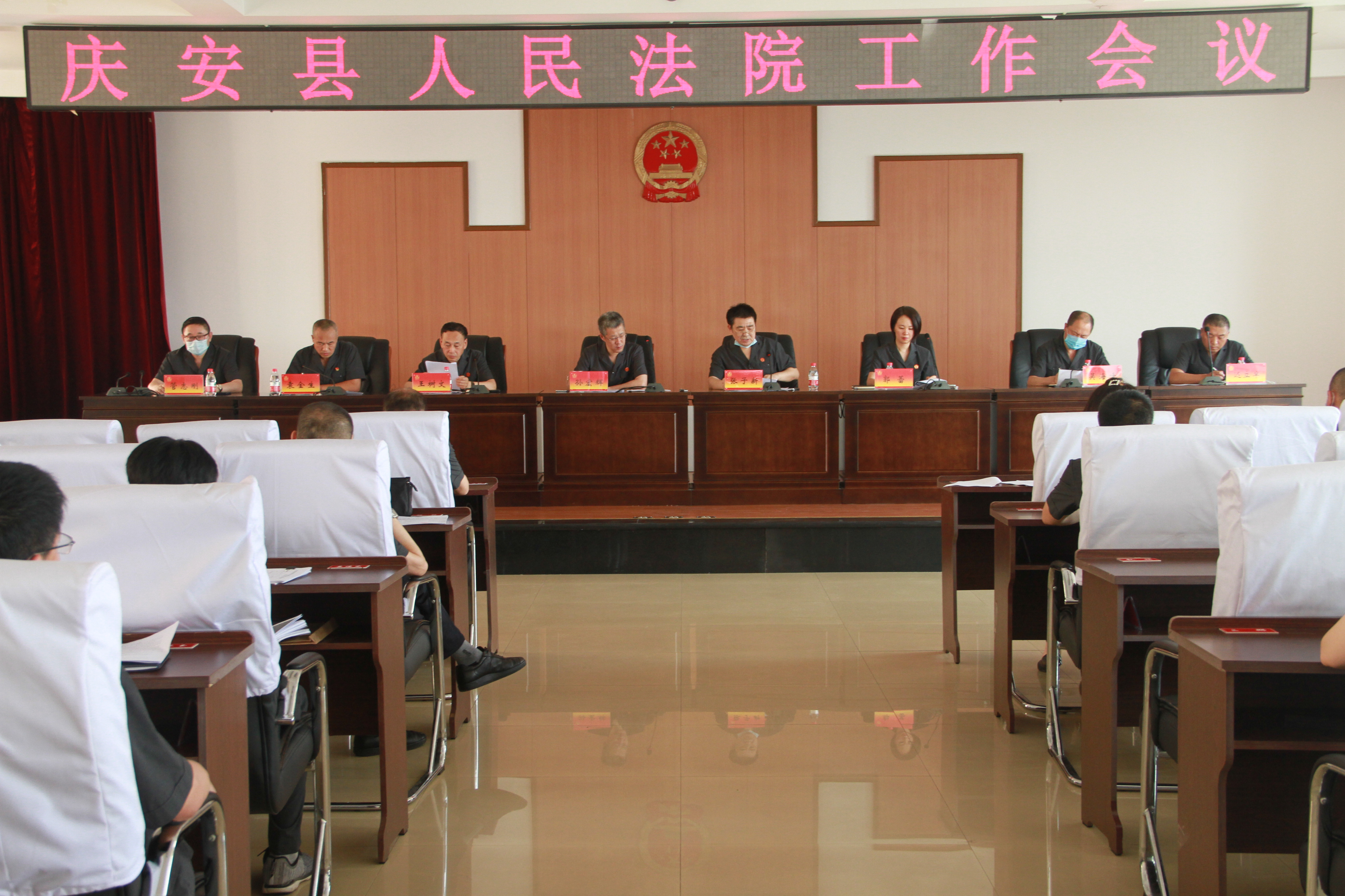 为进一步凝聚共识、鼓足干劲,确保年底圆满完成各项工作任务目标,7月17日,庆安法院召开工作会议,总结回顾2019年和2020年上半年工作,总结经验、查找不足、分析原因,并明确下半年各项工作任务和工作重点。会议由党组成员、副院长张子新主持,党组成员、部门正副职、全体员额法官参加了会议。