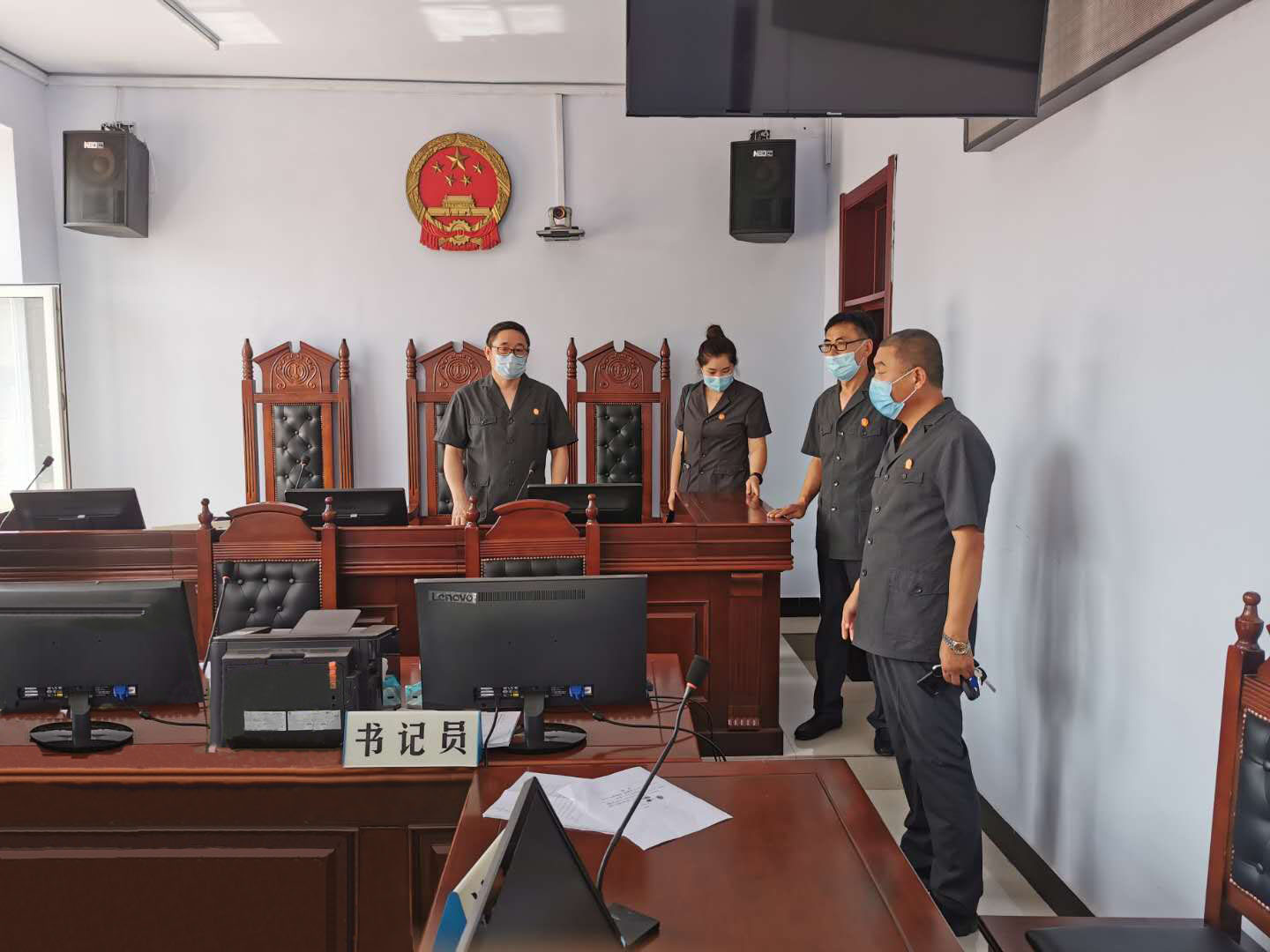 为了深入贯彻落实省法院工作会议精神和院党组会议部署要求,7月30日,庆安法院党组成员、政治部主任管志刚,党组成员、纪检组长迟立卓等一行4人组成督查组,对人民法庭的疫情安全、纪律作风、司法规范化情况进行督导检查。