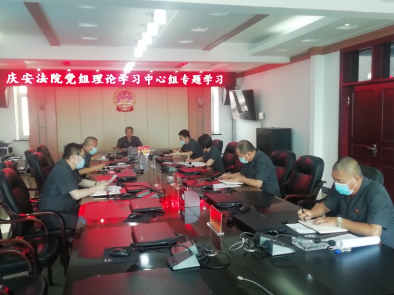 7月31日,庆安法院党组理论中心组召开会议,学习《中华人民共和国国防教育法》,深刻学习领会习近平强军思想。党组书记、院长孙宏辉主持会议,党组成员参加会议,并进行了学习座谈交流。