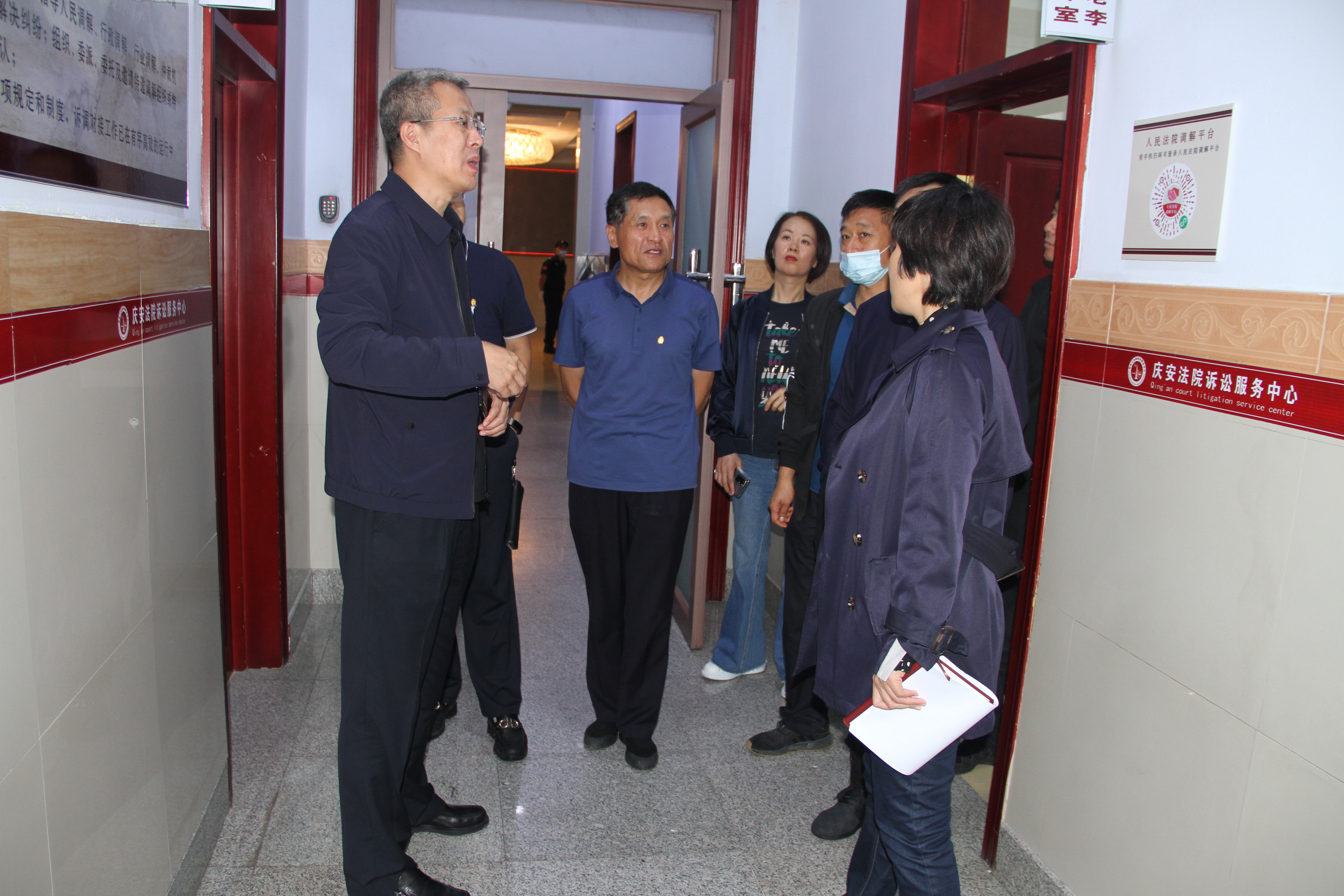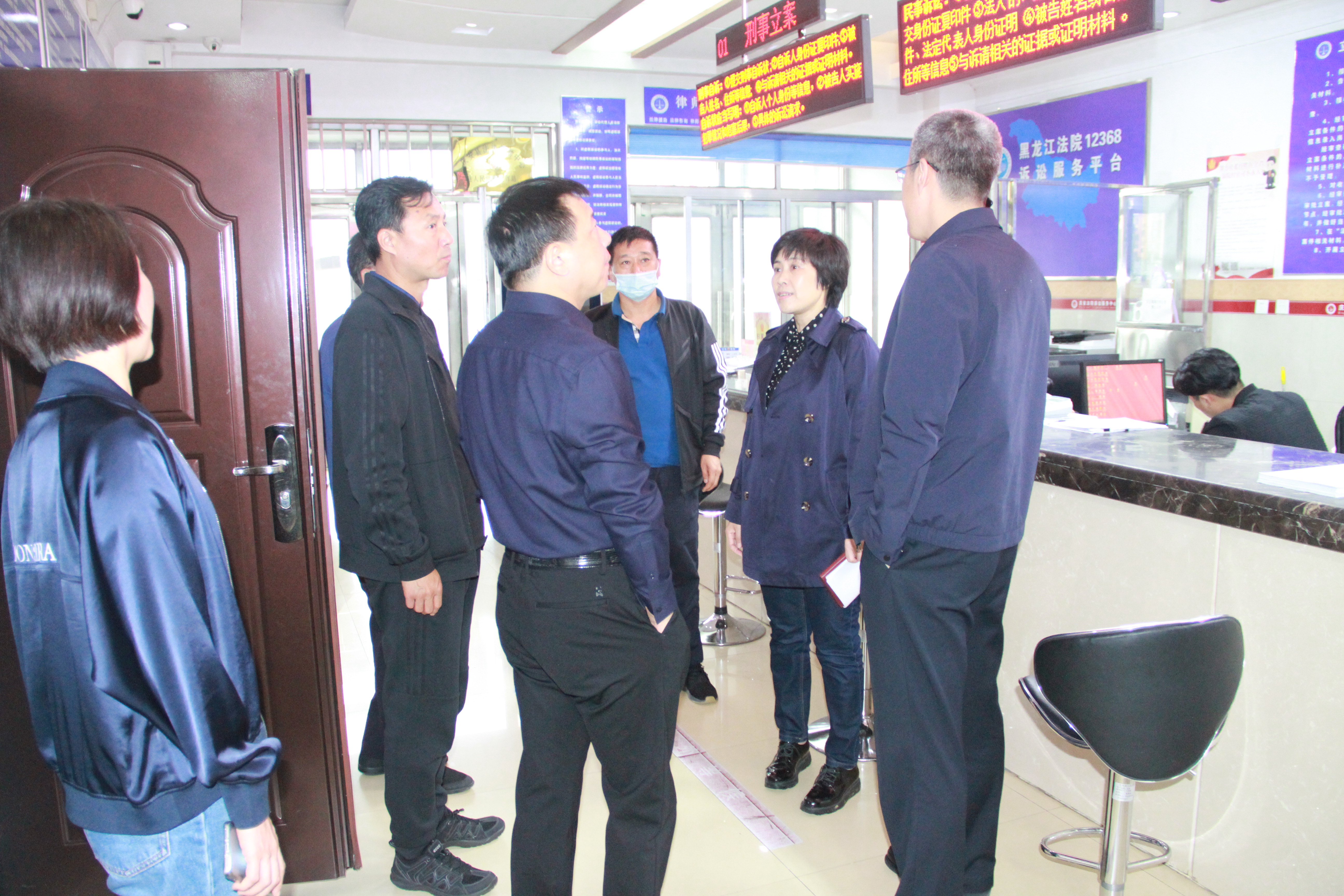 宋兆丽一行参观了庆安法院诉讼服务中心和“老李调解工作室”,详细询问了诉讼服务诉调对接工作开展情况,并亲切询问了“说和人老李”近期调解工作情况,随后,召开了座谈会。