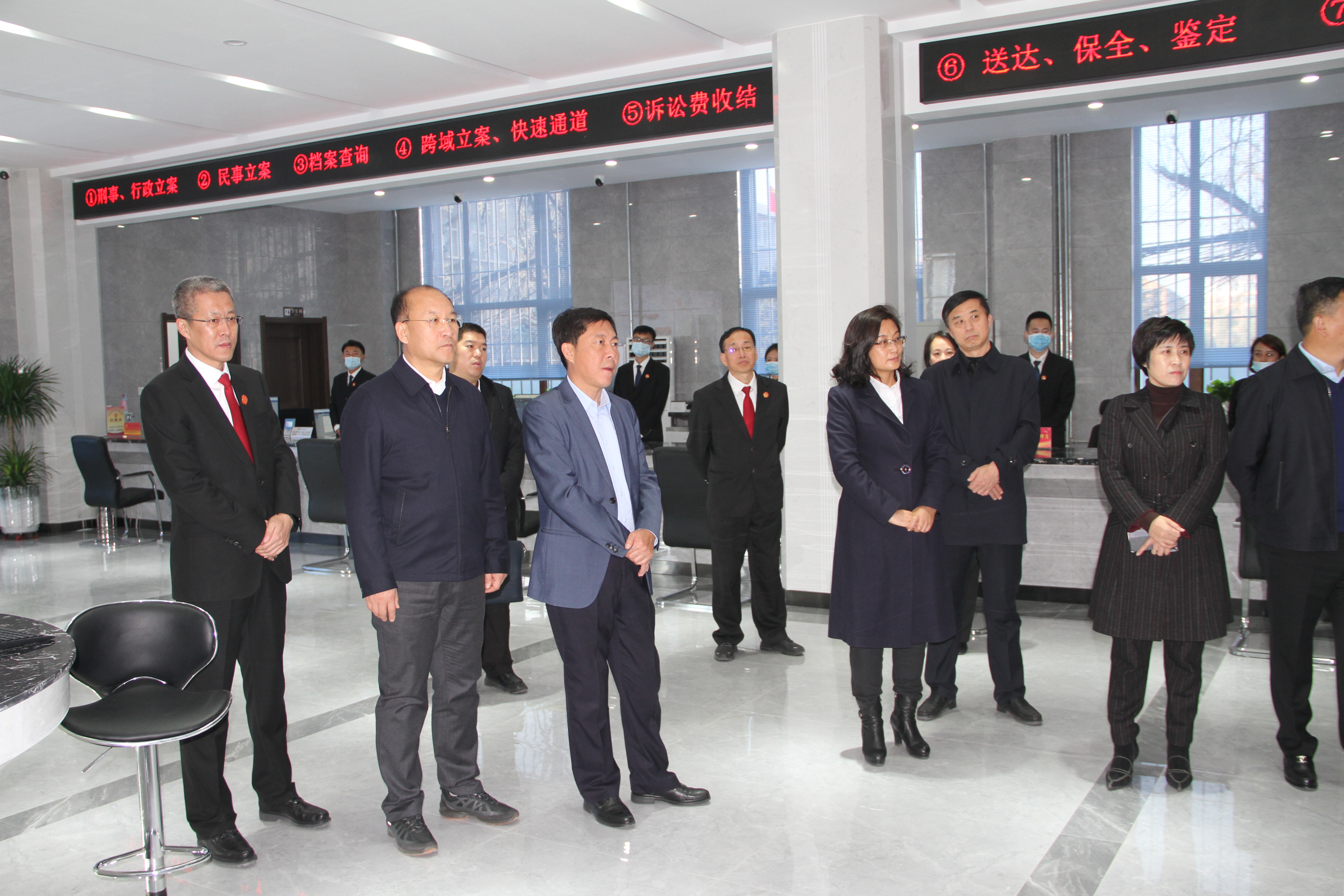 在讲解员的引领下,大家首先参观了新落成的诉讼服务中心、审判法庭,对集立案、辅助、自助和调解为一体的现代化诉讼服务中心建设、对设置的诉讼风险评估、诉状辅助生成、诉状打印、执行风险评估告知、网银自助服务等智能终端设备给予了高度评价,完善的服务流程和服务标准,给各位领导留下了深刻的印象。