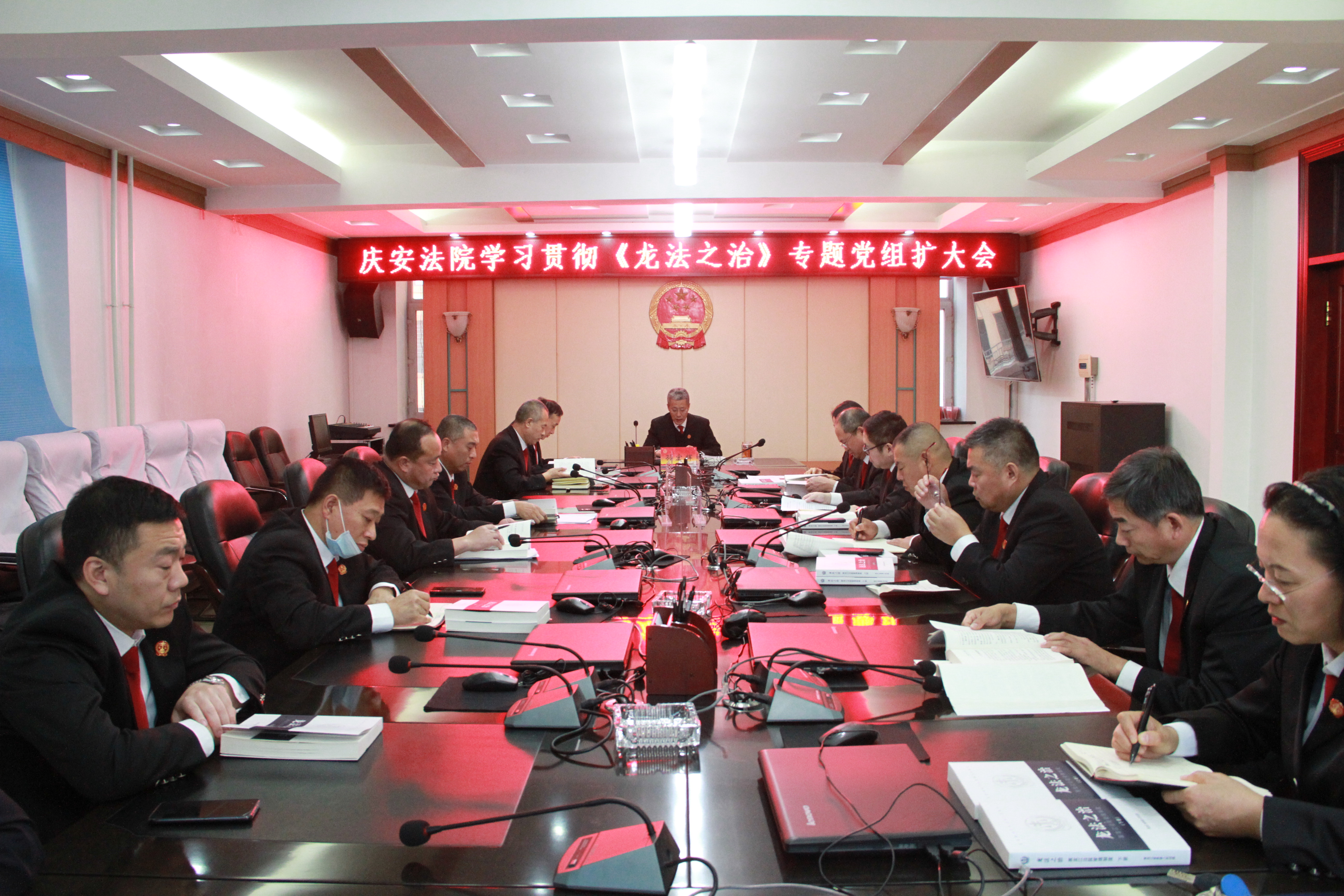 10月23日,庆安法院召开党组(扩大)会议,学习贯彻《龙法之治•黑龙江法院管理制度》,党组书记、院长孙宏辉主持会议,党组成员、各部门负责人参加了学习。