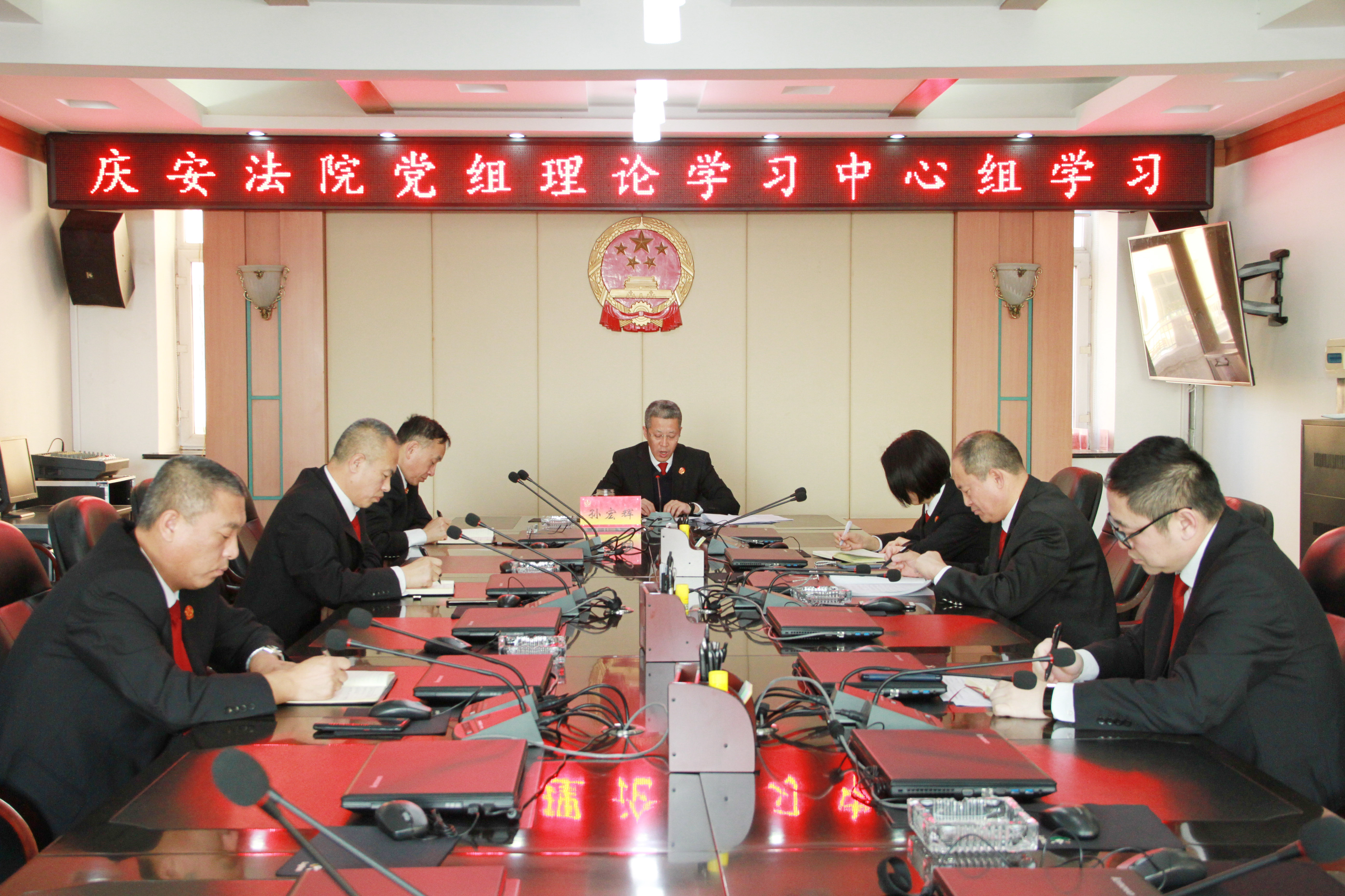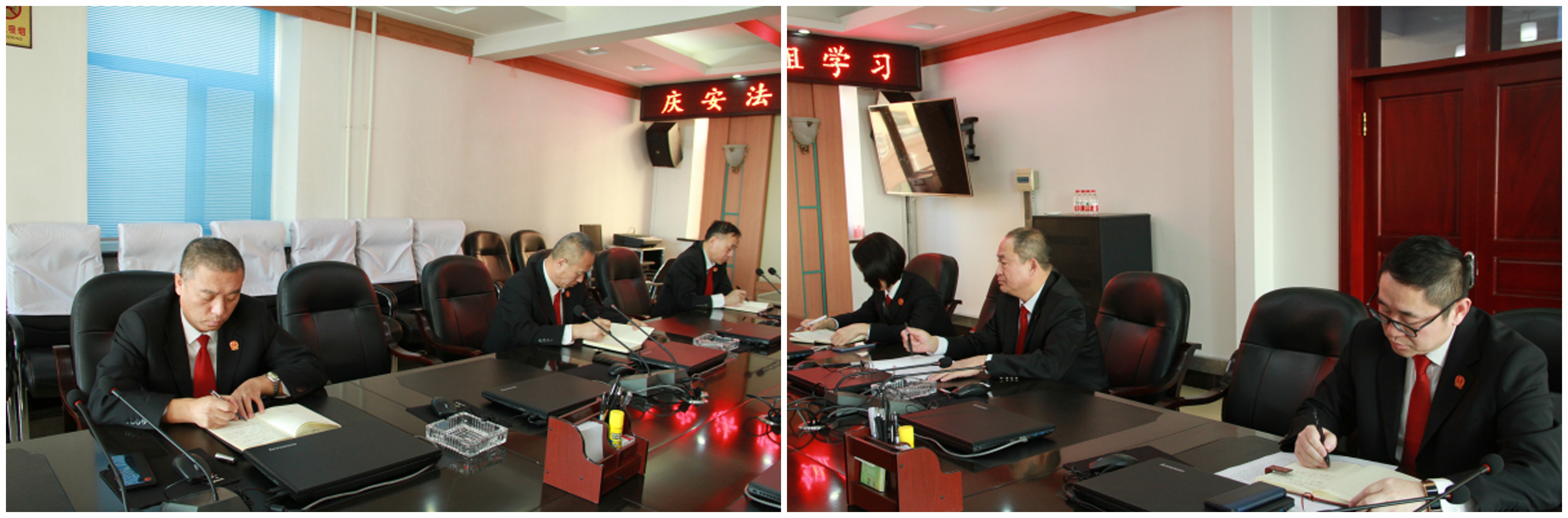 11月18日,庆安法院党组理论学习中心组利用下午学习日时间,集中学习了党的十九届五中全会精神和习近平总书记在中央全面依法治国工作会议上的重要讲话精神,全体班子成员进行了认真学习和深刻交流。