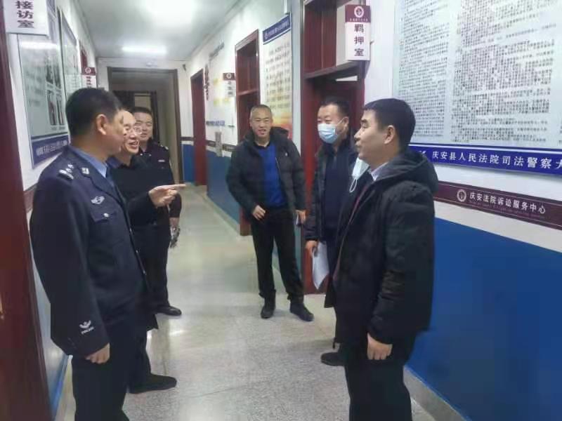 12月15日,绥化中院法警支队支队长刘长林、负责警政工作的法警陈海军来到庆安法院,对庆安法院法警大队“六专四室”建设情况以及全年工作完成情况进行考核验收。