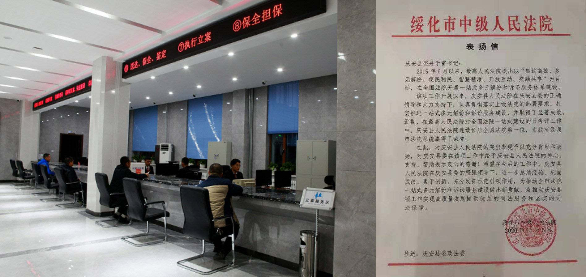 二是深入贯彻落实于雷书记、张守坤主任对庆安法院一站式建设工作的批示意见,深入挖掘“说和人老李”的成功经验和调解方法,做实做细一站式多元解纷和诉讼服务体系建设的“后半篇文章”,努力打造新时代“枫桥经验”“庆安名片”;