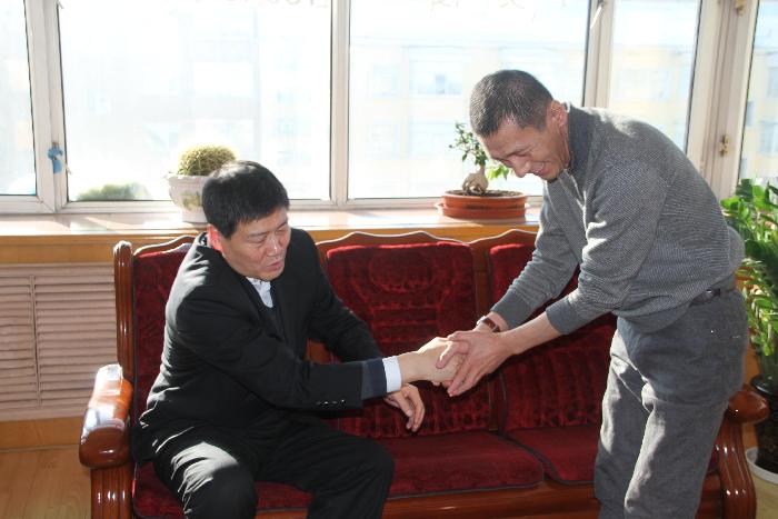 1月28日上午,市中院党组书记、院长李东和党组成员、政治部主任吴刚来到庆安法院,与庆安法院党组书记、院长李晓滨一同到身患白血病的庆安法院干警吕彦龙同志的家中,慰问并送上新春祝福。