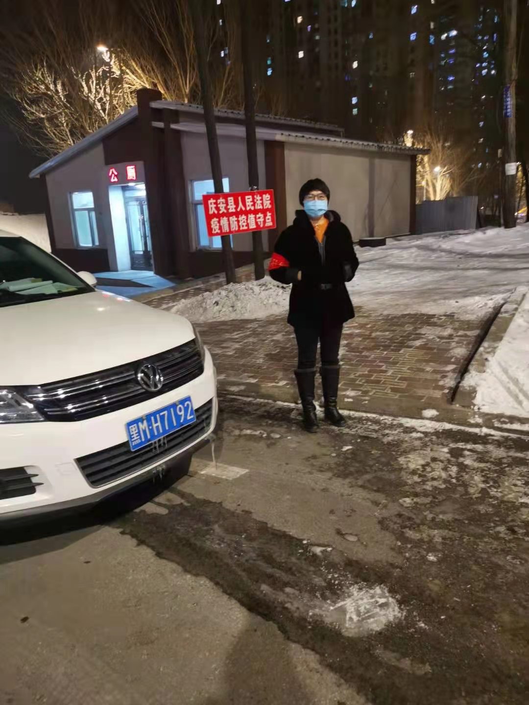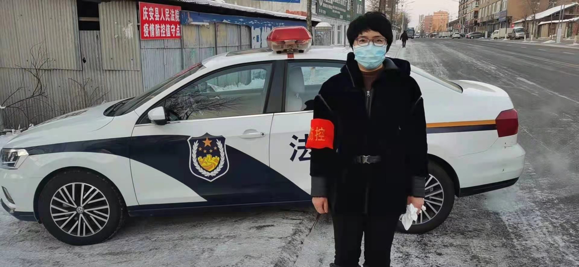 由于爱人在哈尔滨值守工作岗位回不来,每当轮值到她值守包保小区时,她都会为俩个孩子(女儿16岁、儿子5岁)准备好一天的面包、牛奶和水果后,毅然走上岗位,坚守卡口执勤第一线。在执勤中,她能够严格执行职责要求,妥善处理突发事件。面对一男子硬性闯卡购买生活物品劝阻无效的情况,她安排同组执勤干警冒雪去帮助购买;在高龄老人缺少紧急药品时,她及时联系社区购买药品,使老人感动而返;独居老人因无水做饭,她就去对面街道敲门接水送到老人家中;居民的电饭锅坏了,她帮忙联系厨具商店送锅上门解决群众吃饭问题......一幕幕感人至深的画面如在眼前,无不彰显着一名人民法官的职业操守和为民情怀。