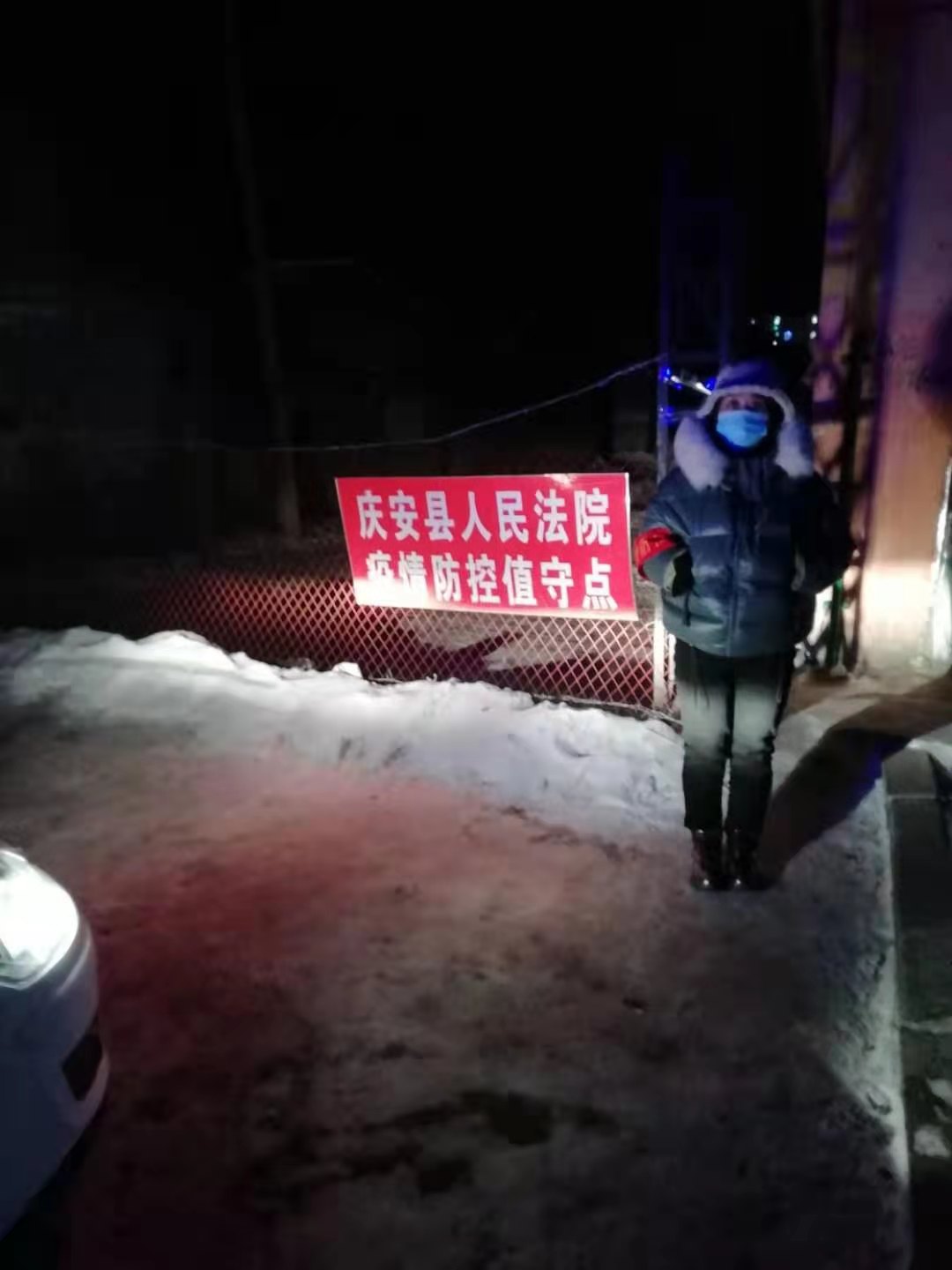 今天是1月28日,早上温度零下29度,七点之前,五个卡口的值守干警提前上岗。值守干警发扬特别能吃苦,特别能奉献的精神,开始了13个多小时的值守,全天共排查登记 73人,劝返 26人,车辆登记4台。值守过程中认真执行防控纪律,履行职责,坚守岗位,彰显了庆安法院人的良好素质和精神风貌。