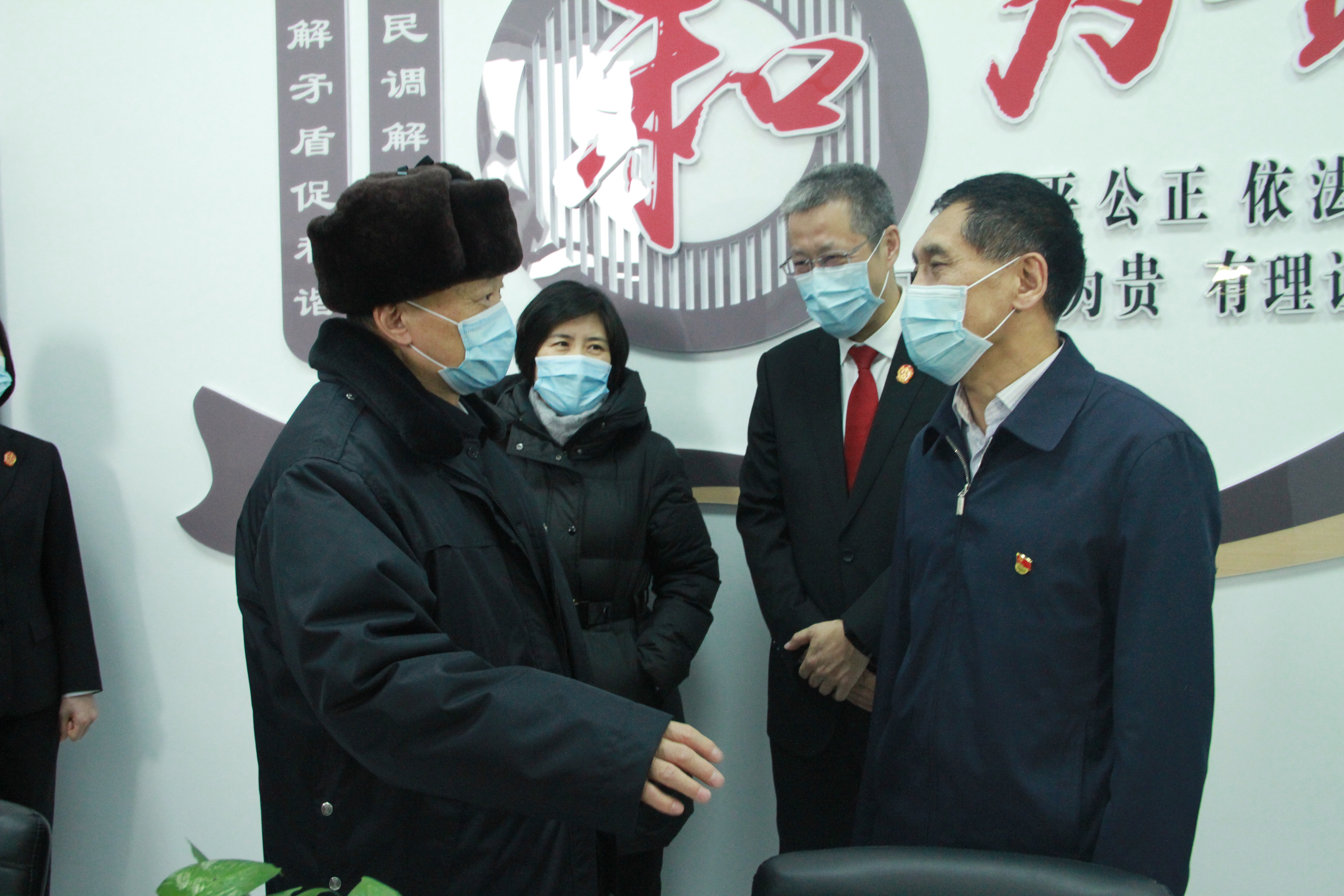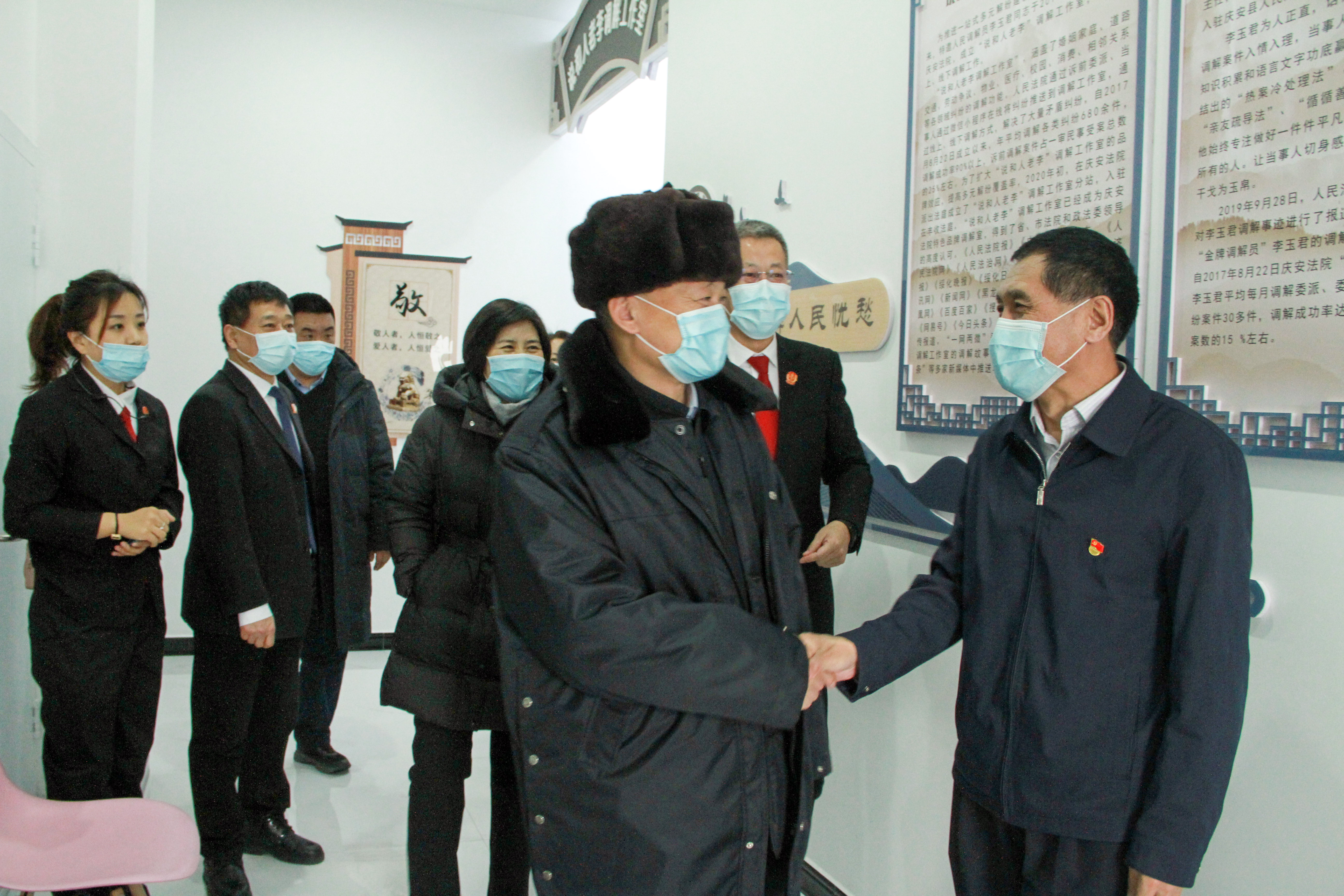 2月19日,市委常委、政法委书记侯剑波、市委政法委副书记陆营一行,来到庆安县人民法院调研走访“说和人老李”李玉君同志,县委常委、政法委书记宋兆丽等同志陪同调研。