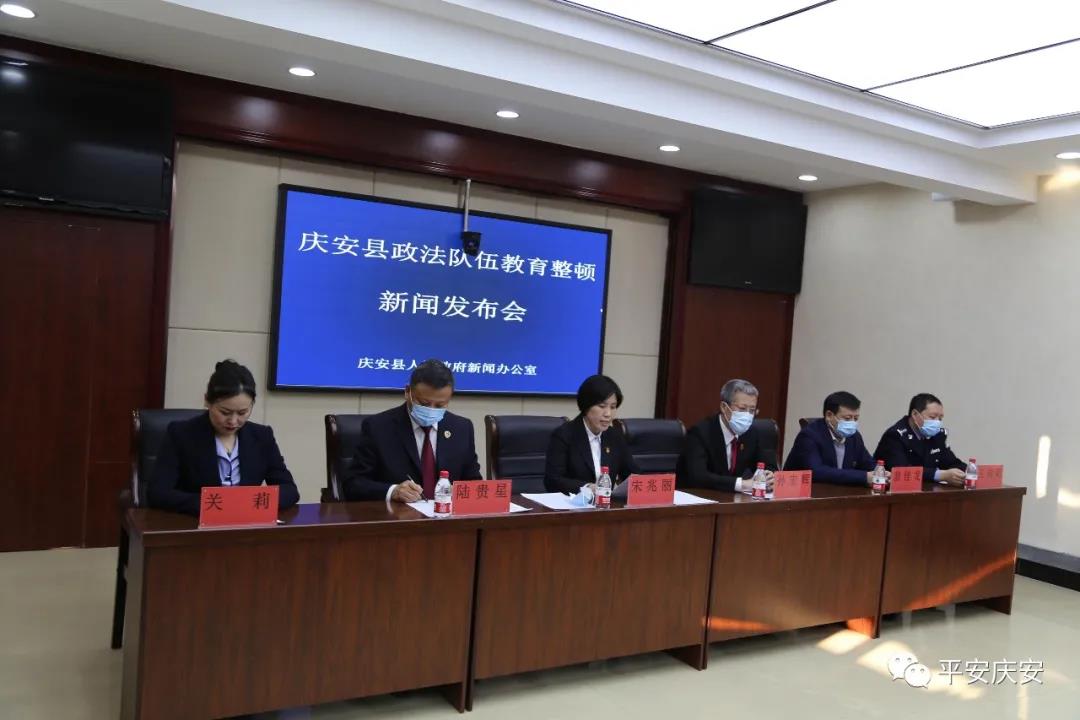 筑牢政治忠诚、清除害群之马、整治顽瘴痼疾、弘扬英模精神,313日下午,庆安县政府新闻办在法院六楼会议室召开了政法队伍教育整顿新闻发布会。