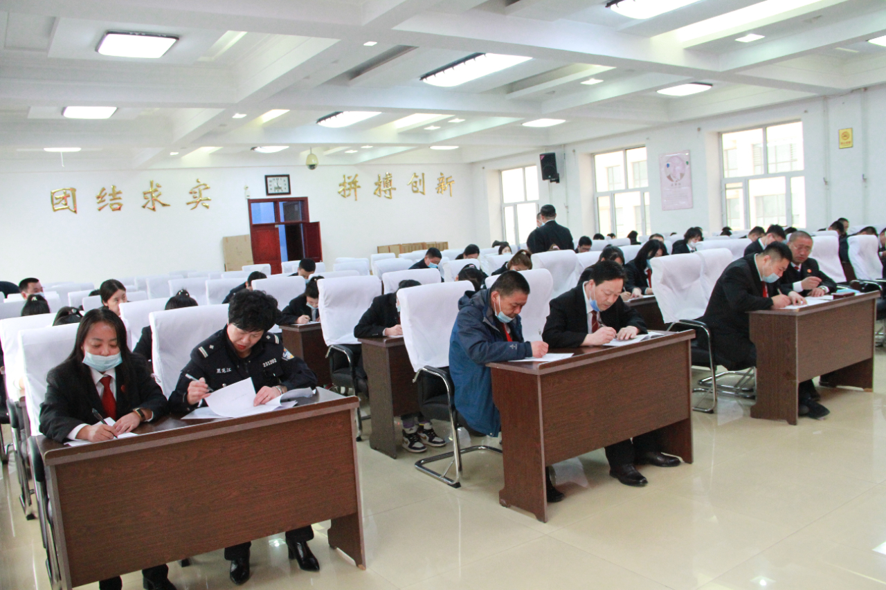 3月29日,庆安县人民法院组织全体干警开展了队伍教育整顿应知应会知识专题测试活动,“以考促学”,增强干警学习的主动性和积极性,检验学习教育成果。