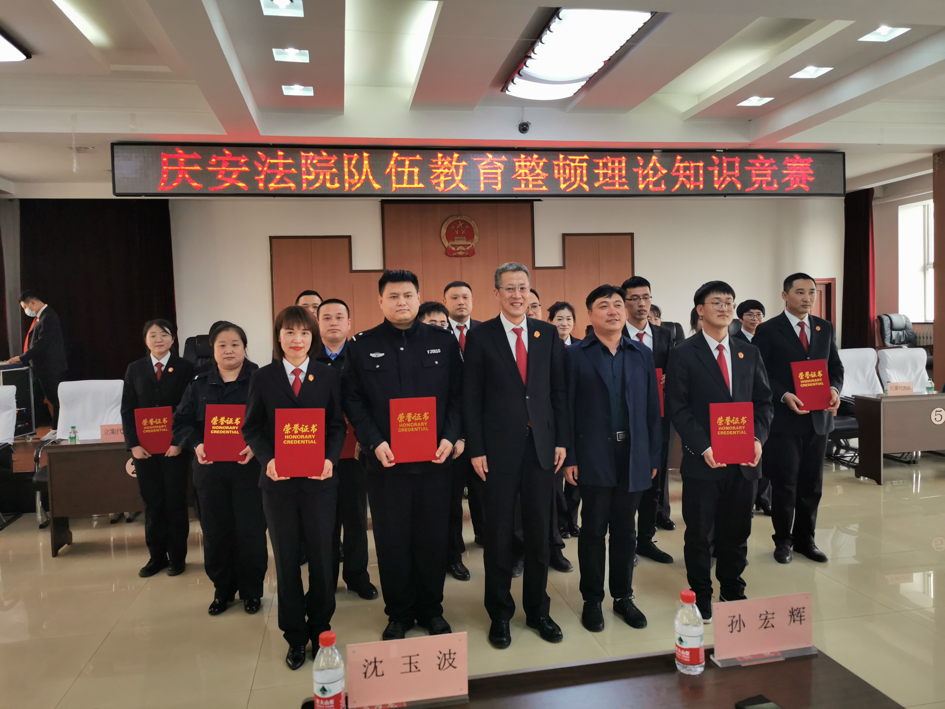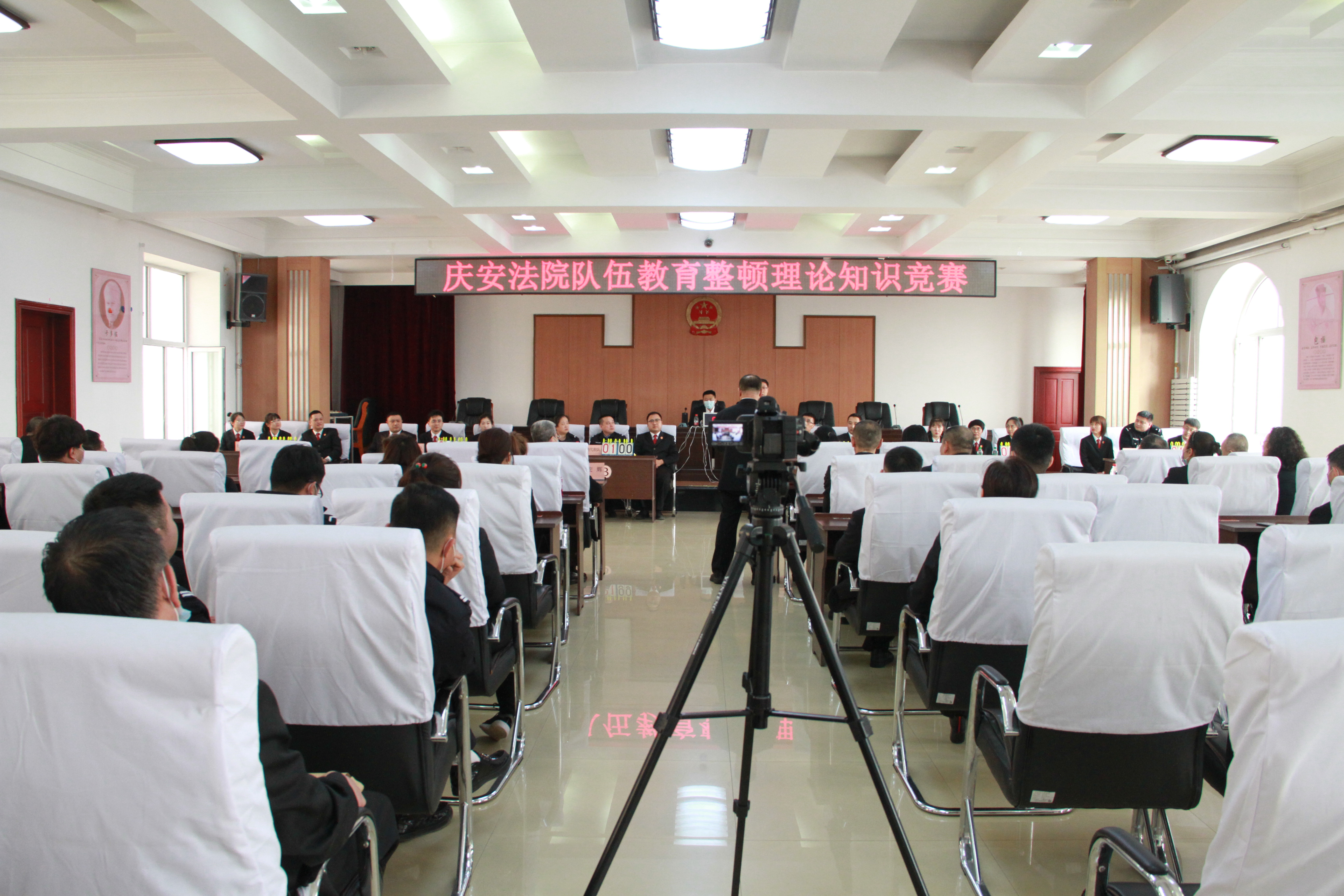 竞赛过程中,所有参赛选手抢答积极踊跃热情高涨,现场精彩纷呈、气氛热烈、高潮迭起,赢得阵阵掌声。通过此次竞赛,进一步激发了干警学习的积极性、主动性,有效促进将学习教育成果转化为思想成果和工作成果,充分展示了庆安法院全体干警昂扬向上的精神风貌和奋勇争先的工作状态。伴随着颁奖仪式的结束,本次知识竞赛活动落下了帷幕,圆满收官,也标志着庆安法院队伍教育整顿工作取得阶段性成果。