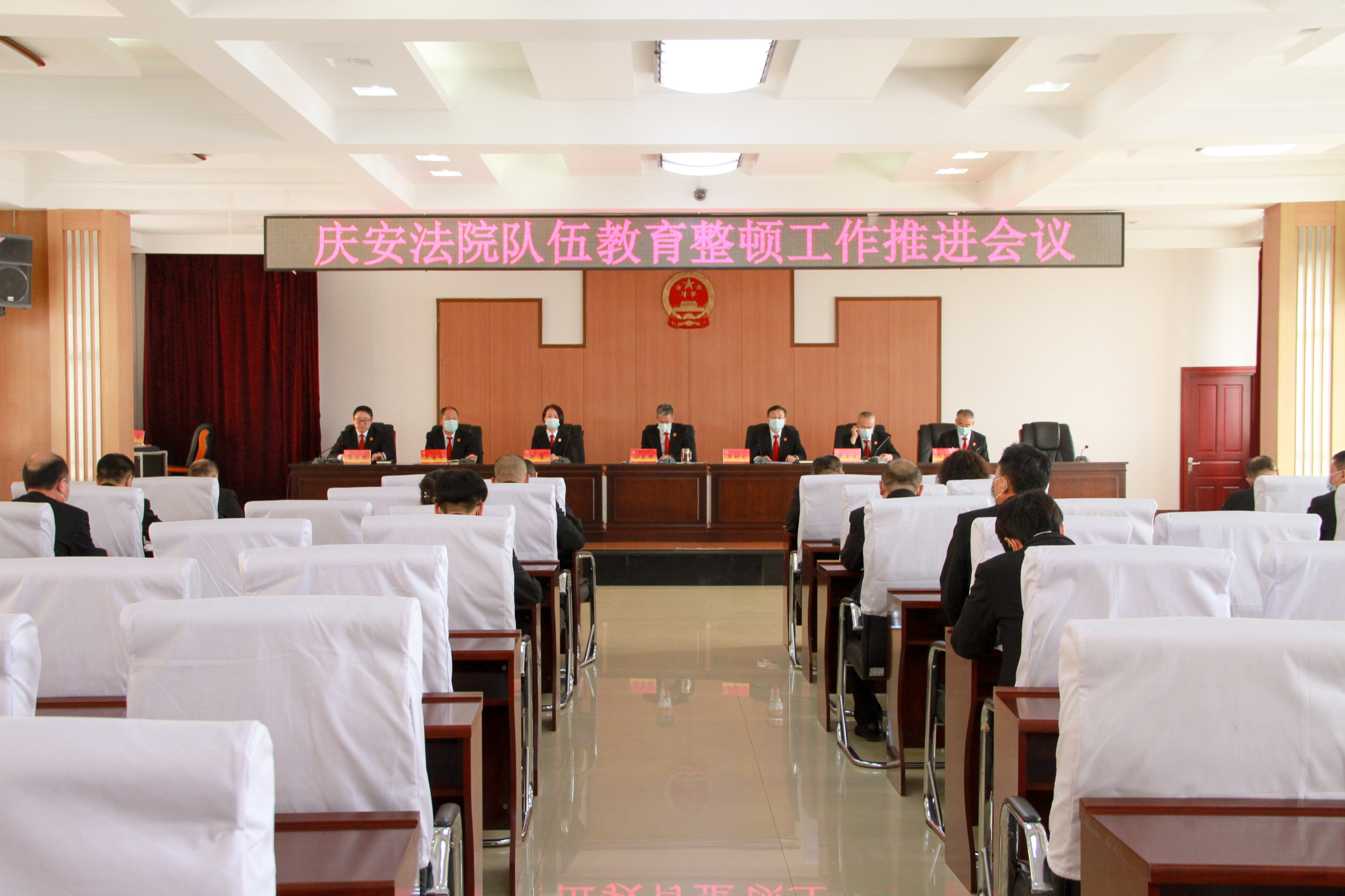4月16日上午,庆安县人民法院召开队伍教育整顿工作推进会。党组书记、院长孙宏辉作了推进部署讲话,党组成员、副院长王树文主持会议,党组成员、政治部主任管志刚宣读了全省政法队伍教育整顿期间适用“自查从宽、被查从严”政策实施意见,传达了中院党组书记、院长王双近在全市法院队伍教育整顿推进会上的讲话精神和县委书记于雷检查指导法院队伍教育整顿工作时的指导要求。