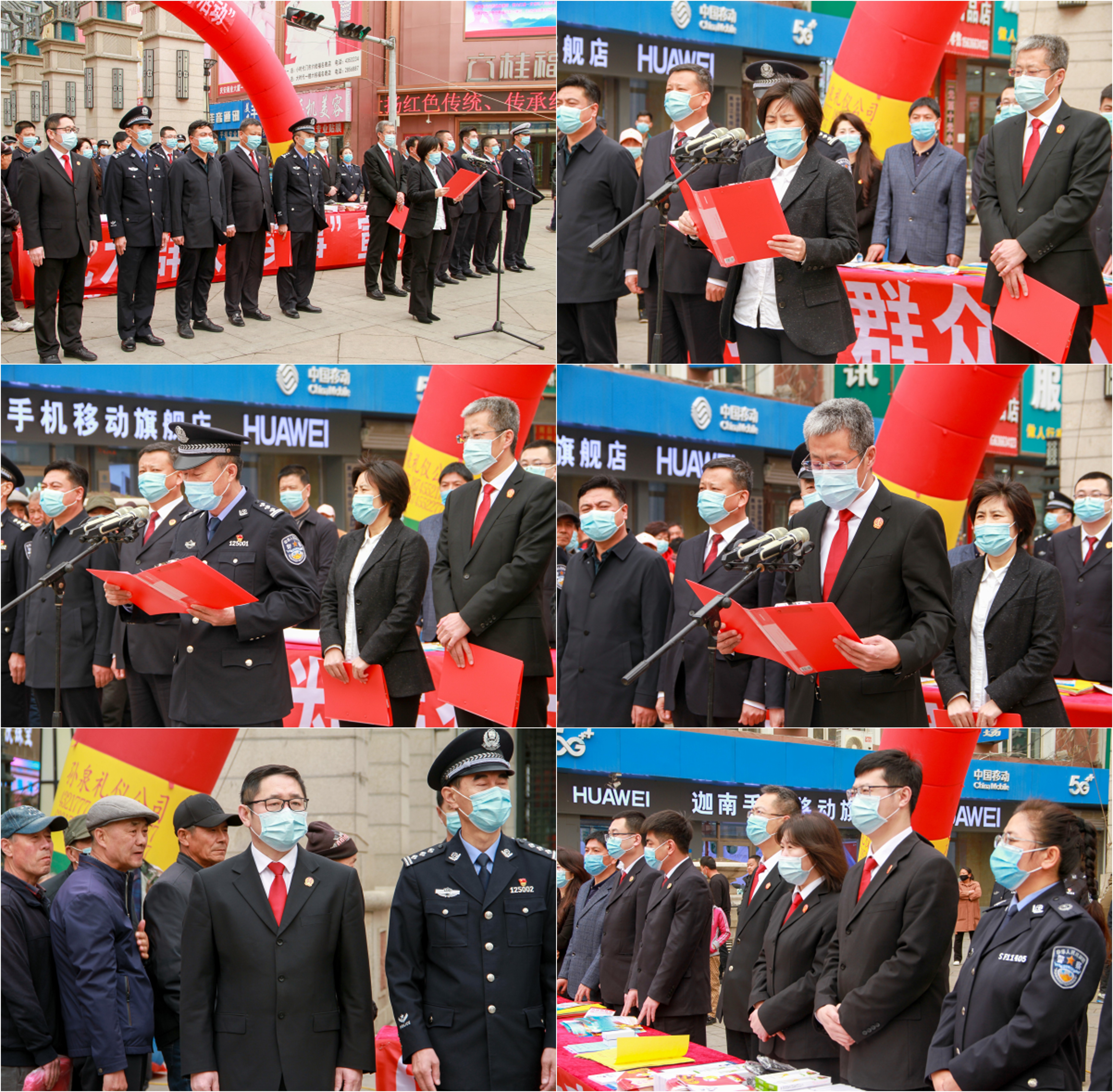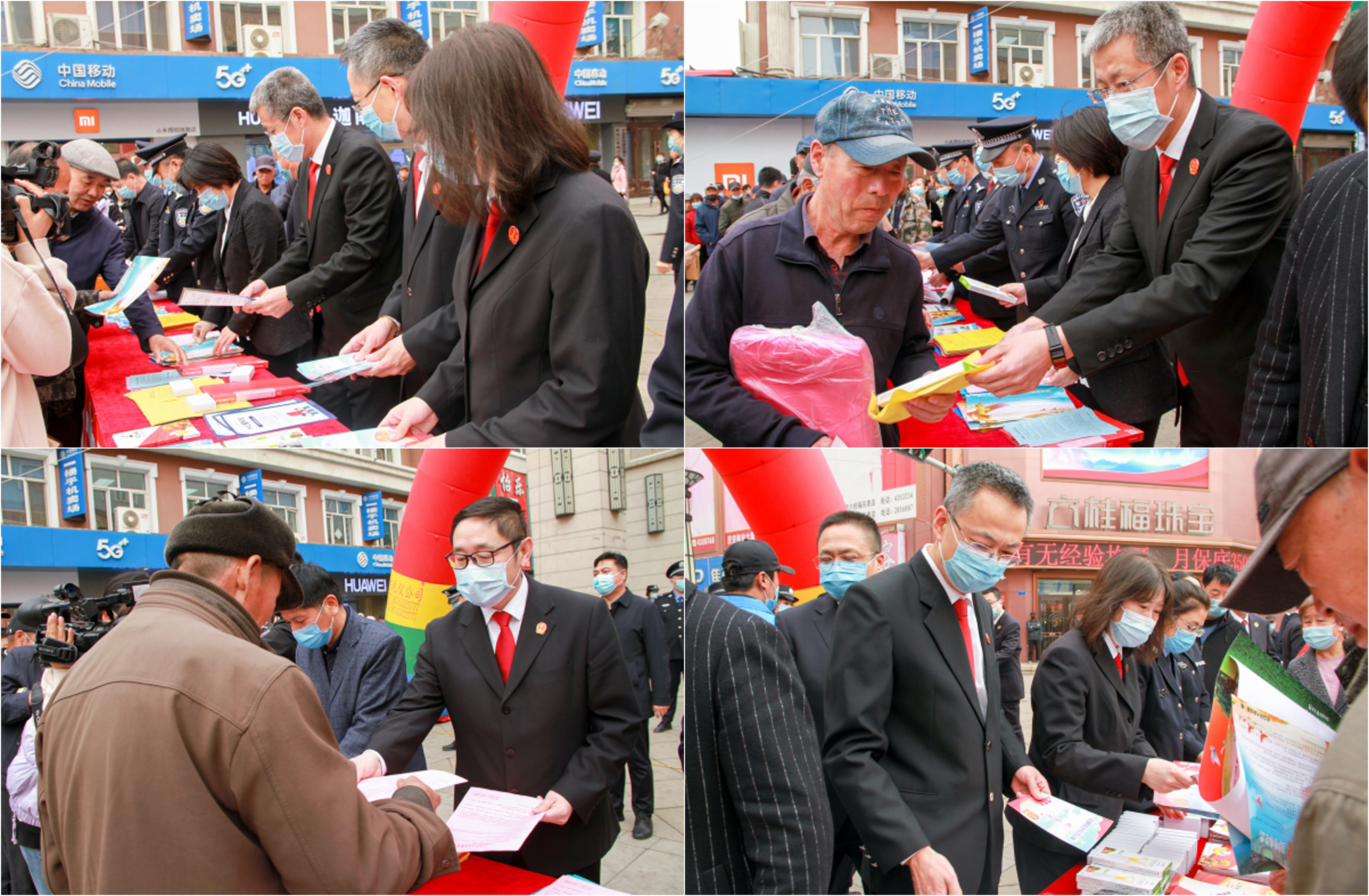 公检法司四机关在商业街通过设置宣传台、彩虹门、悬挂宣传条幅、发放宣传单等形式积极开展“我为群众办实事”司法宣传活动。县委常委、政法委书记宋兆丽致词,县公安局局长刘宏宇主持,县法院党组书记、院长孙宏辉宣读了政法系统便民利民措施,并同干警一起现场解答群众涉法问题20余人次,向过往群众发放宣传资料300余份。