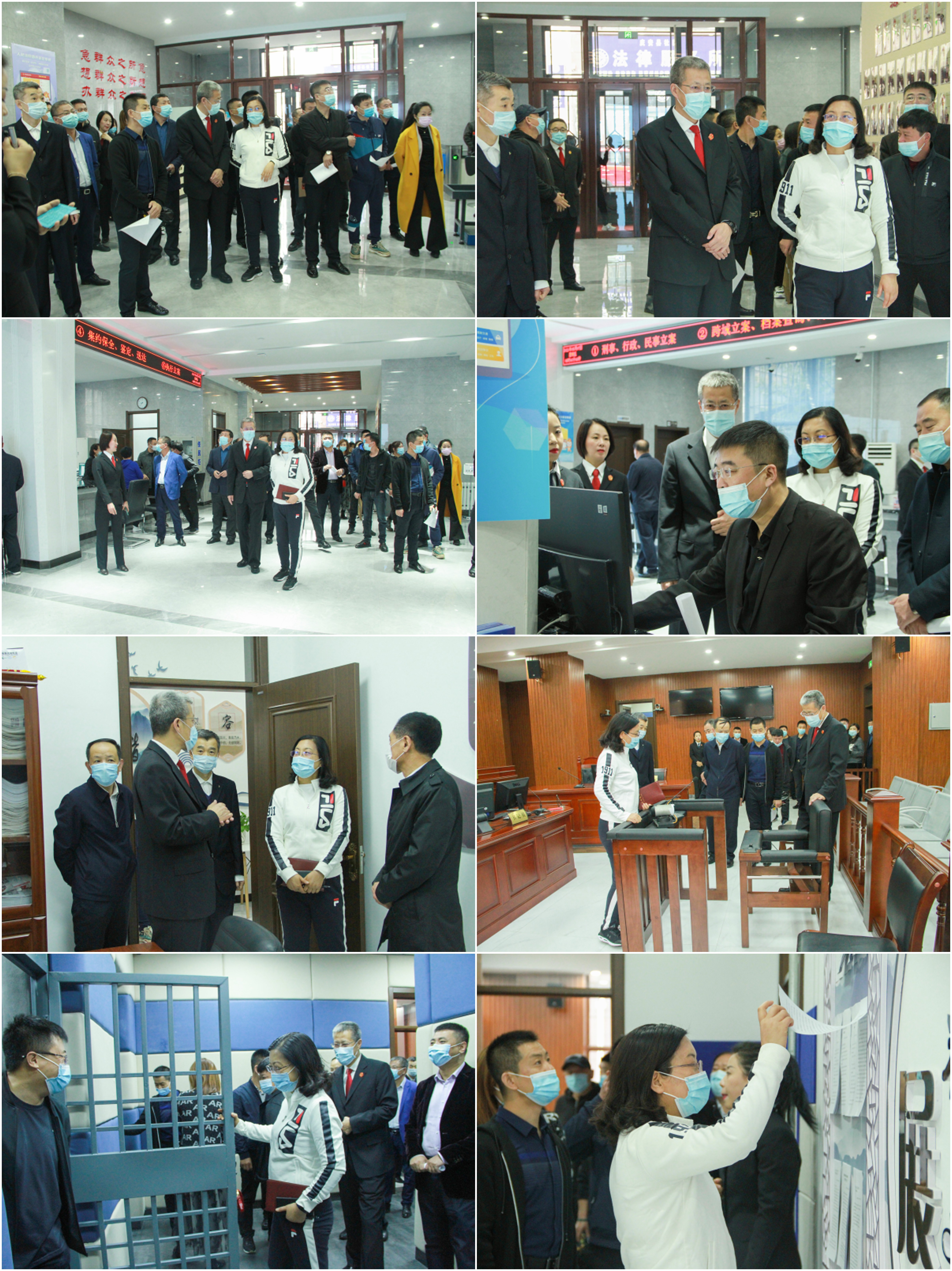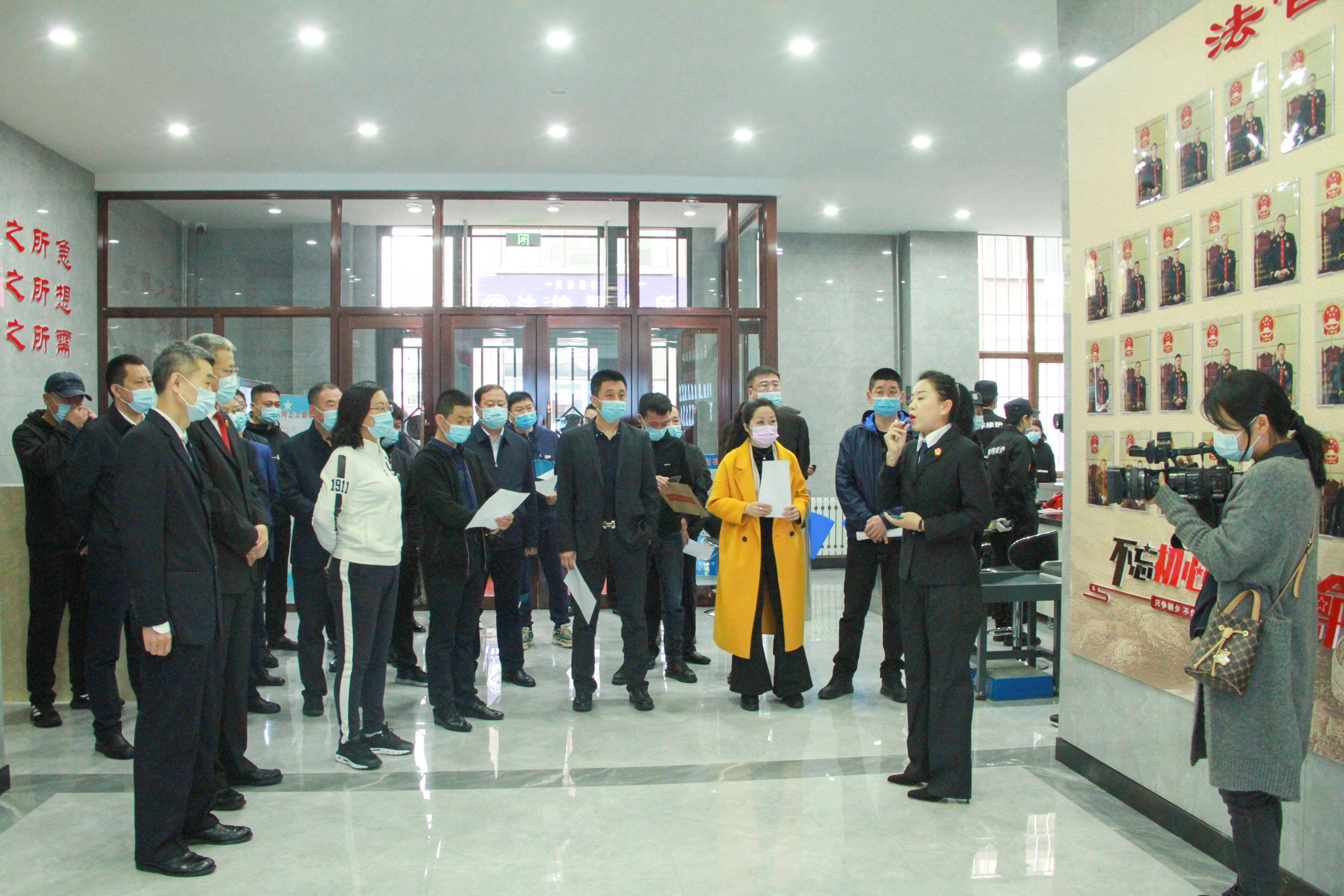 在解说员的引领下,胡晓飞一行先后参观了诉讼服务中心、“说和人老李”调解工作室、审判法庭、文化长廊、队伍教育整顿领导小组办公室、党建活动室等场所,详细了解了法院的基础建设、党的建设、队伍建设、文化建设、机构设置、各部门的基本职能和作用,使大家更深一步了解法院工作。