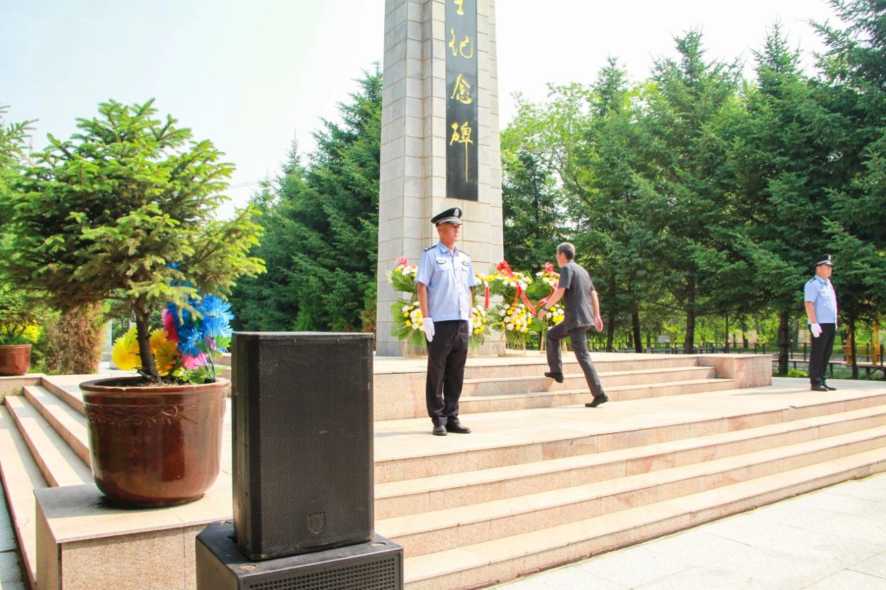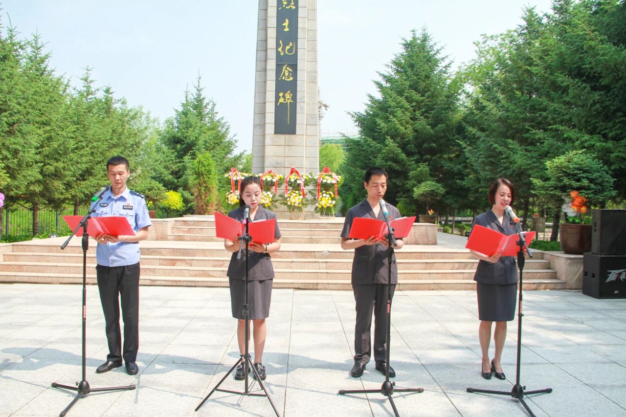 一是党组书记、院长孙宏辉代表全体干警向革命先烈敬献花篮;