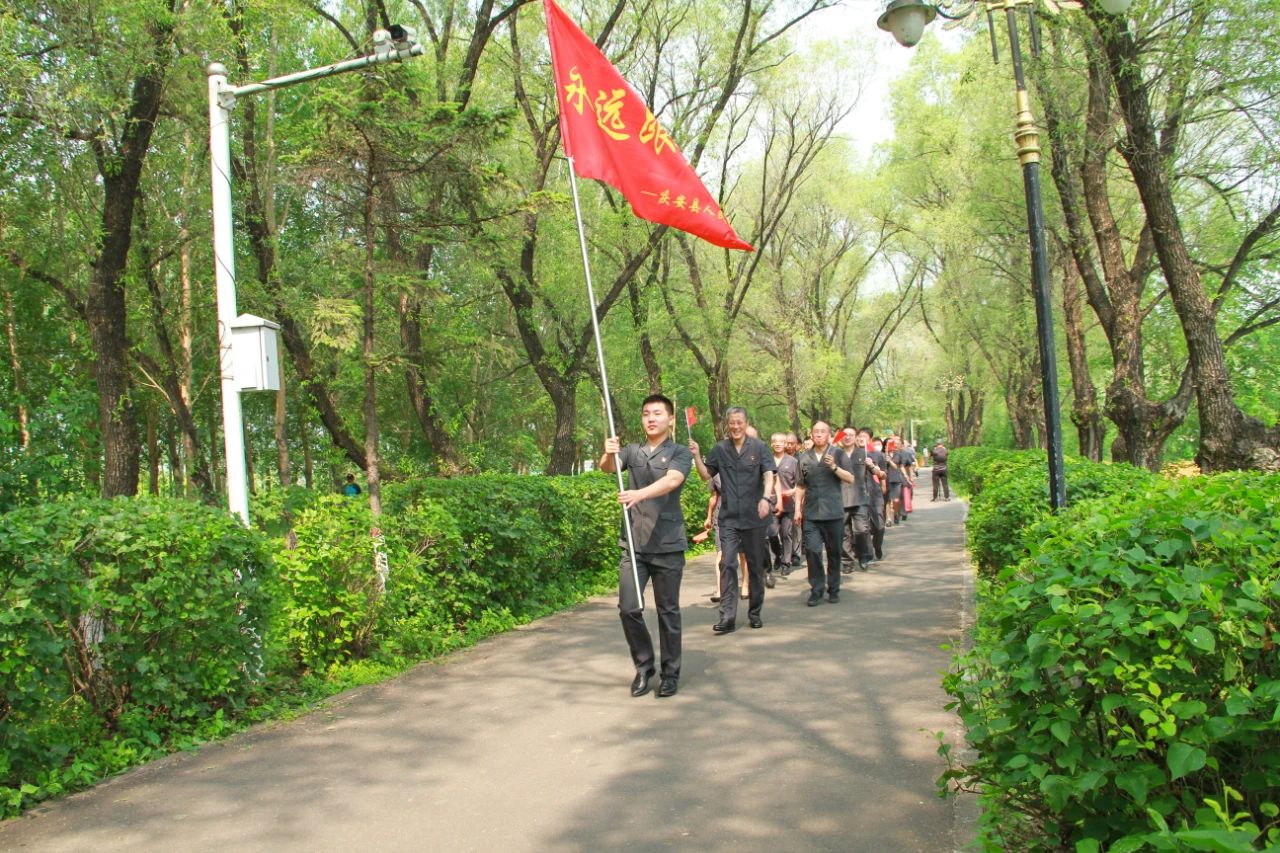 六是全体干警“永远跟党走”徒步行进。