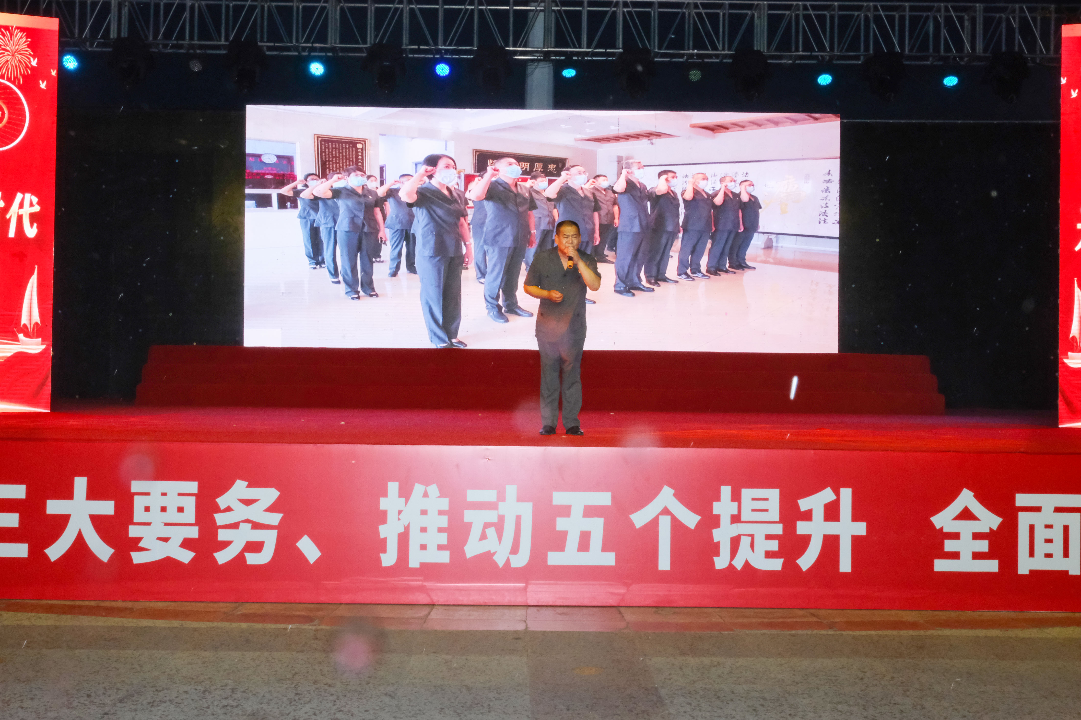 6月29日,庆安县人民法院党组书记、院长孙宏辉带领部分党员干警参加了县政法系统“百年旗帜红 永远跟党走”庆祝中国共产党成立100周年文艺演出。
