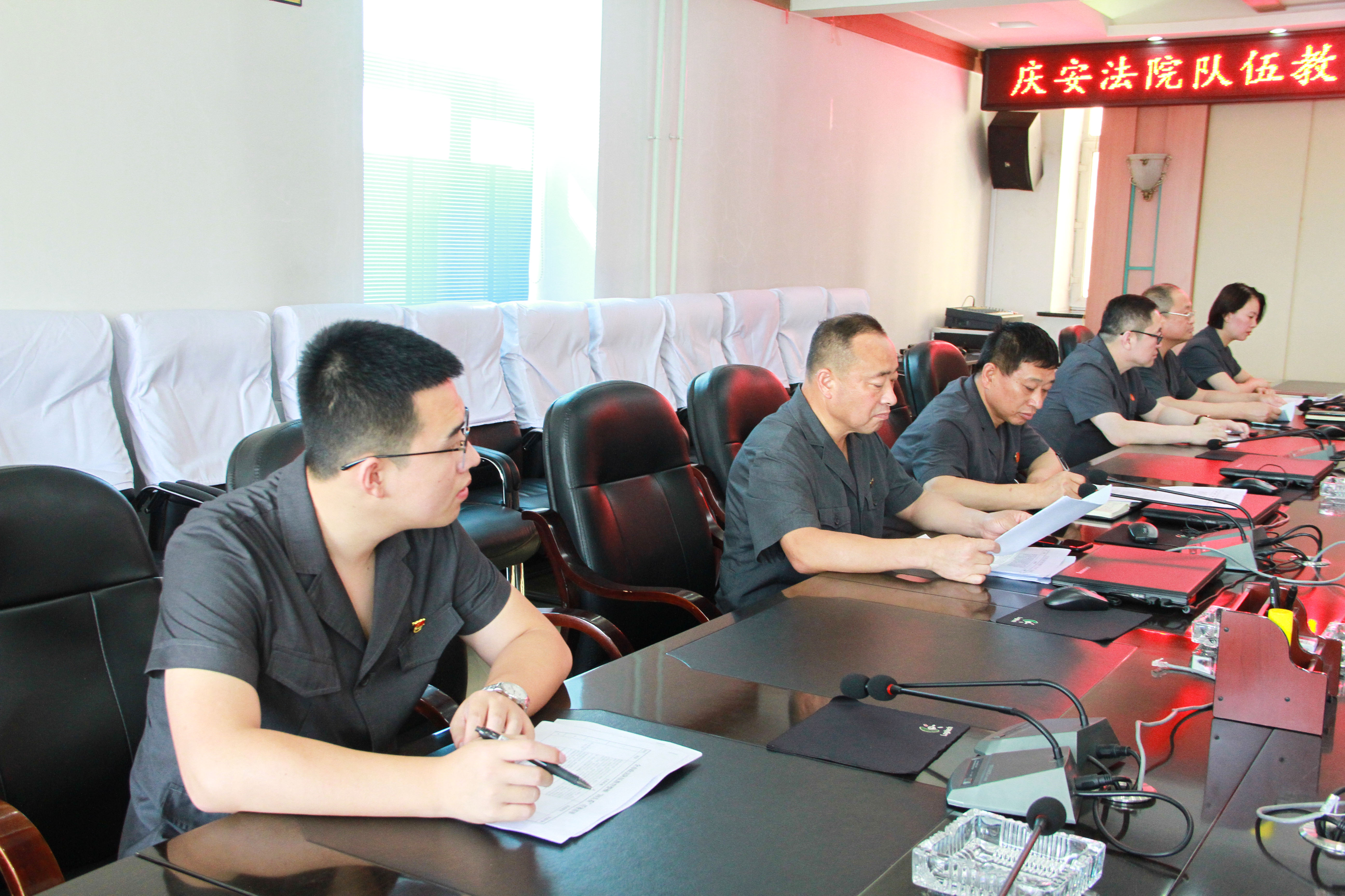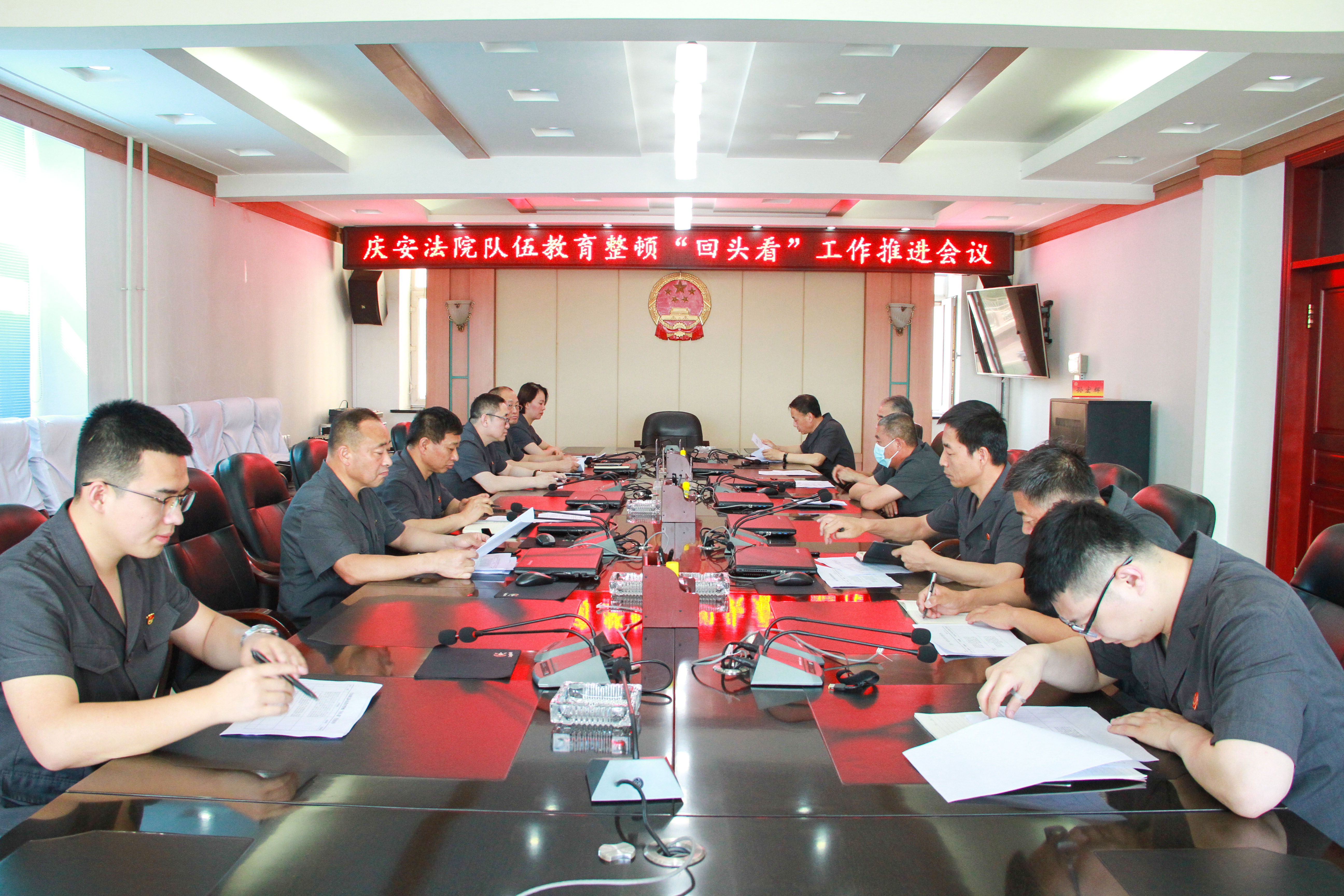 7月6日,庆安县人民法院组织召开了队伍教育整顿 “回头看”工作推进会议,会议由党组成员、副院长王树文主持,院领导和队伍教育整顿各推进组成员参加了会议。