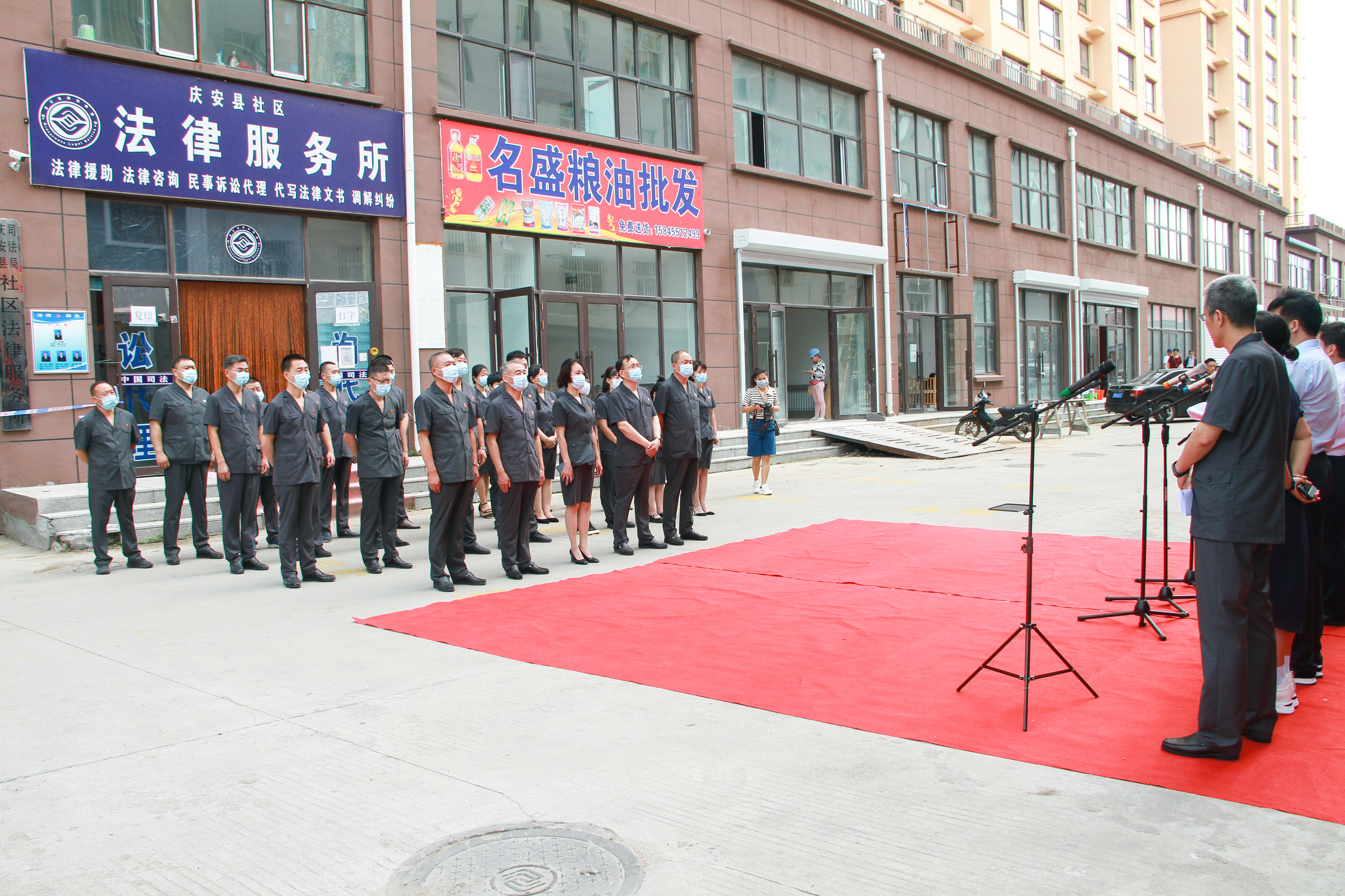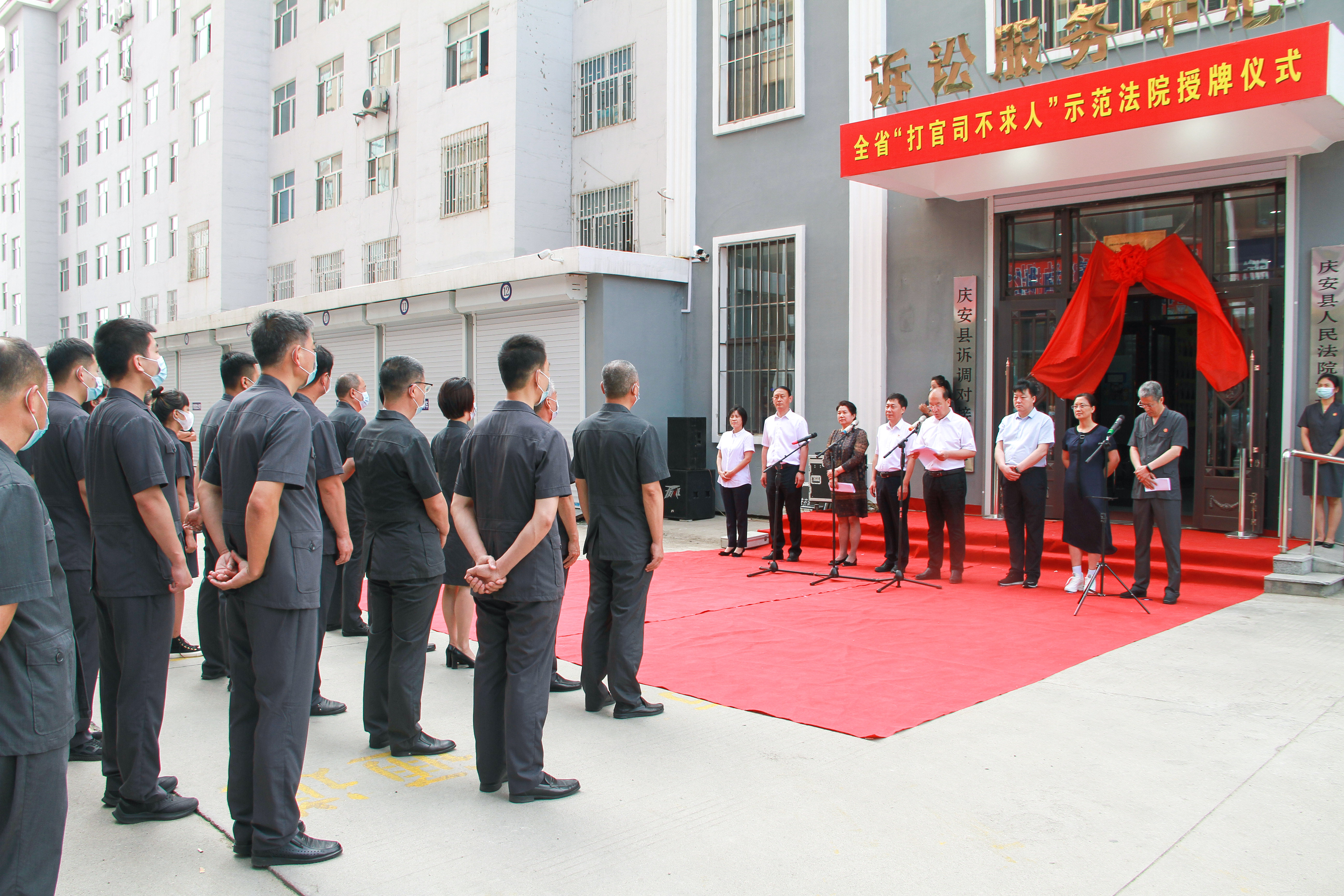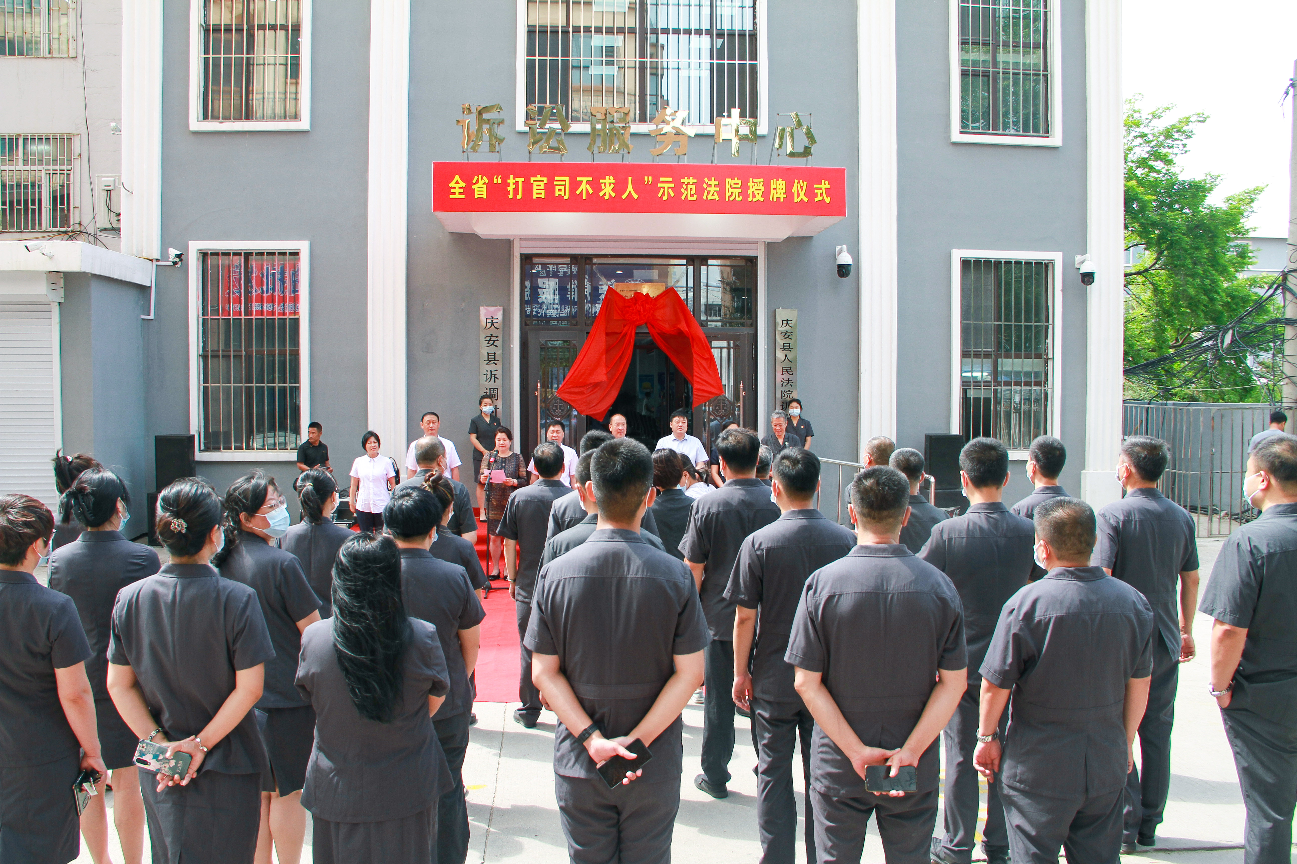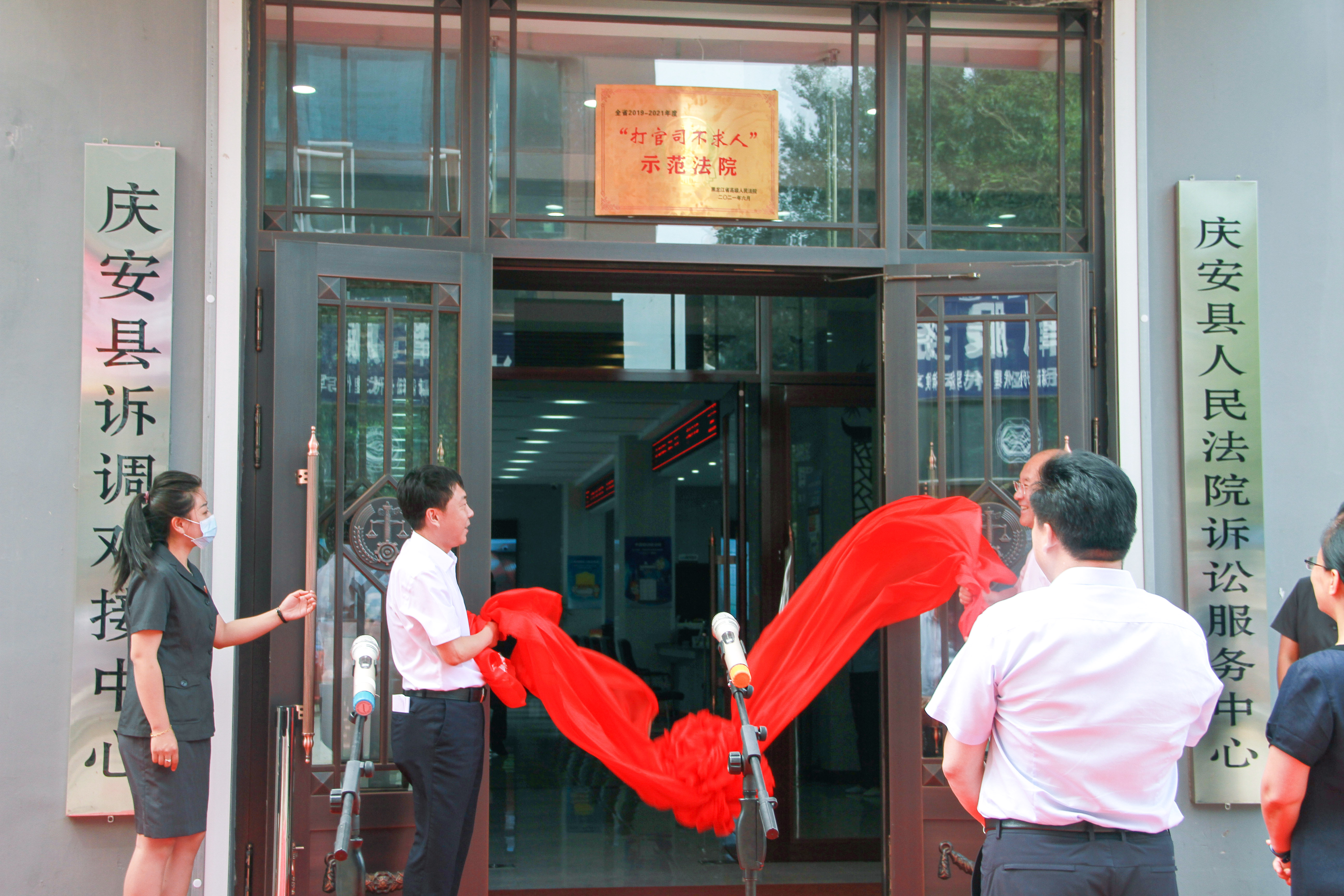 7月8日上午,绥化中院党组书记、院长王双近到庆安县人民法院为2019-2021年度全省首批“打官司不求人”示范法院进行授牌。庆安县委书记于雷出席授牌仪式并揭牌,绥化中院党组成员、副院长郭华主持授牌仪式,庆安县人大常委会主任吴喜龙、庆安县委副书记、县长仇文会、庆安县政协主席胡晓飞、庆安县委常委、政法委书记宋兆丽出席授牌仪式,庆安法院党组书记、院长孙宏辉、院领导班子及部分干警代表参加授牌仪式。