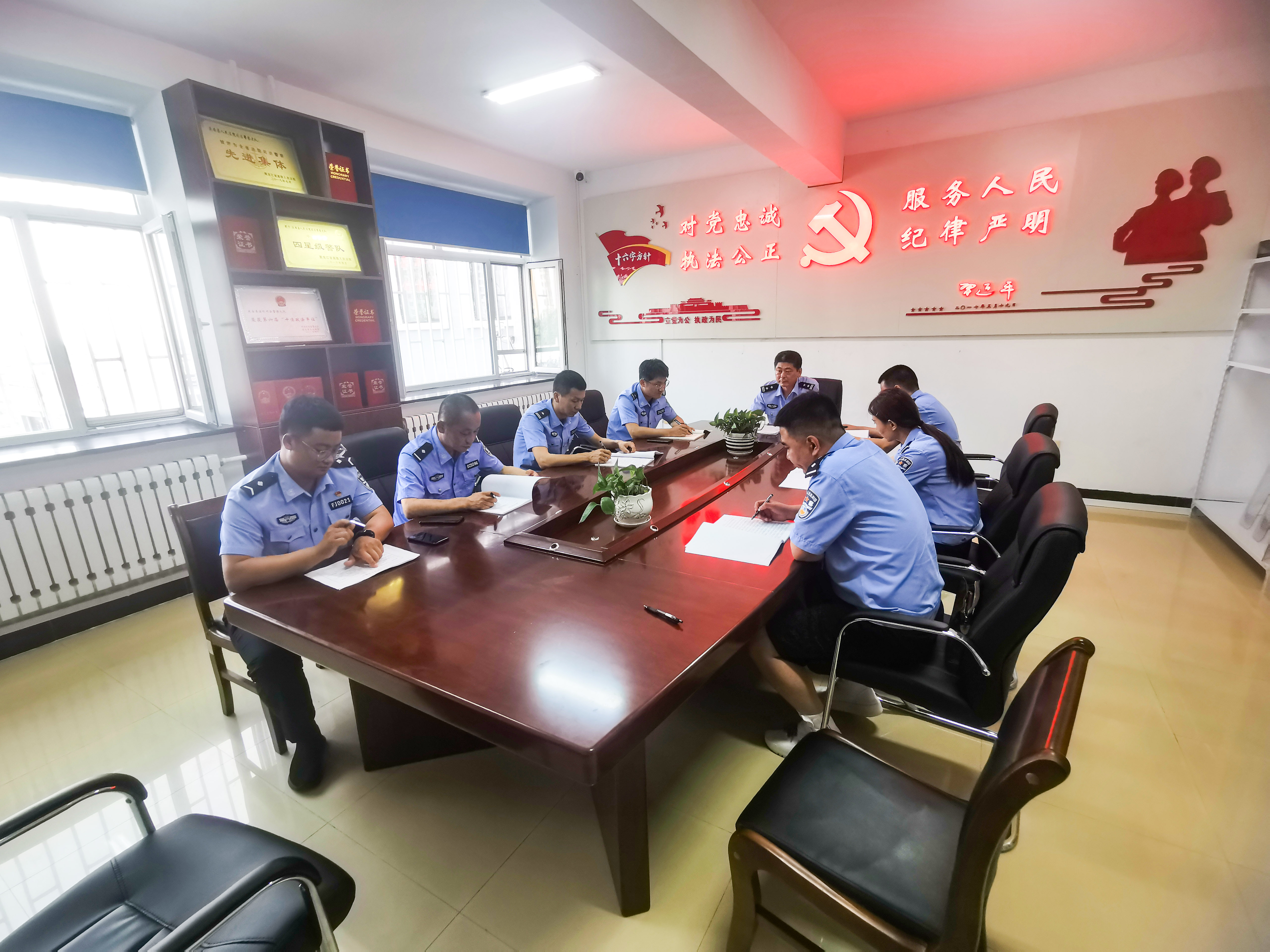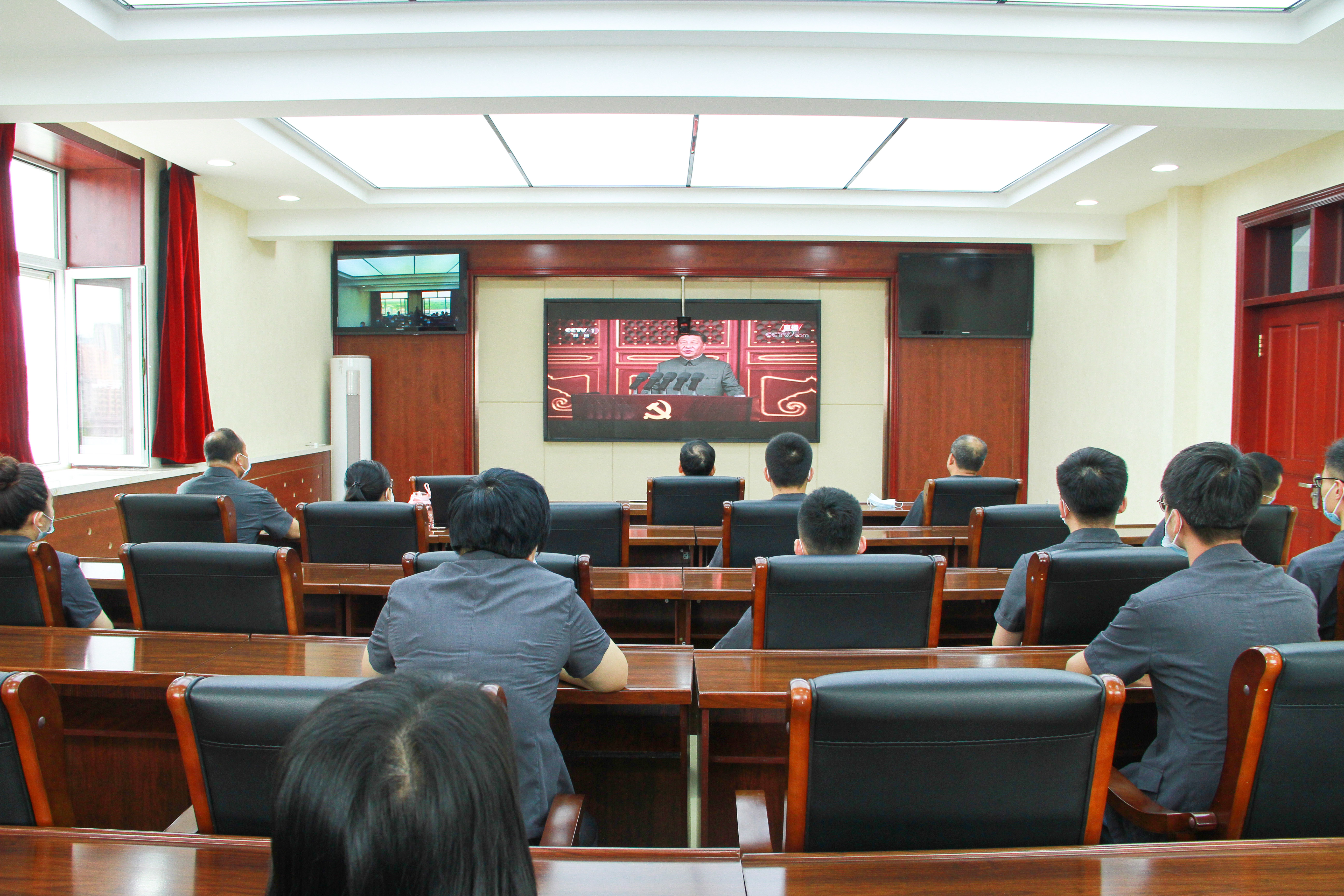 院党总支也积极组织各个党支部分别以座谈研讨、视频学习等方式传达学习“七一”讲话精神;各条线、各部门也都自发组织干警积极学习。